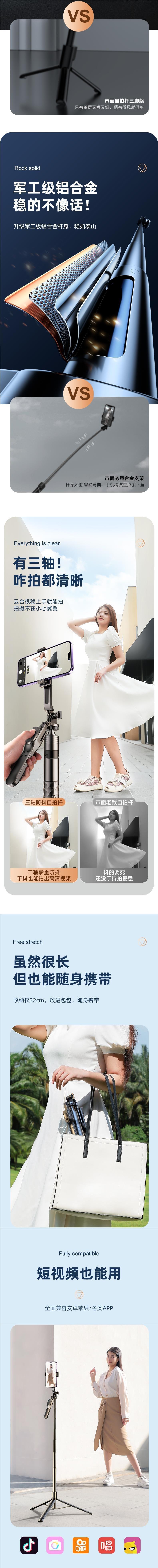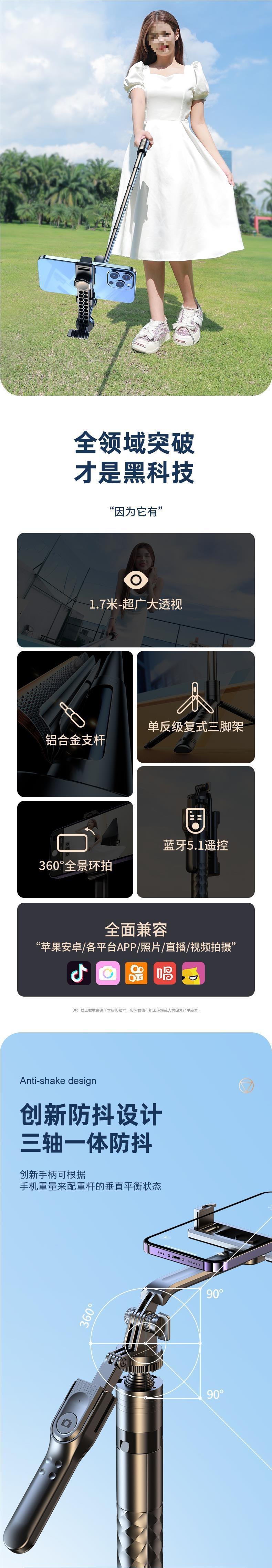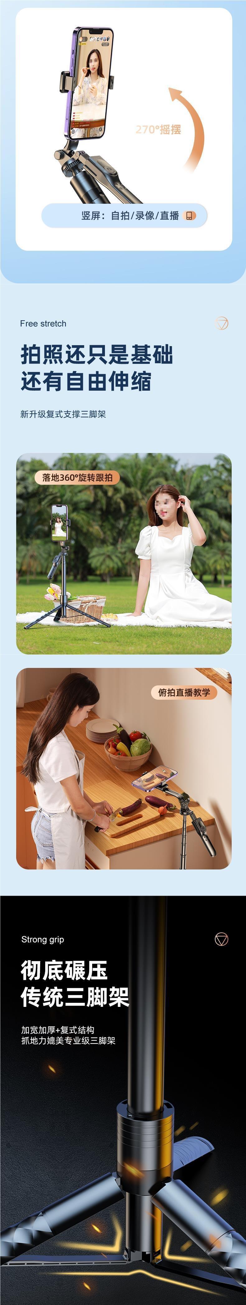 • 1.7m [Douyin 손떨림 방지 모델] [통합 접이식 + 자유로운 텔레스코픽 + 이중 안정 삼각대 지지대] 무료 Douyin 리모콘