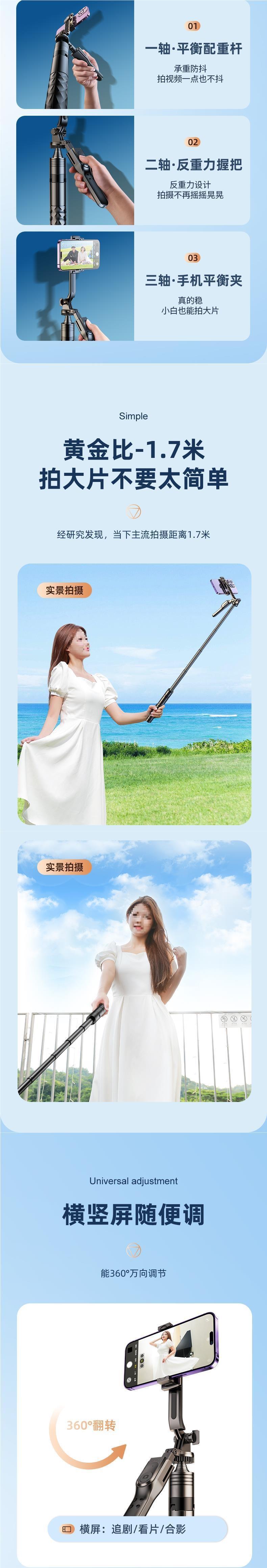 • 1.7m [4축 흔들림 방지 모델] [탄소강 샤프트 + 복합 안정 삼각대 지지대] Douyin 리모컨 포함
