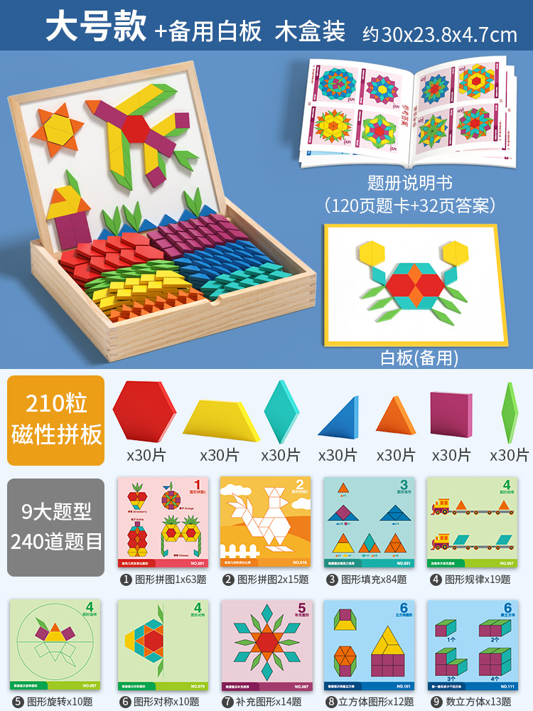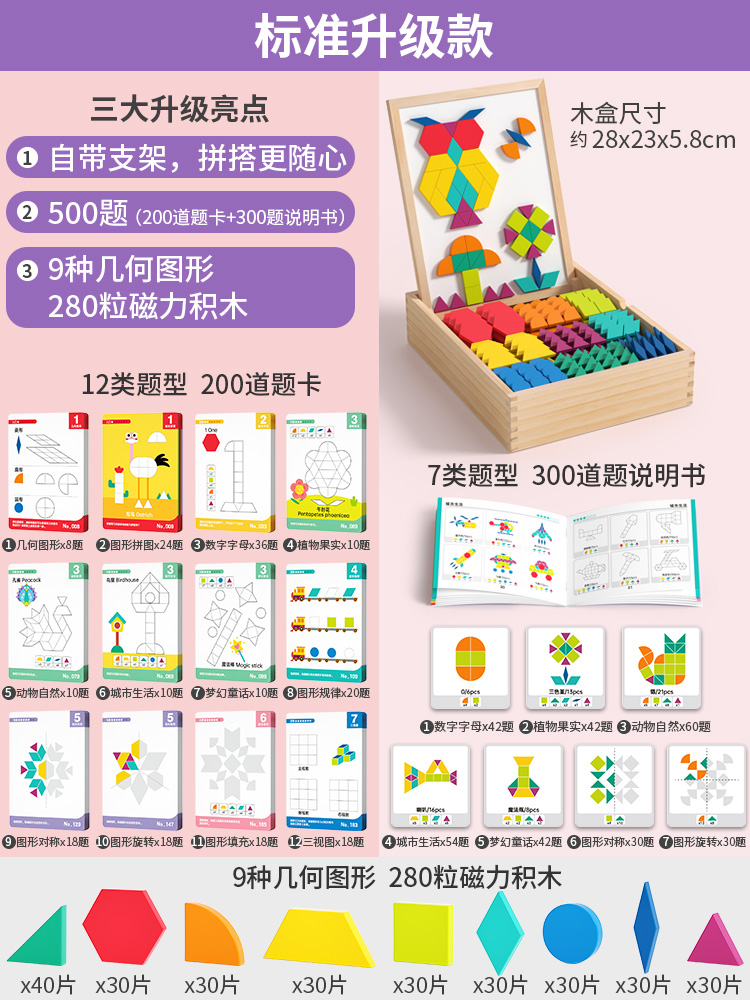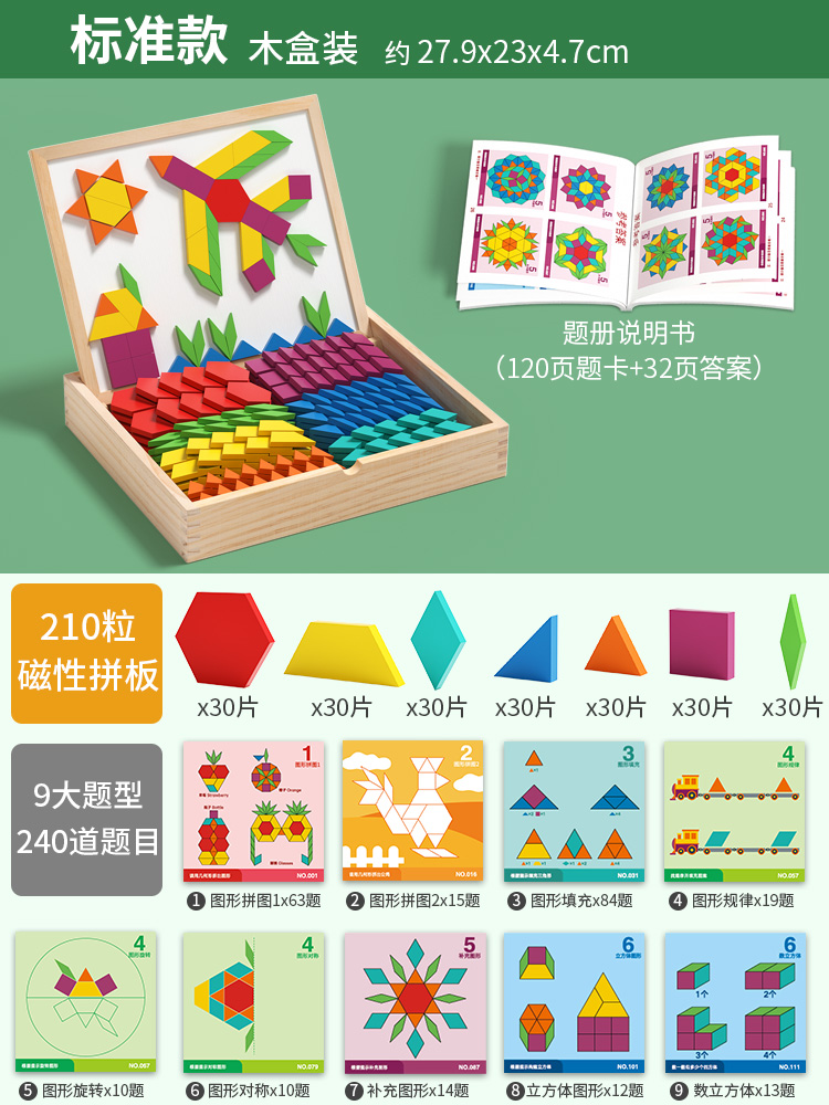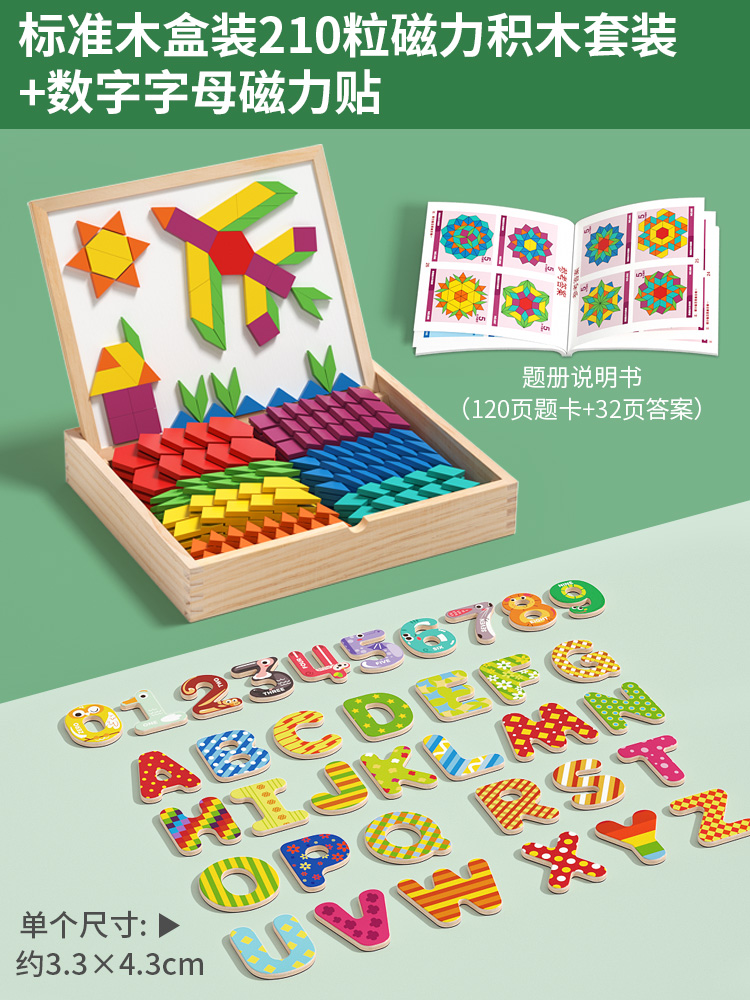 • 표준 업그레이드 브래킷 나무 상자 [자기 기하학적 빌딩 블록 210개 + 고급 사고 훈련 문제 240개]