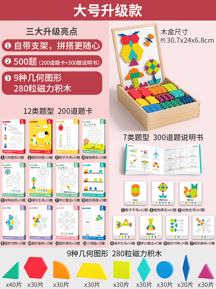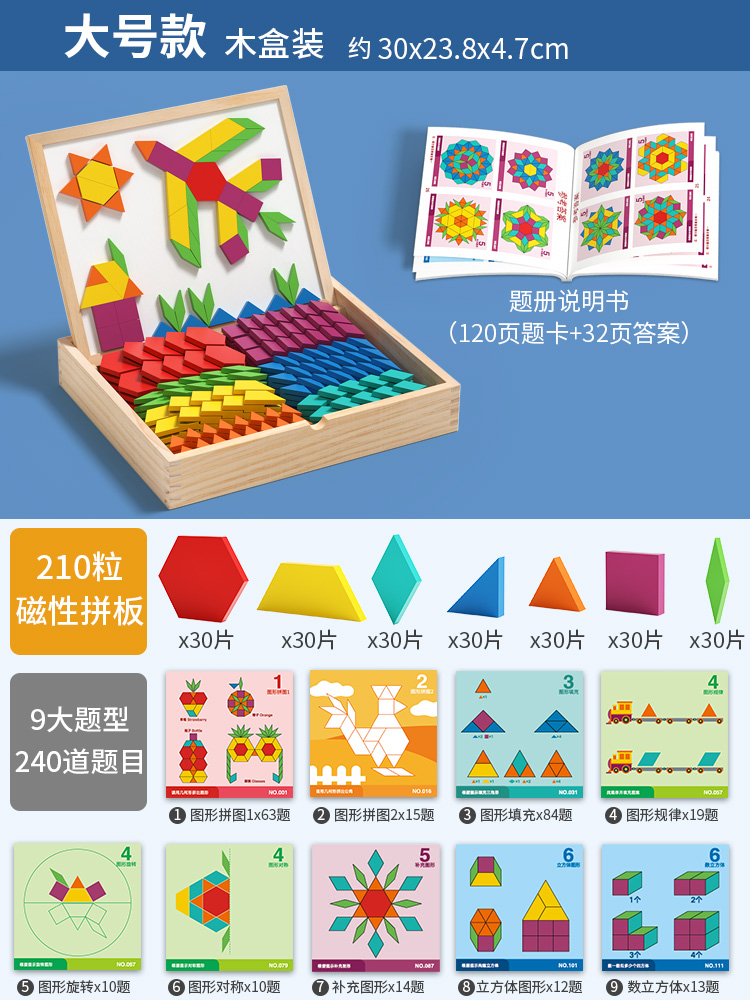 • 대형 업그레이드 스탠드 나무 상자 [자기 기하학적 빌딩 블록 210개 + 사고 훈련 문제 240개]