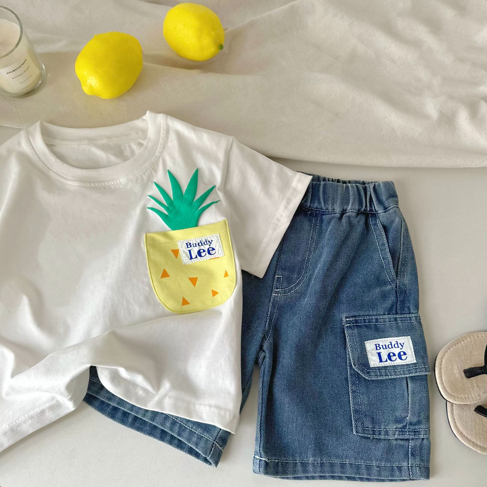어린이 반팔 티셔츠 25 여름 새 소년 일본 만화 반팔 여름 아기 반팔 만화 과일 티셔츠