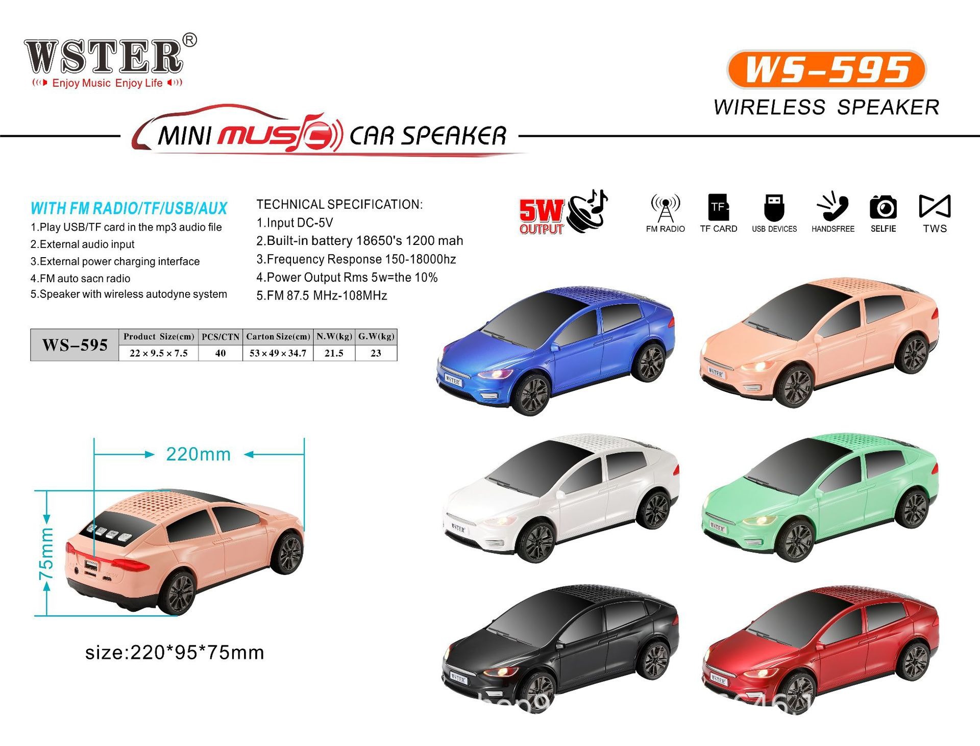 WS595 테슬라 모델 블루투스 스피커 슈퍼 베이스 사운드 기프트 TWS 재고 차량용 블루투스 스피커