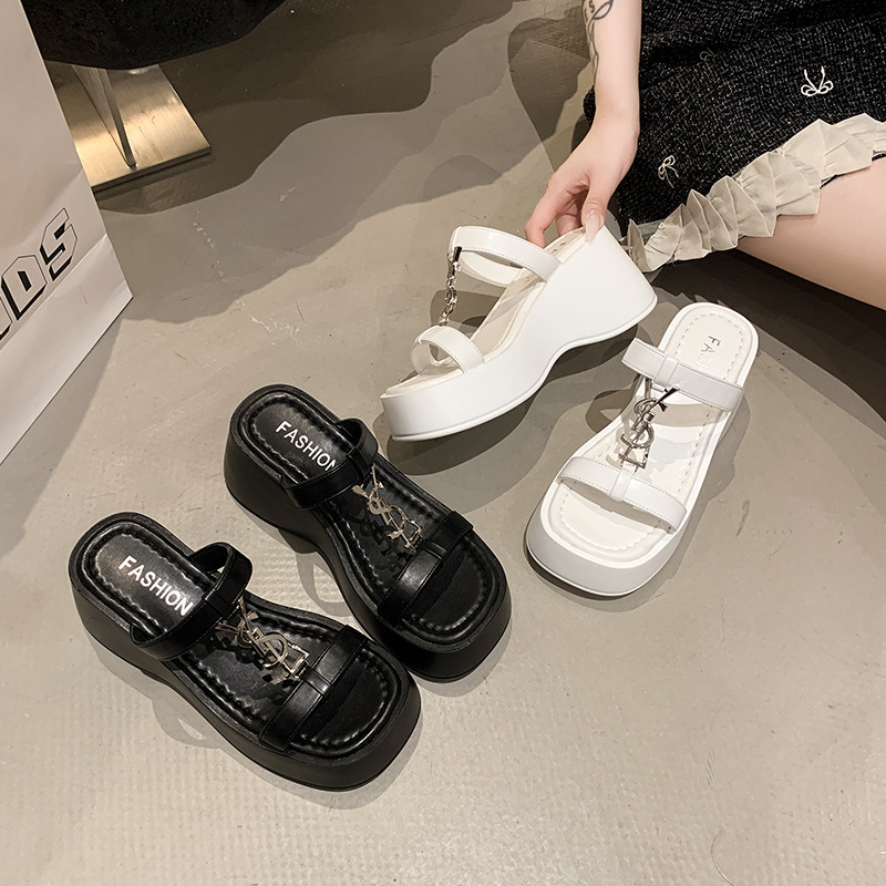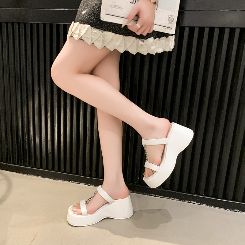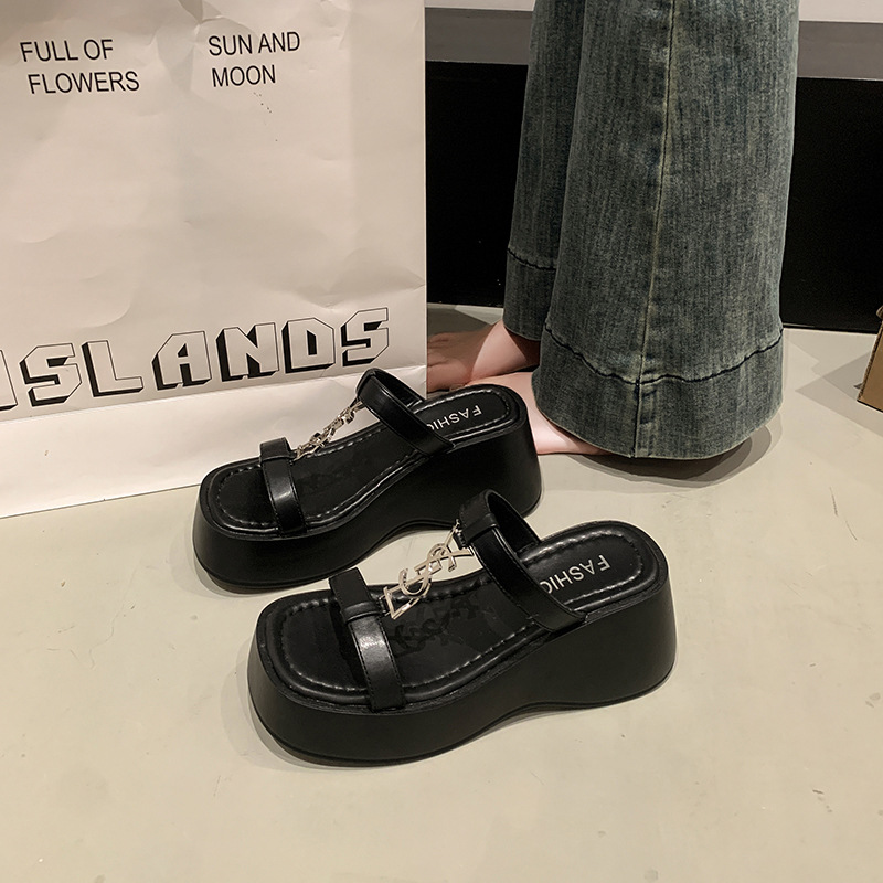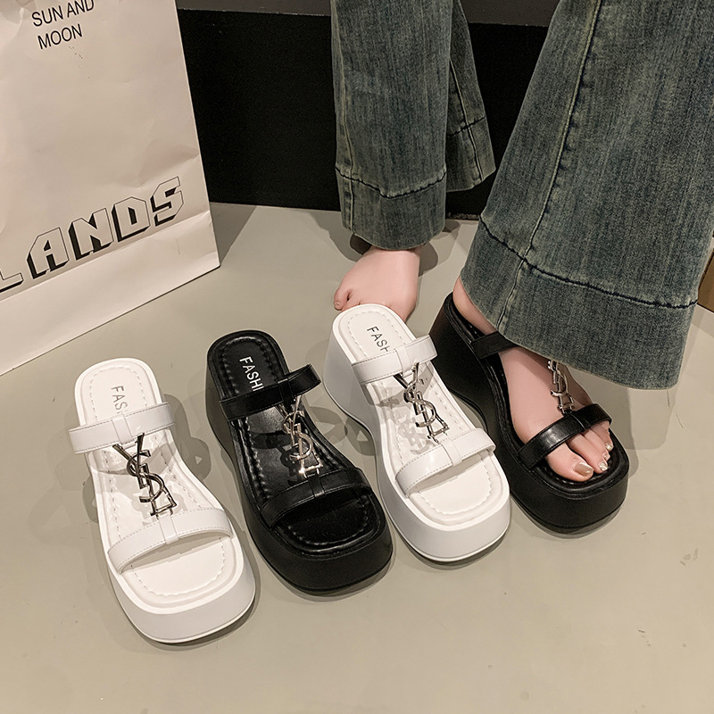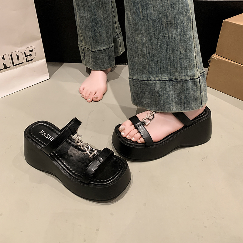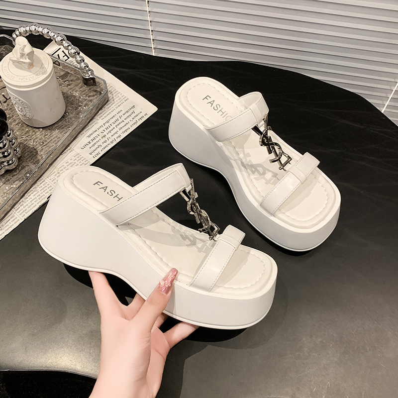 하이힐 슬리퍼 여성용 여름 아우터웨어 2025 새로운 여름 하이 엔드 센스 작은 두꺼운 바닥 비치 슬리퍼스토어 가기