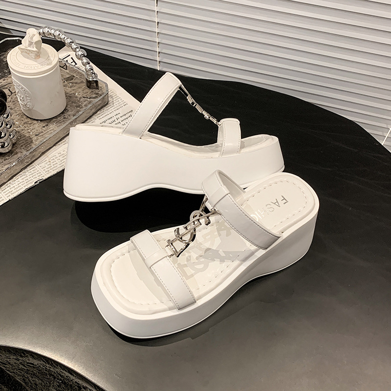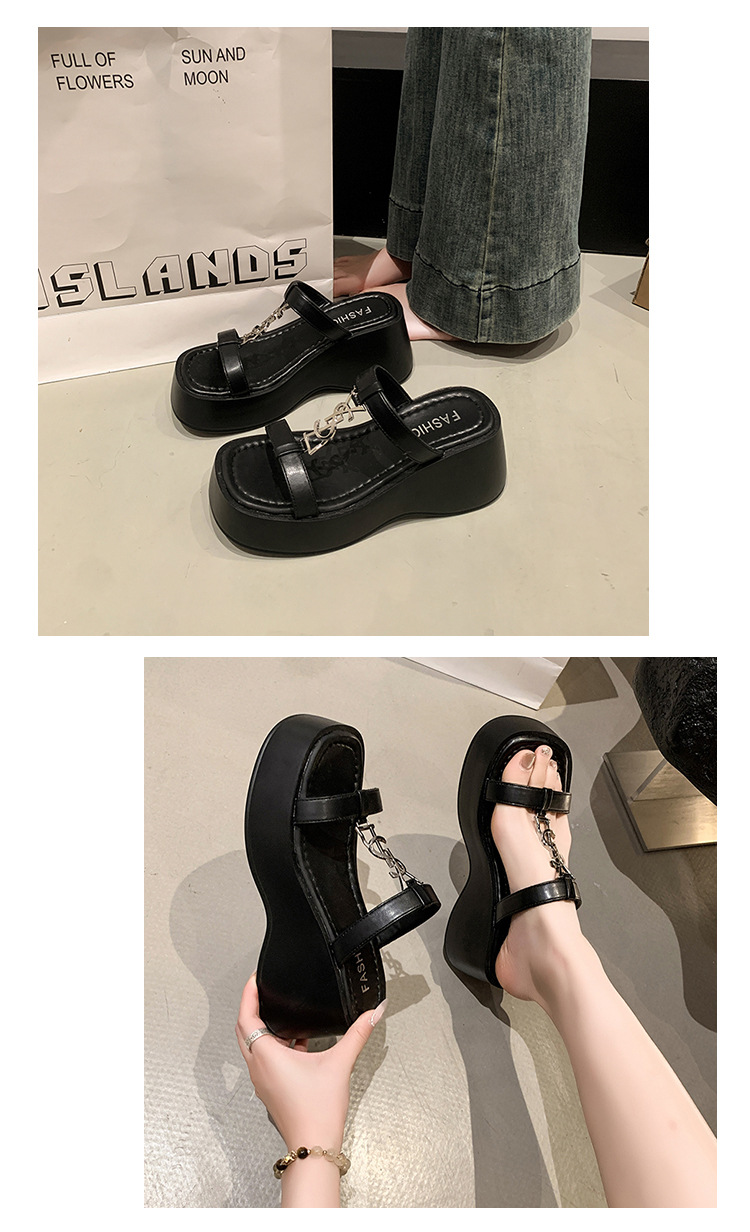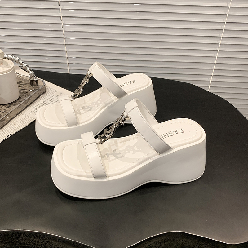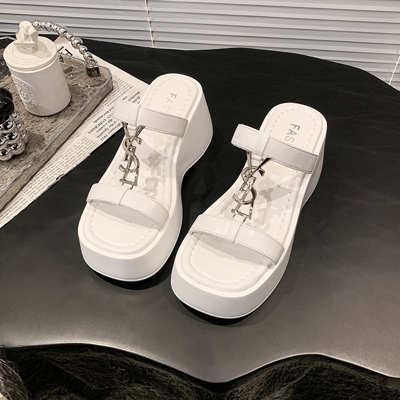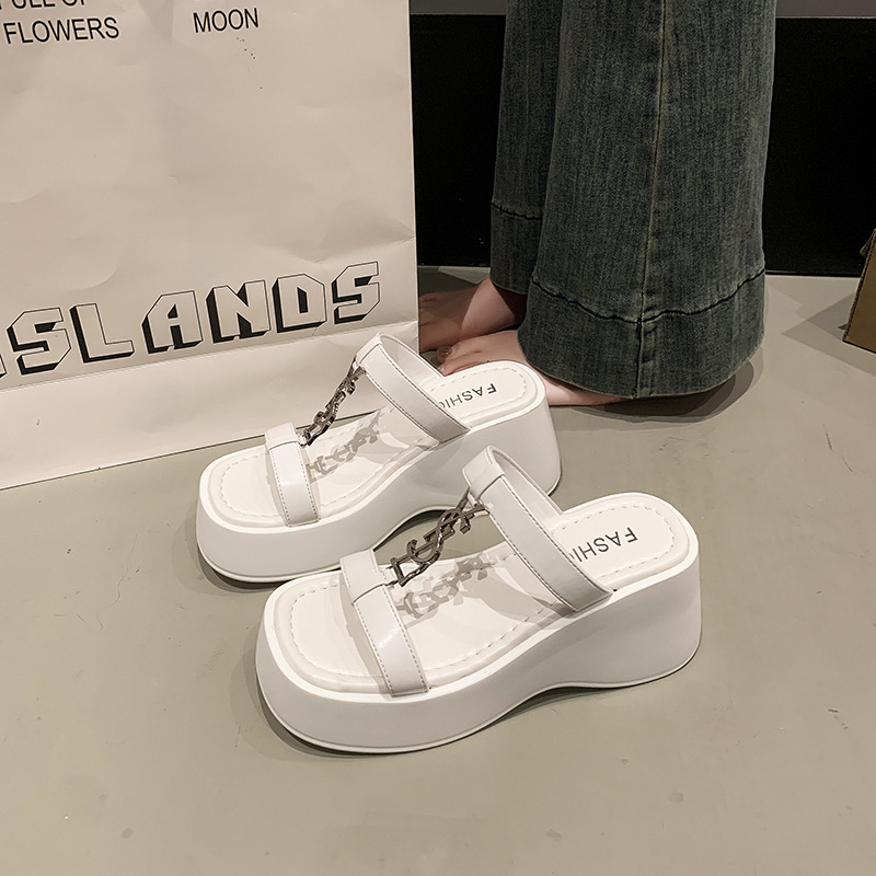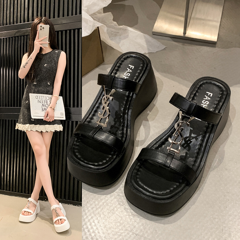 하이힐 슬리퍼 여성용 여름 아우터웨어 2025 새로운 여름 하이 엔드 센스 작은 두꺼운 바닥 비치 슬리퍼스토어 가기