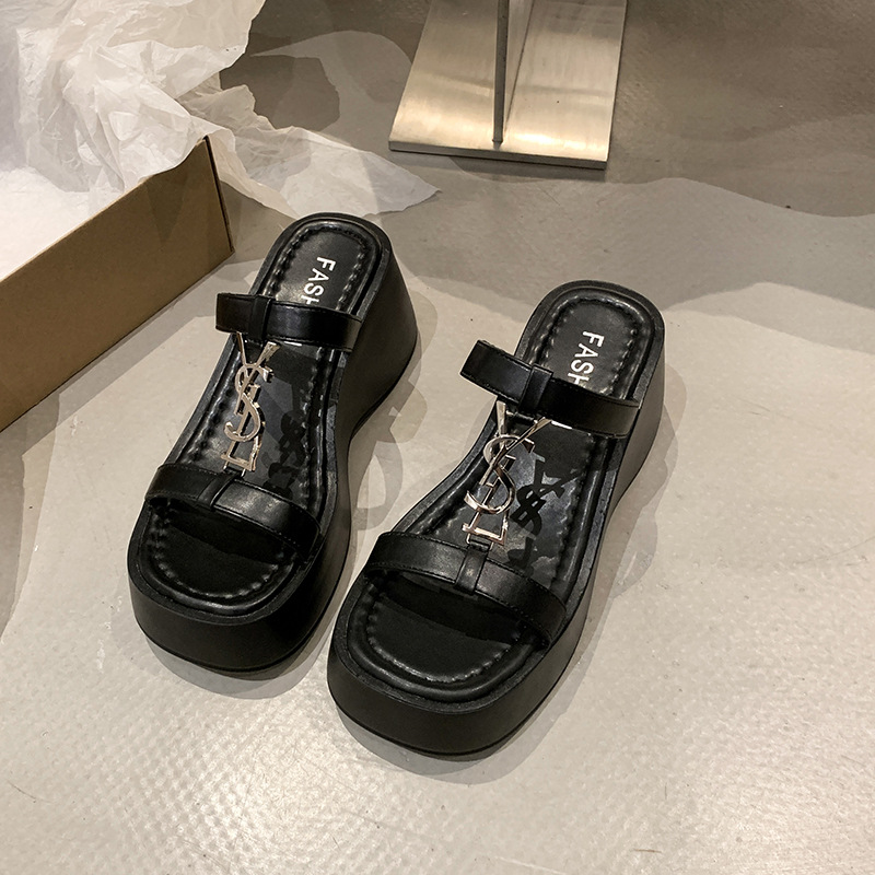 하이힐 슬리퍼 여성용 여름 아우터웨어 2025 새로운 여름 하이 엔드 센스 작은 두꺼운 바닥 비치 슬리퍼