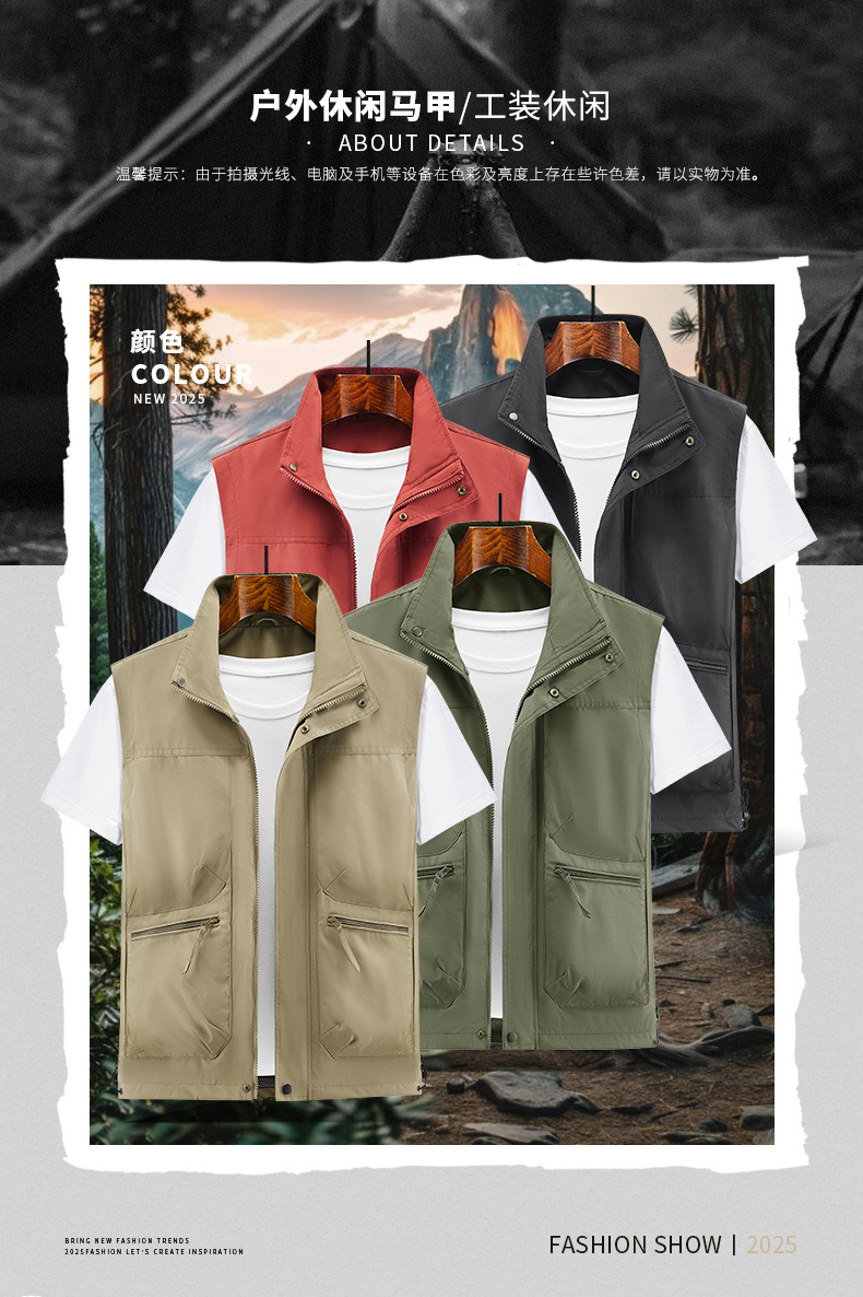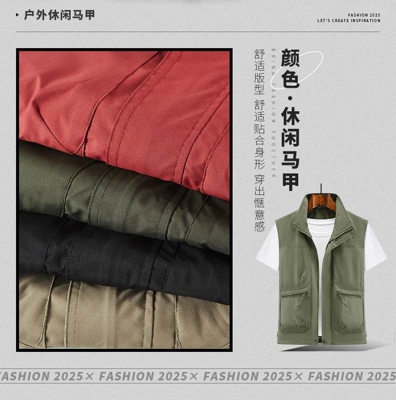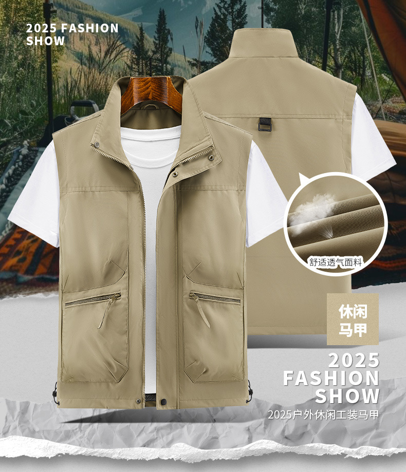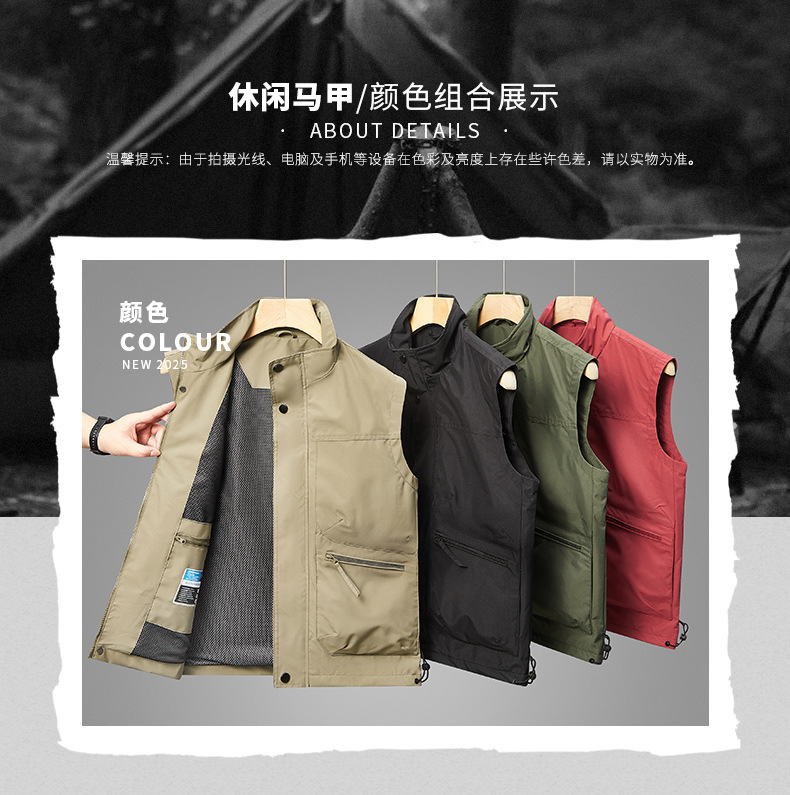 [국경 간 인기 모델] 남성용 멀티 포켓 조끼 남성용 새로운 느슨한 조끼 야외 낚시 레저 등산 사진 작업자