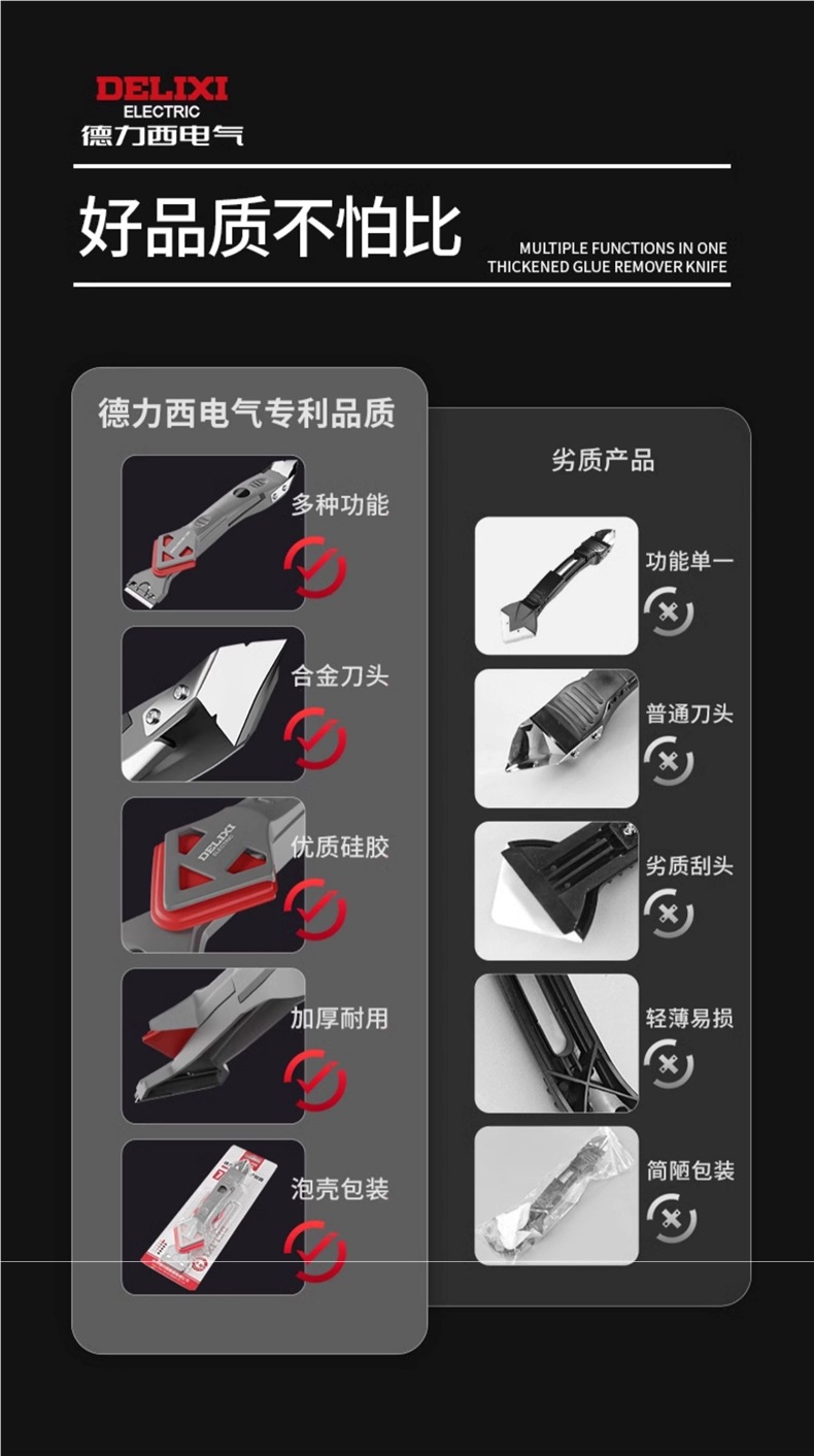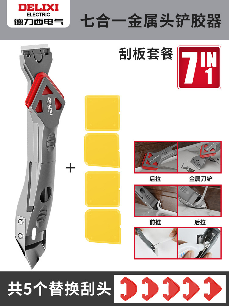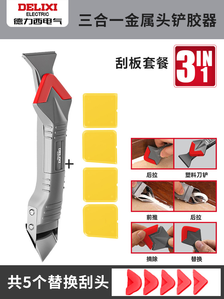 Delixi 스크레이퍼, 접착제 스크레이퍼, 유리 접착제 트리밍 도구, 다기능 스무딩 및 절연체 도구, 접착제 스크레이퍼