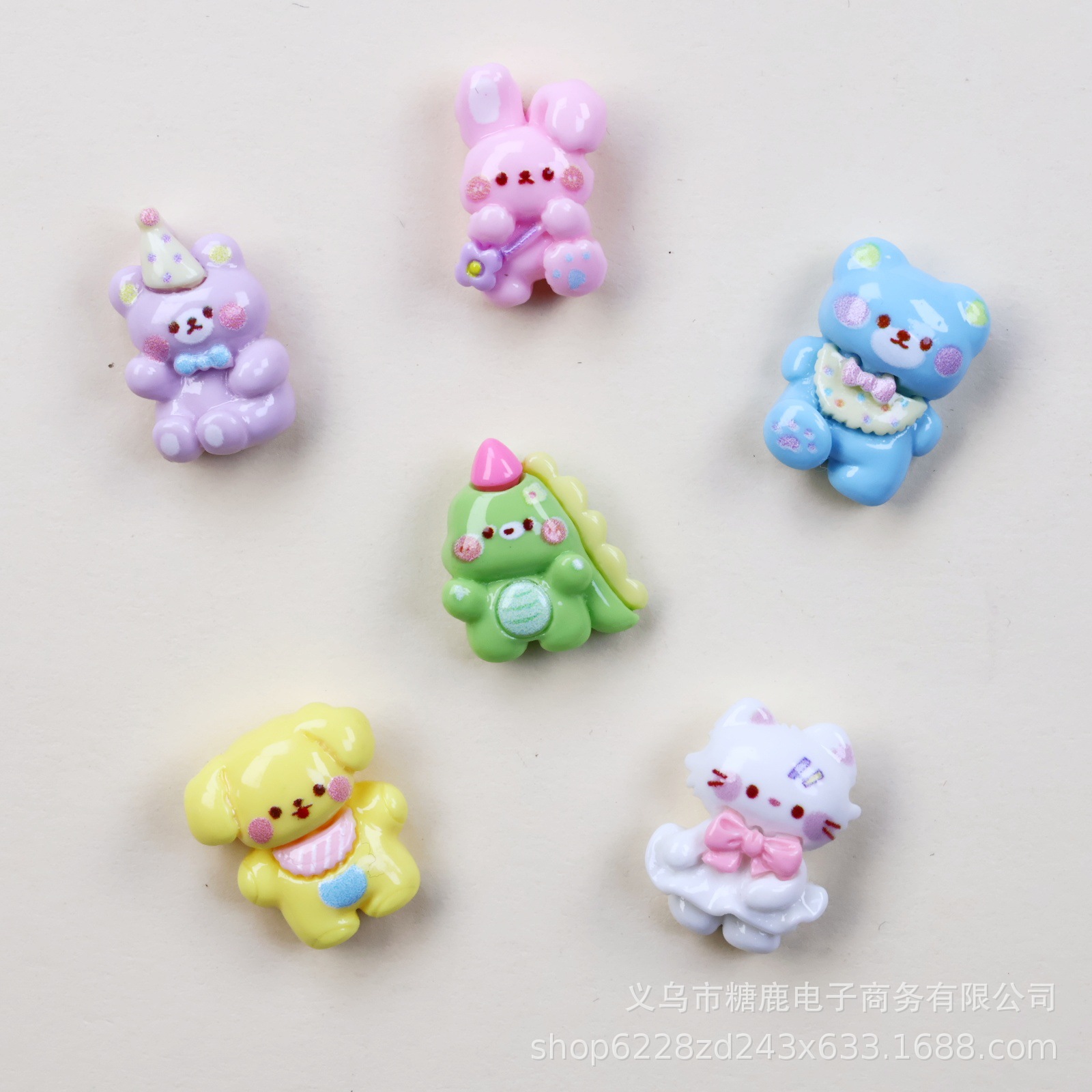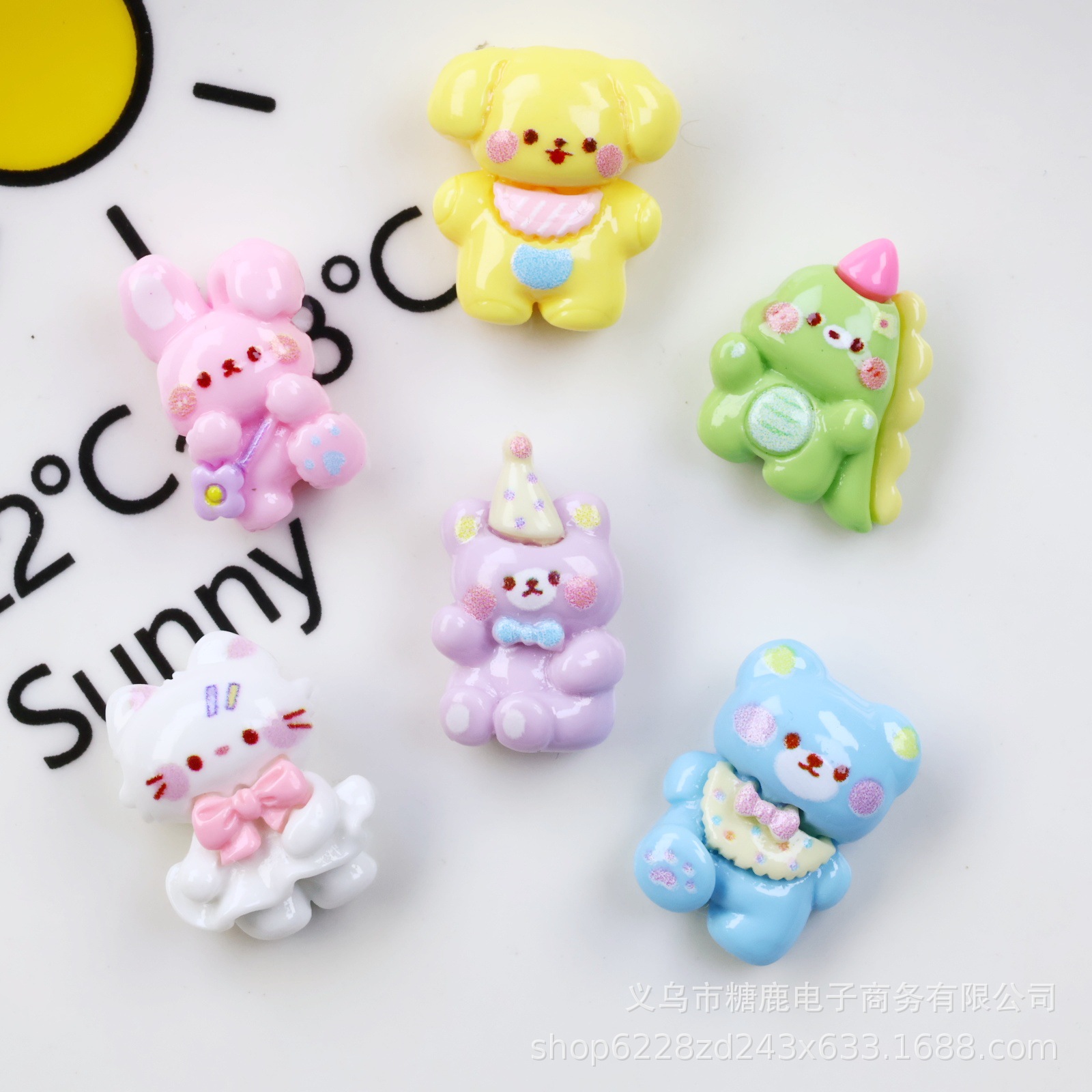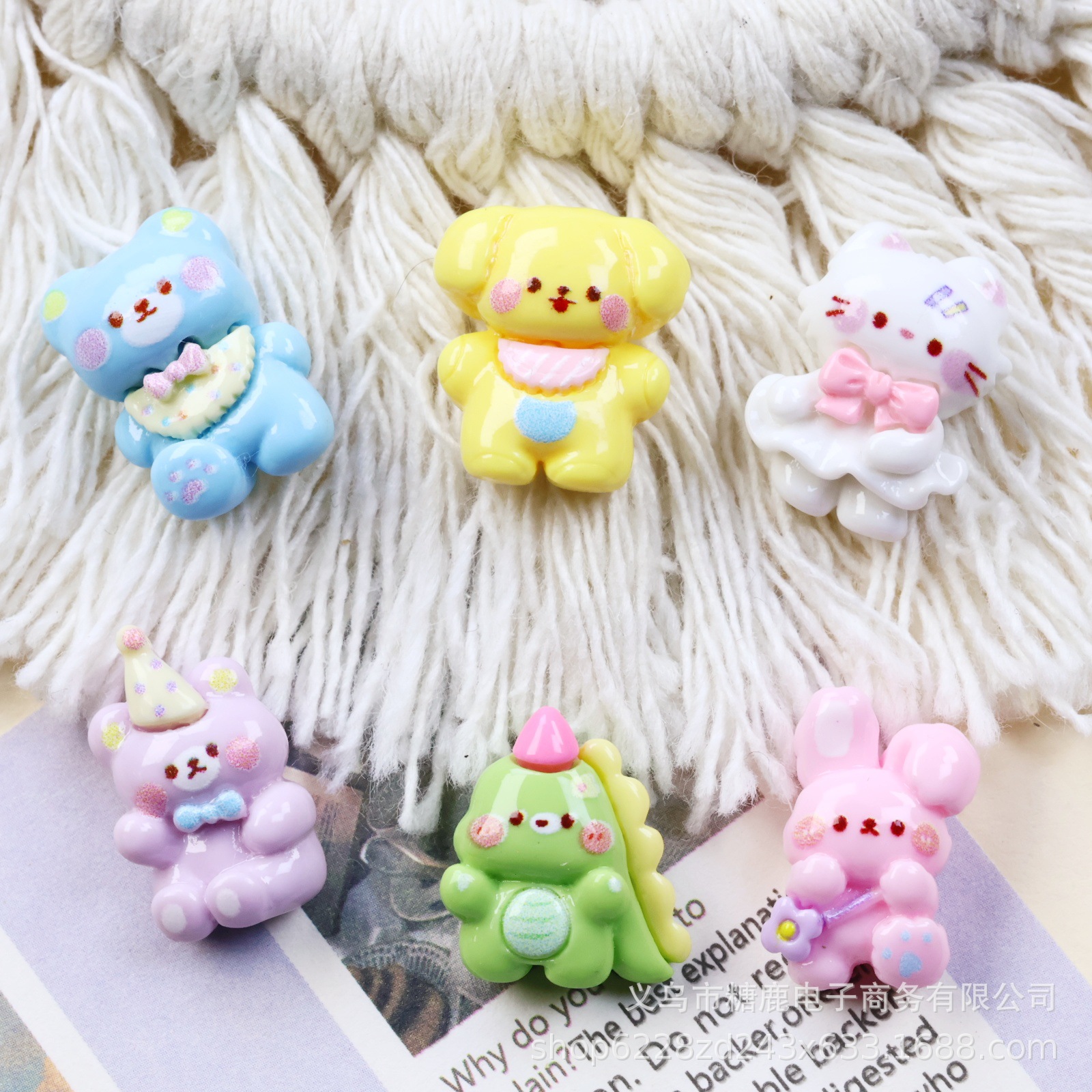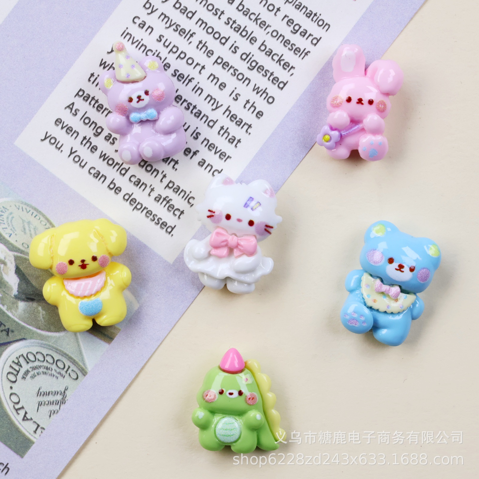 미니 귀여운 동물 크림 접착제 수지 액세서리 diy 휴대 전화 케이스 키 체인 머리핀 구멍 신발 패치 배치