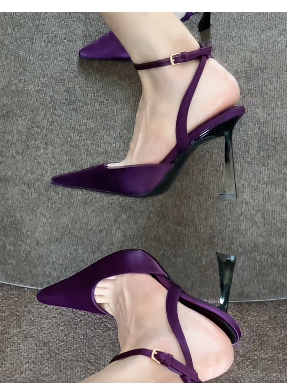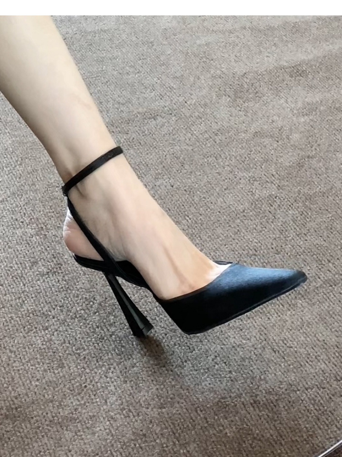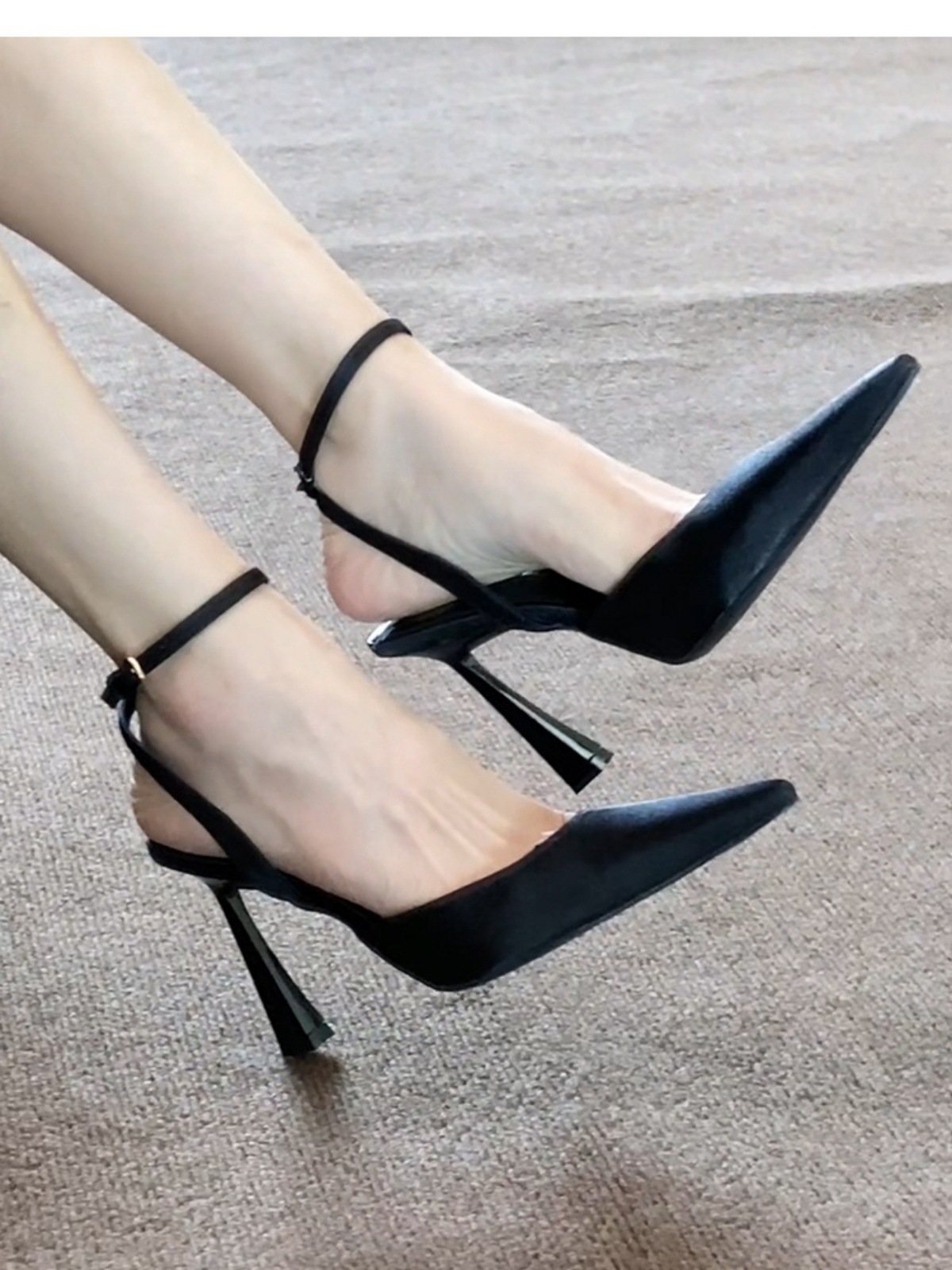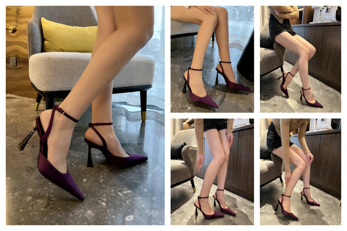 우아한 프랑스 스타일 블랙 새틴 버클 스트랩 발가락 샌들 여성용 스틸레토 힐 포인팅 발가락 하이힐스토어 가기