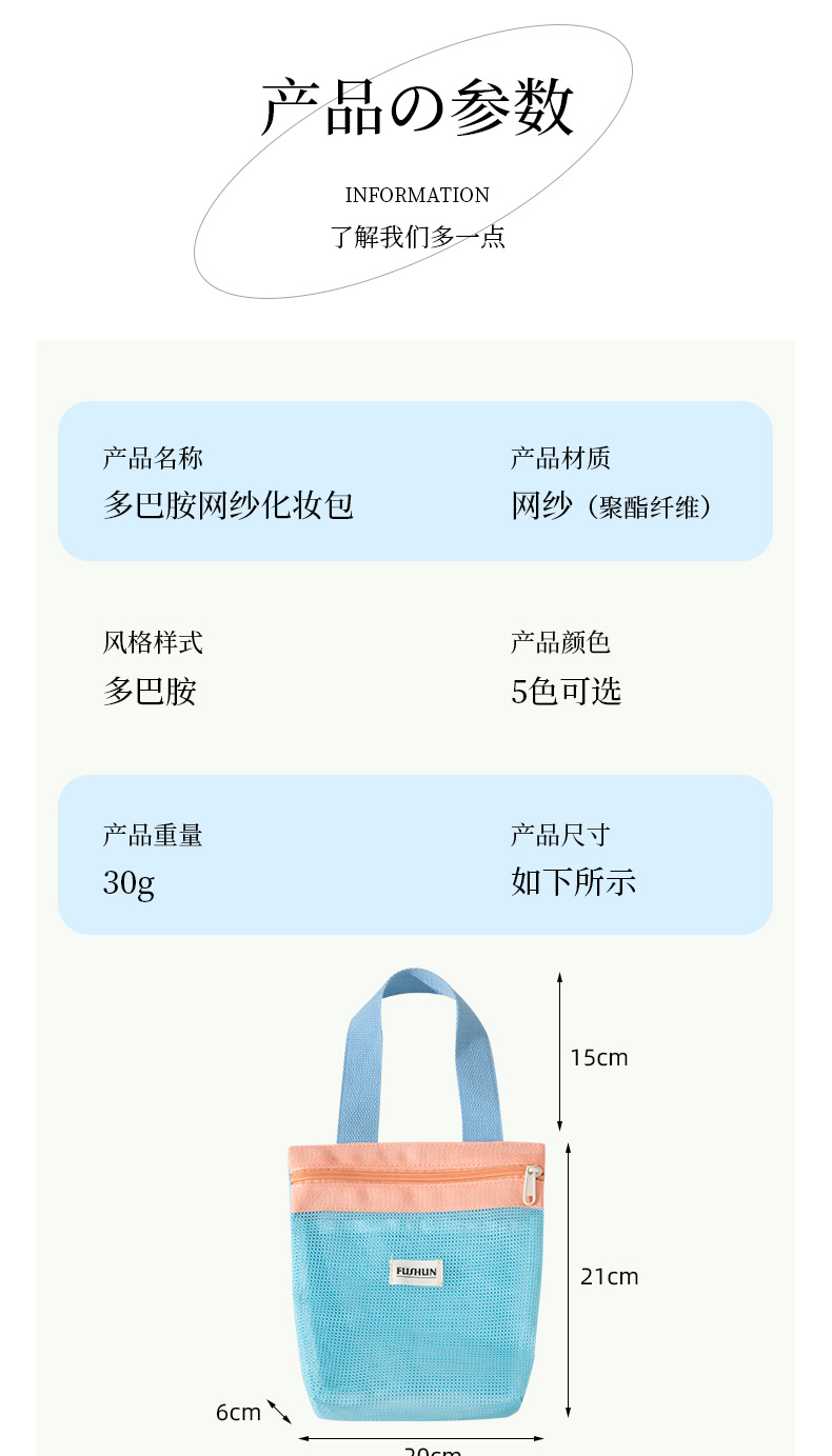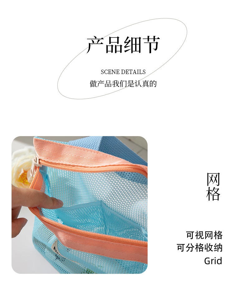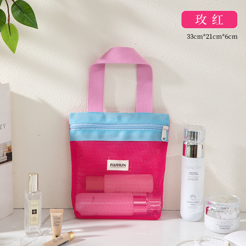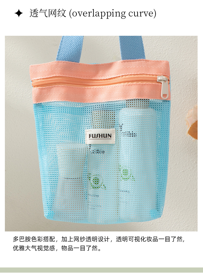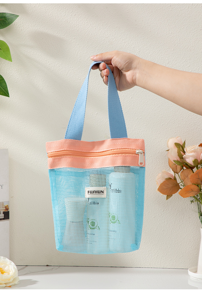 새로운 스타일의 뜨개질 메쉬 휴대용 화장품 가방, 휴대용 외출용 수납 세면도구 가방스토어 가기