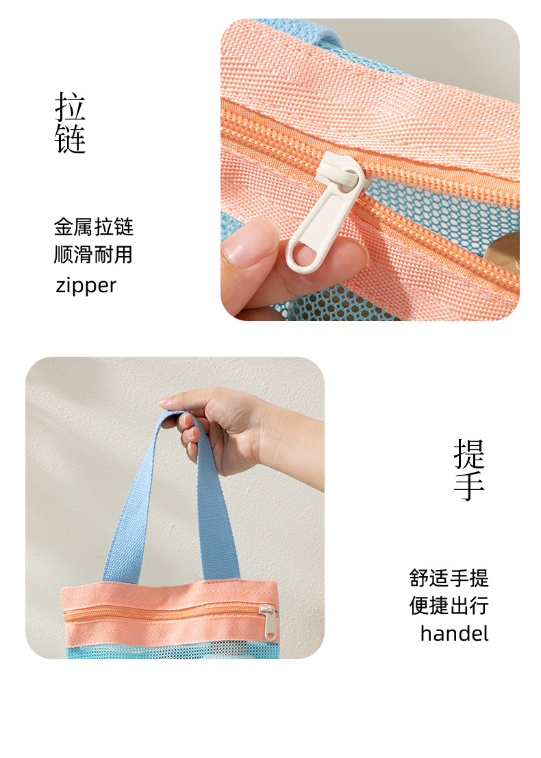 새로운 스타일의 뜨개질 메쉬 휴대용 화장품 가방, 휴대용 외출용 수납 세면도구 가방