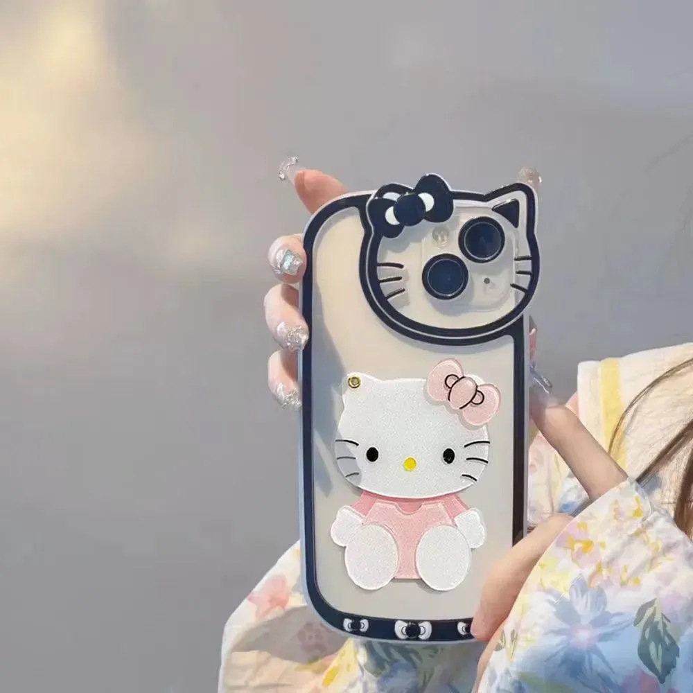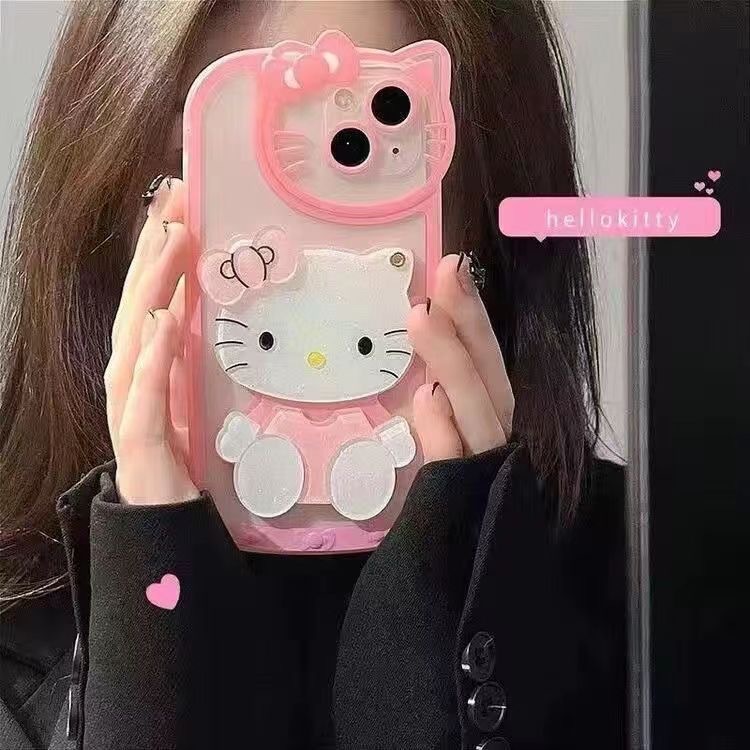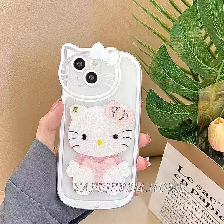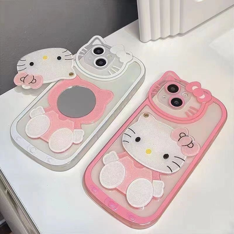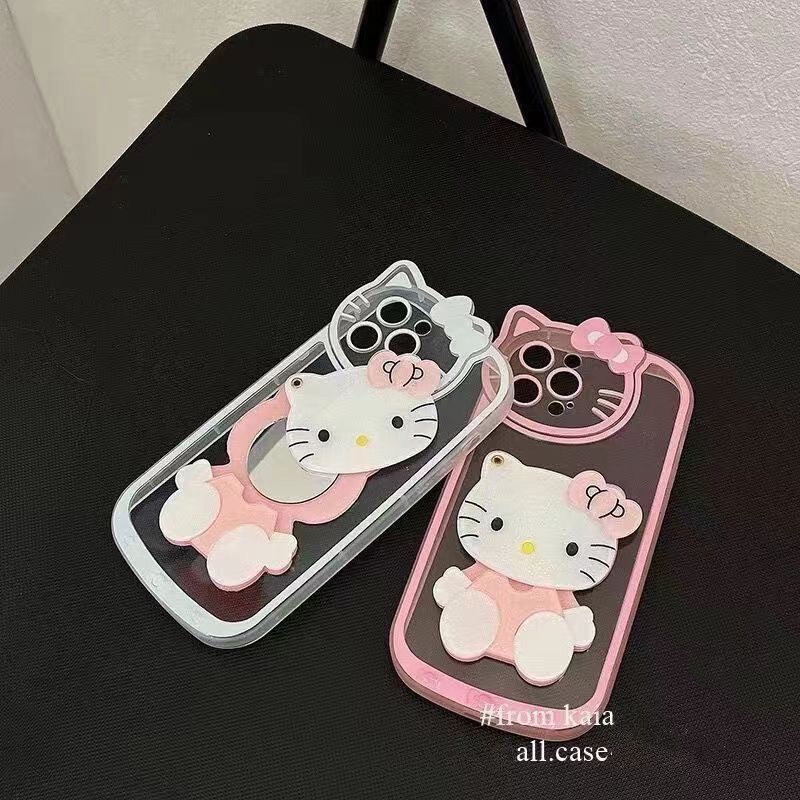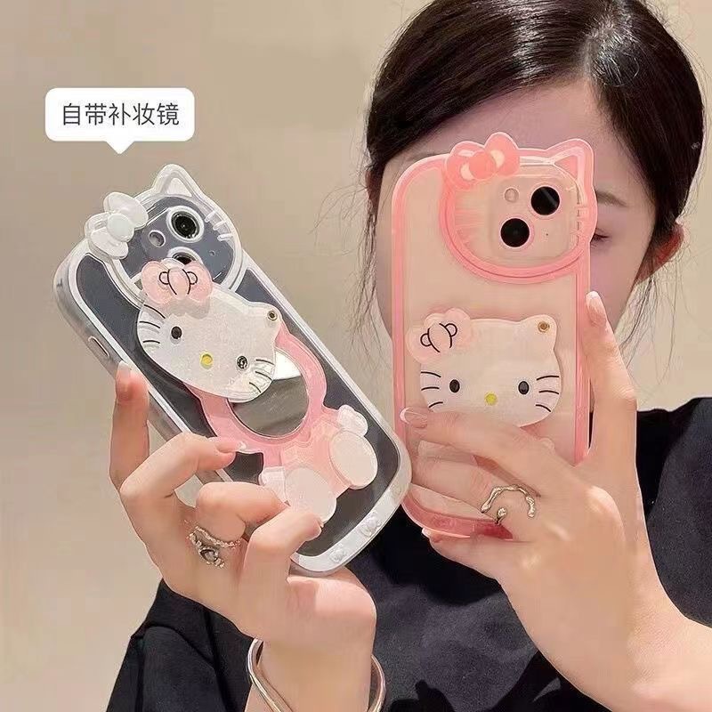 국경 간 폭발 16ProMax/15PRO/13 메이크업 미러 모든 것을 포함하는 키티 고양이 전화 케이스 귀여운 iPhone13스토어 가기