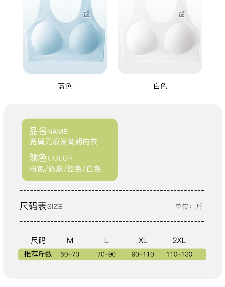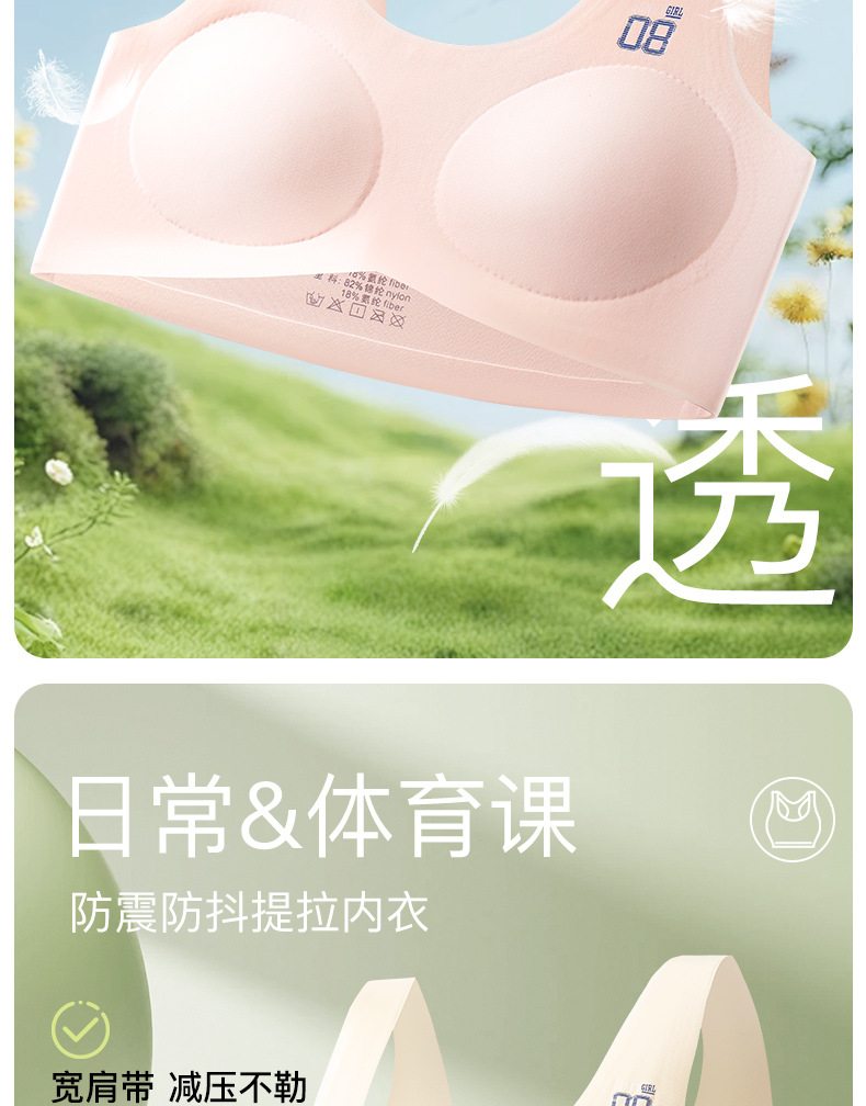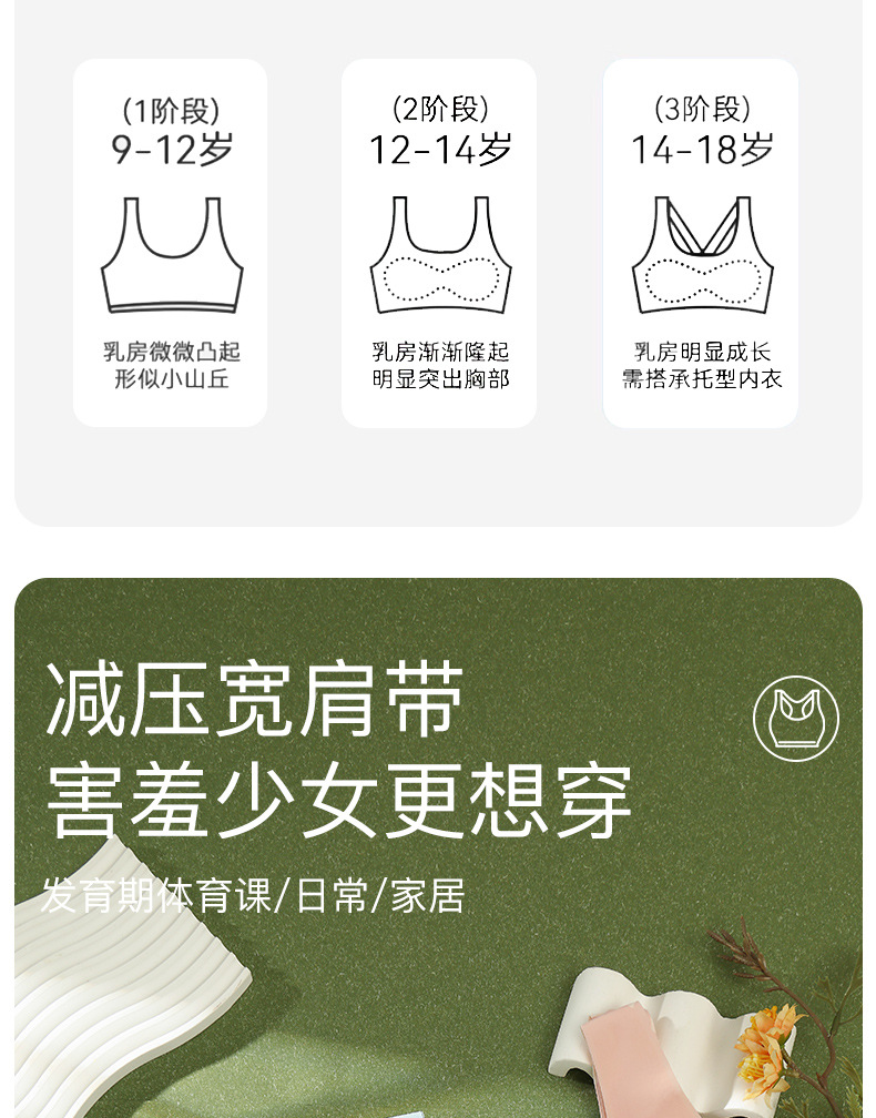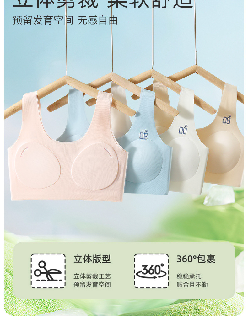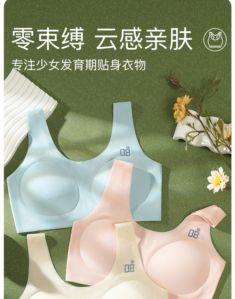 여아 속옷, 고등학생, 중학생 브라, 발달기 학생, 아이스 실크, 무봉제, 통기성, 편안한 스포츠 뷰티 백 브라스토어 가기