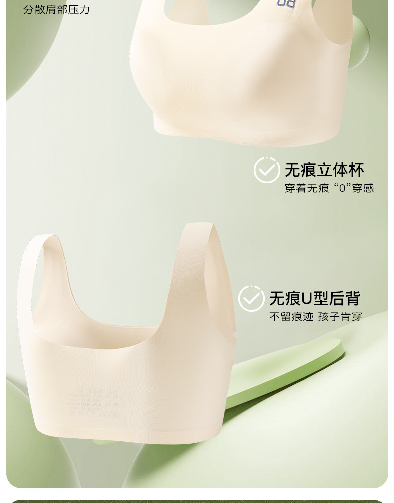 여아 속옷, 고등학생, 중학생 브라, 발달기 학생, 아이스 실크, 무봉제, 통기성, 편안한 스포츠 뷰티 백 브라