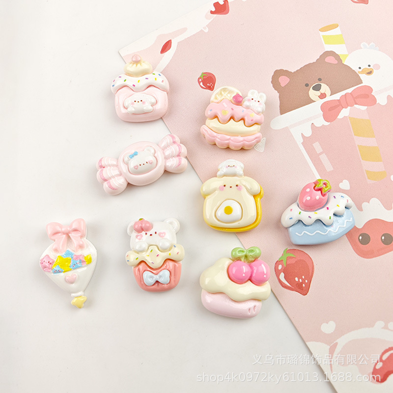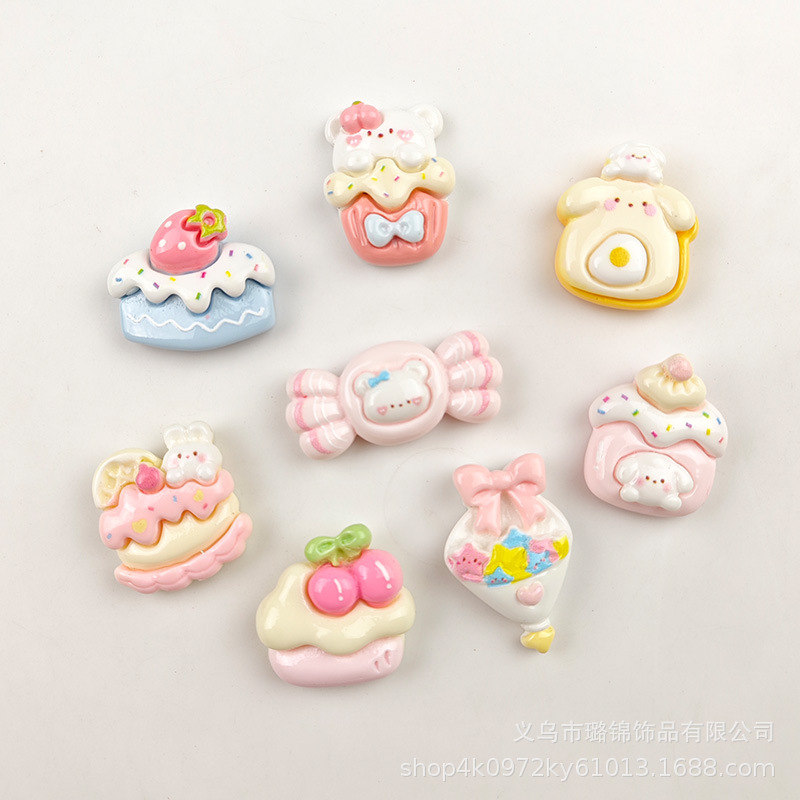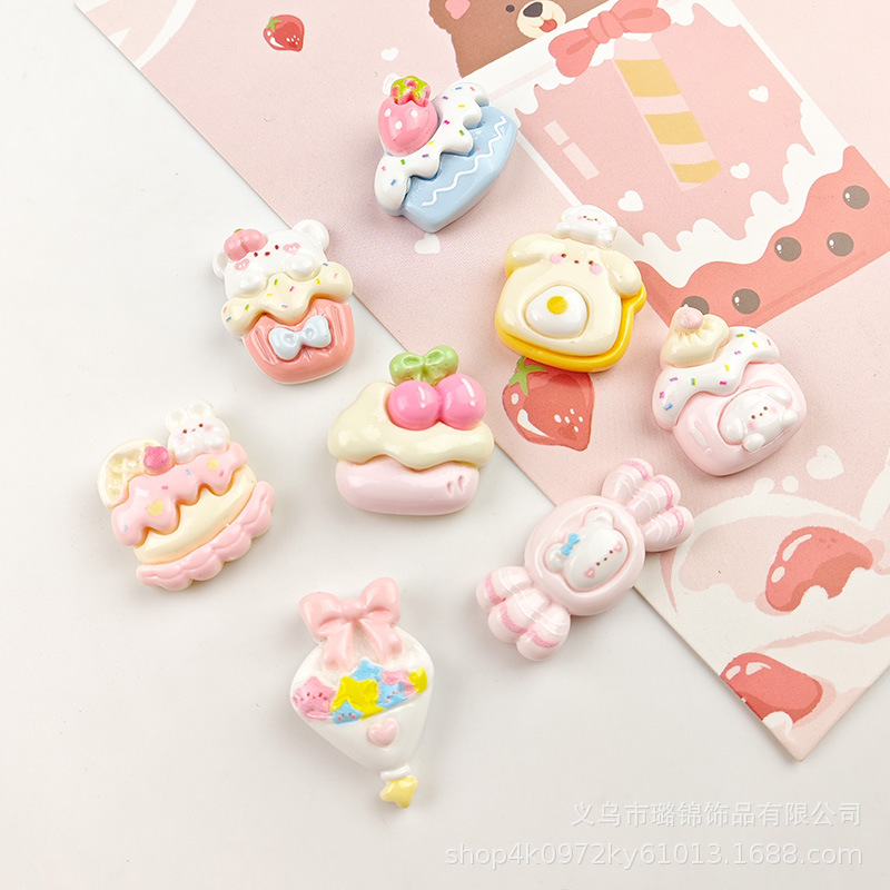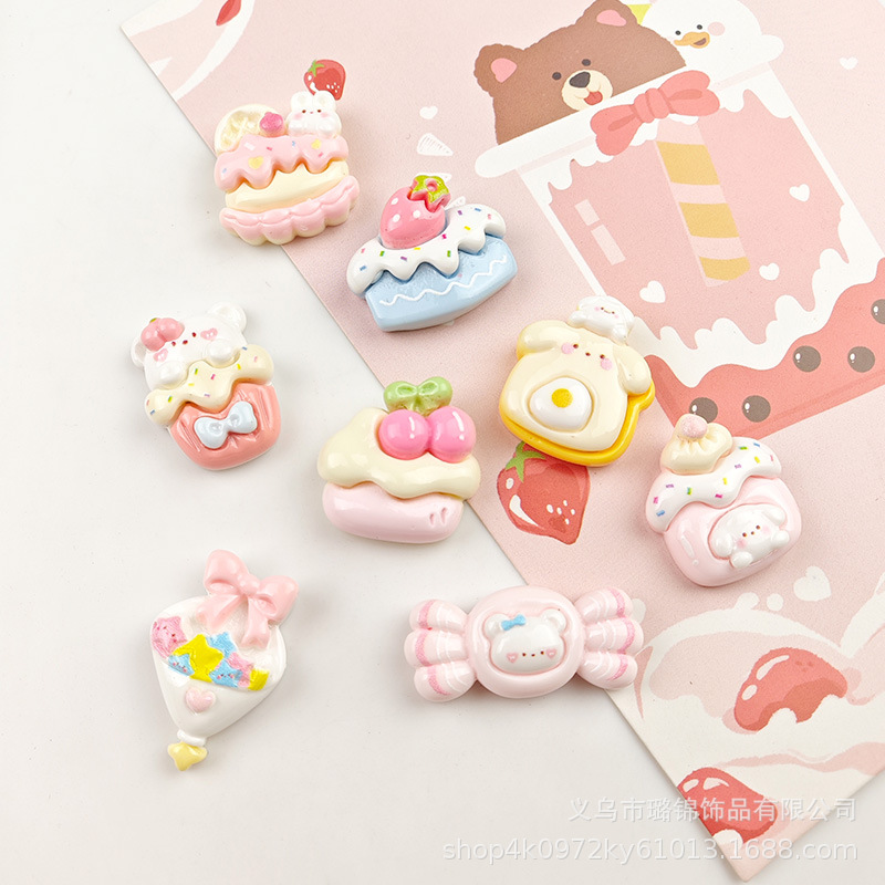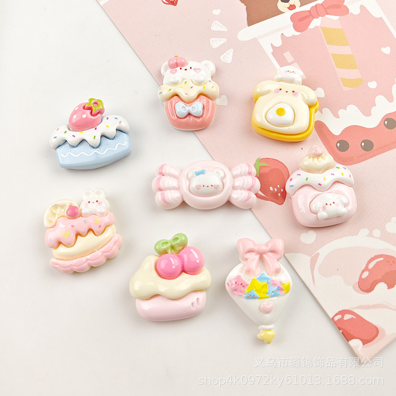 귀여운 체리 케이크 만화 크림 접착제 액세서리 나막신 버클 소재 수지 액세서리 diy 쥬얼리 머리핀스토어 가기