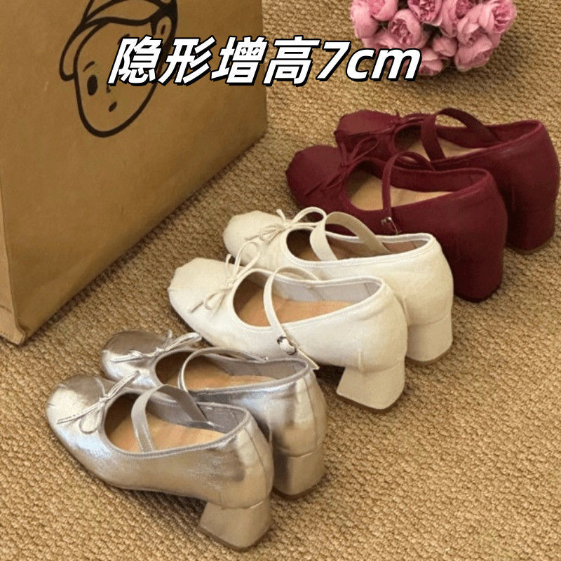프랑스 복고풍 높이 7cm 발레 스타일 나비 신발 2025 봄과 여름 버클 청키 힐 메리 제인 신발스토어 가기