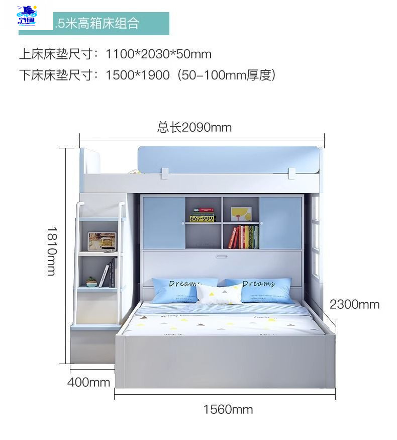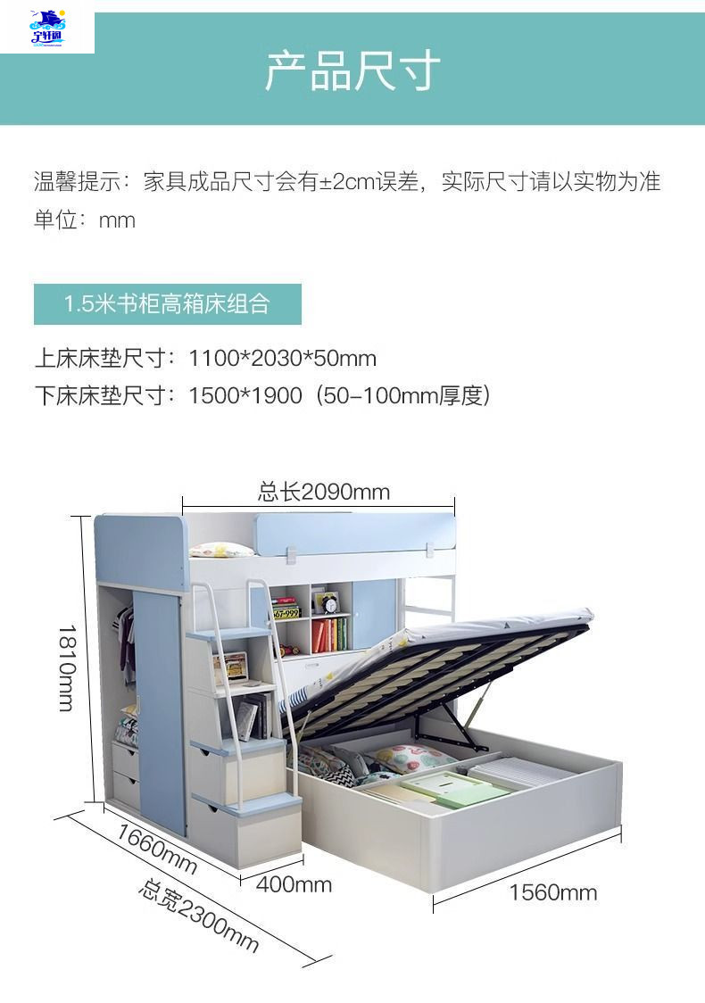 • 패키지 2 사다리 캐비닛 옷장 상부 침대 1.5 소프트 패키지 하이 박스