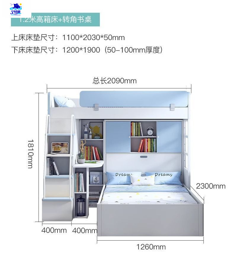 • 사다리 캐비닛 옷장 침대 5개 1.2 소프트 패키지 하이 박스 코너 책상