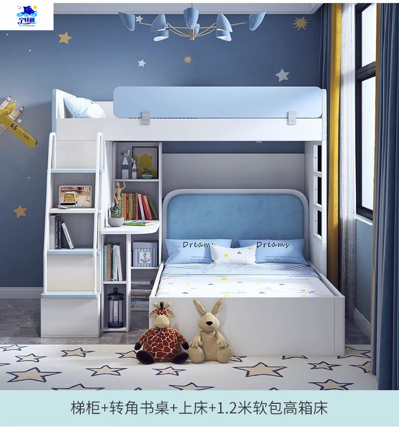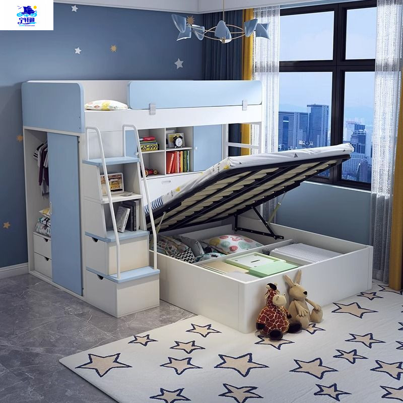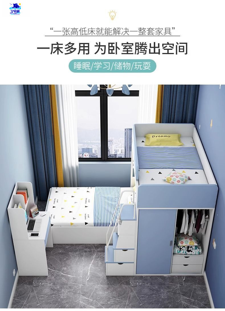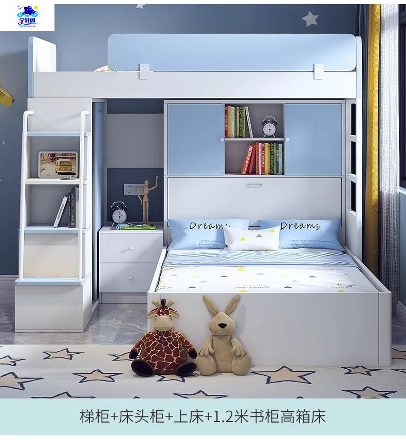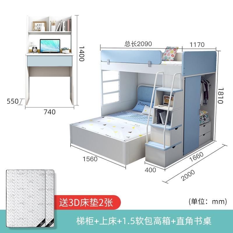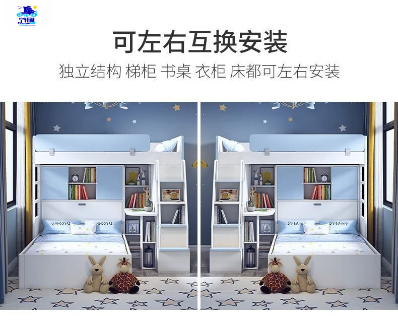 현대적이고 간단한 어린이용 하이 및 로우 침대 다기능 수납 이층 침대 책상 옷장 이층 침대 교차 이층 침대스토어 가기