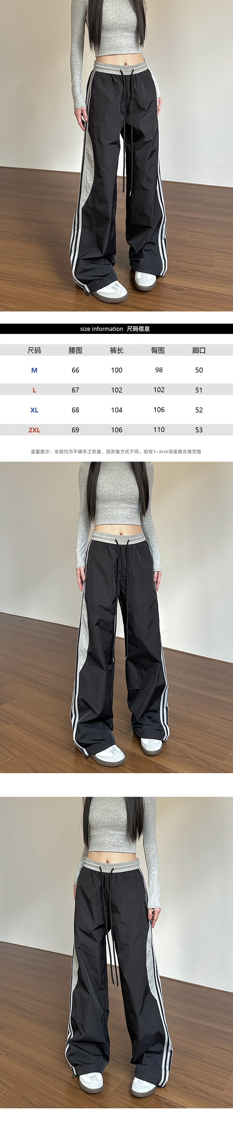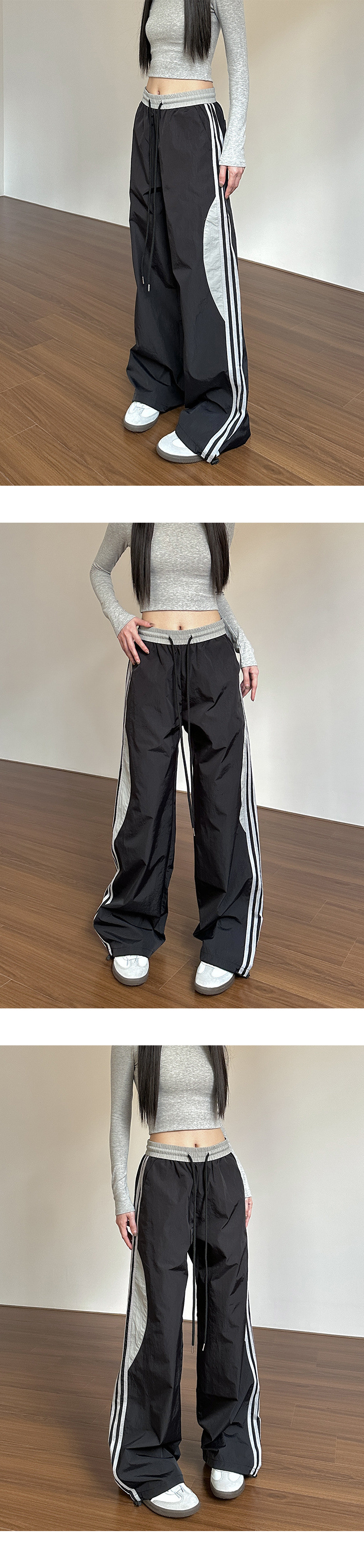 아메리칸 레트로 사이드 스트라이프 스플라이싱 공수 충전 바지 여성 여름 얇은 루즈 슬리밍 와이드 레그 캐주얼 바지스토어 가기