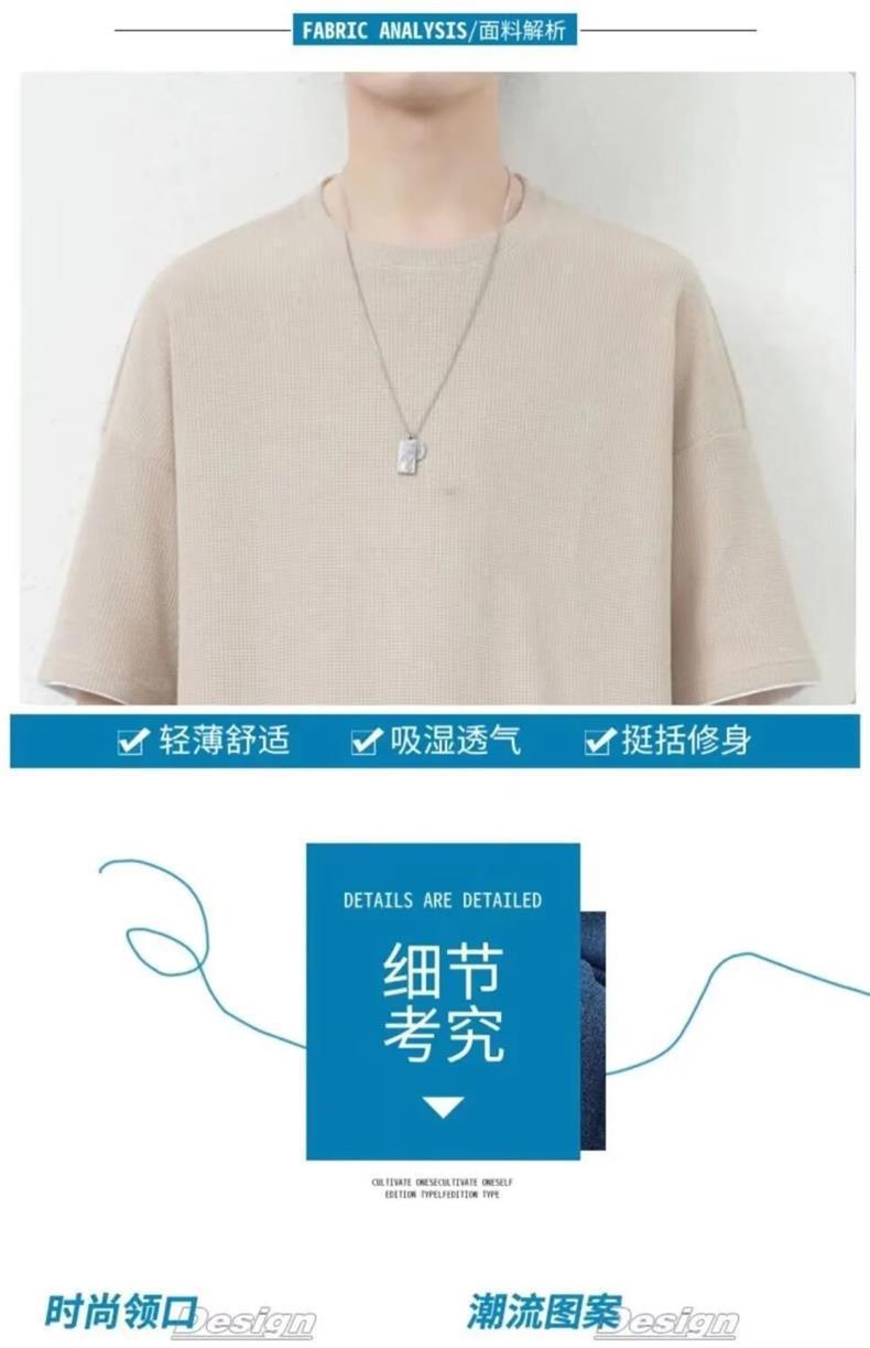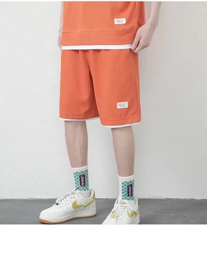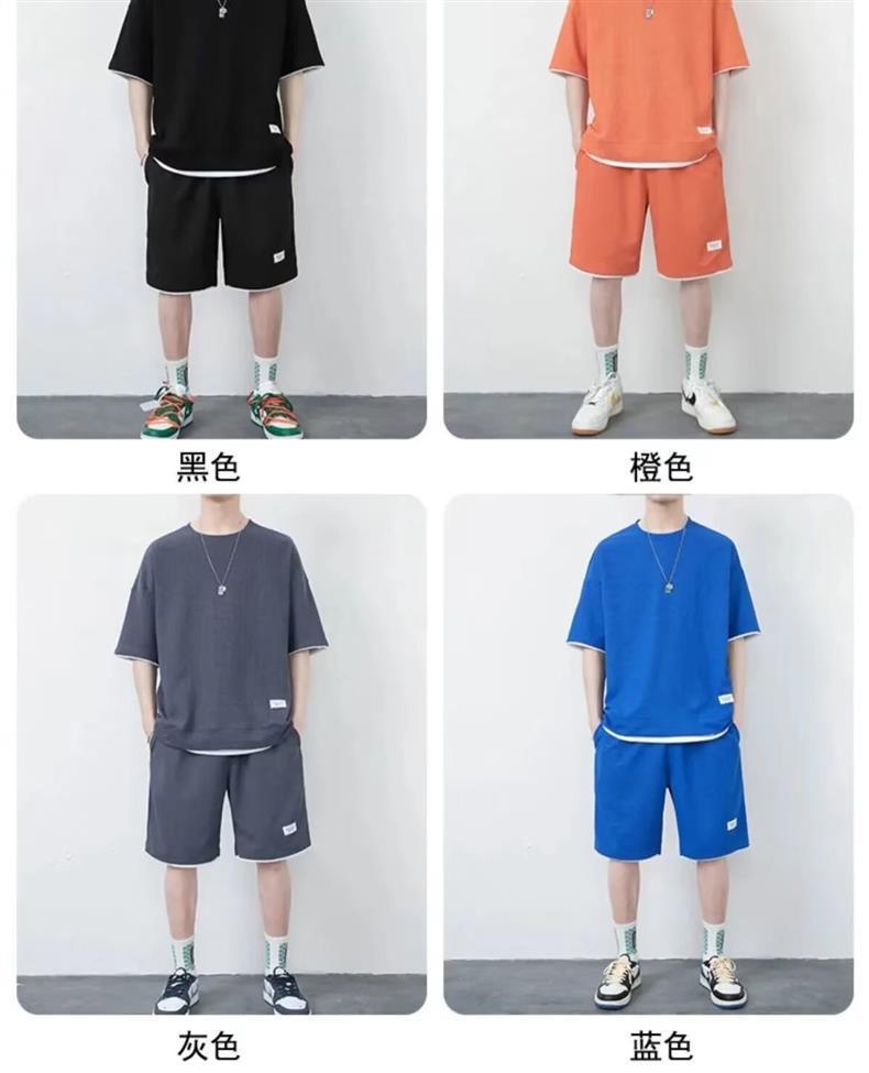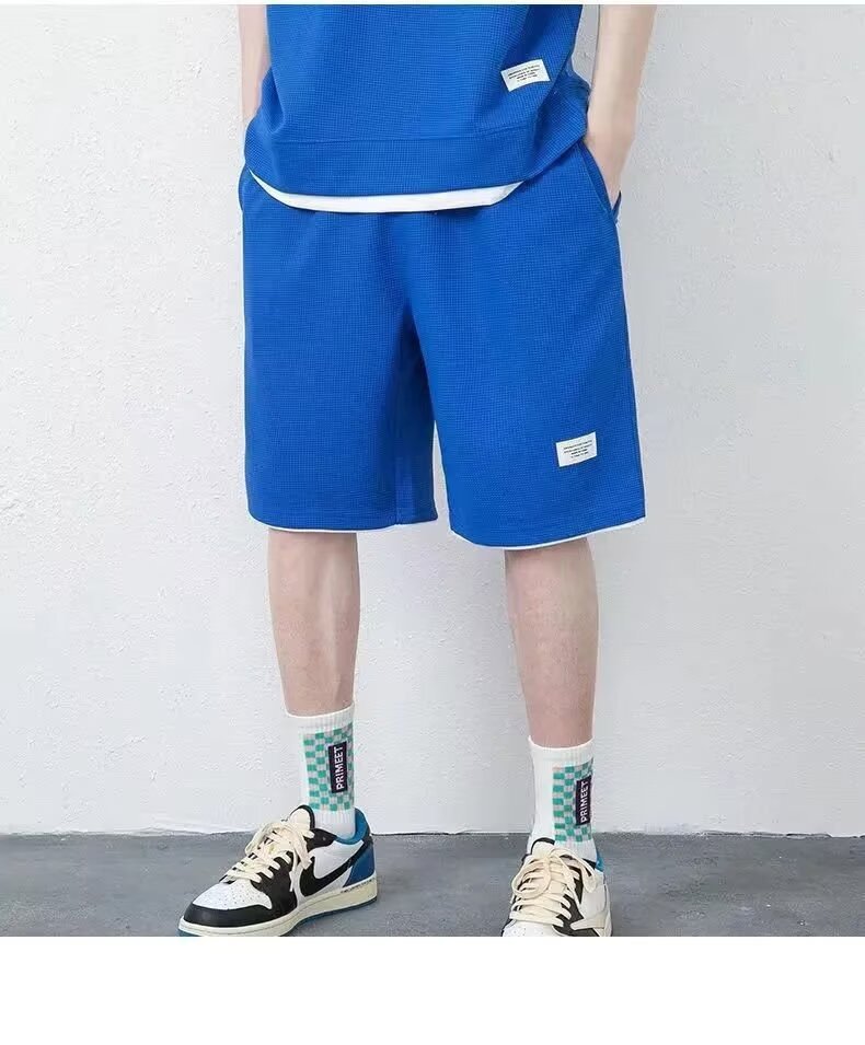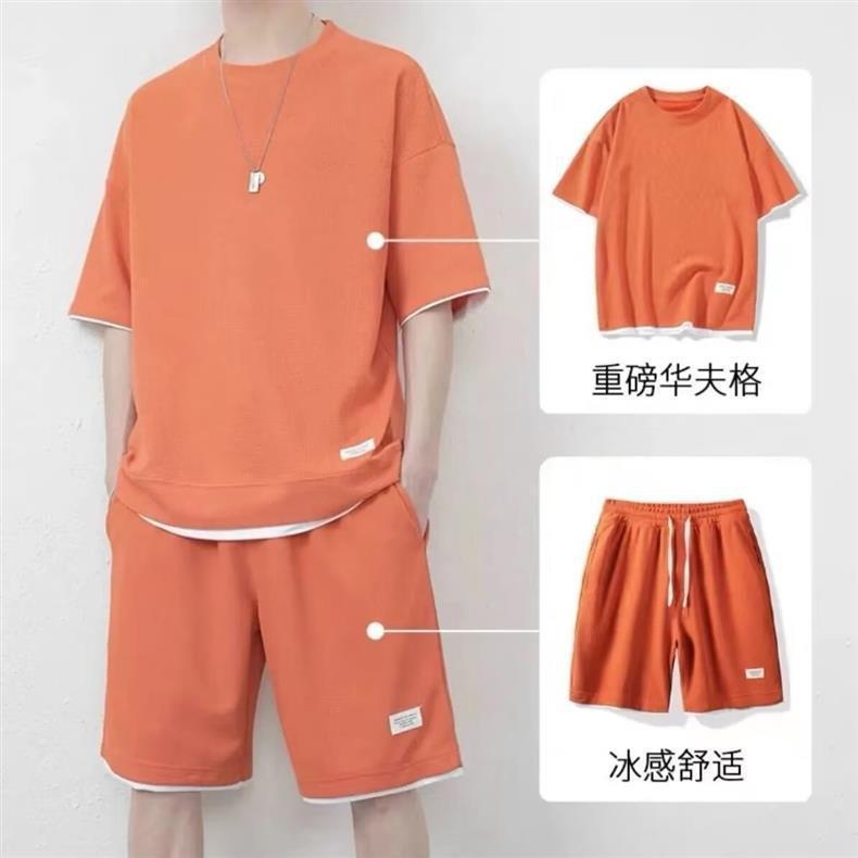 남자 여름 클래식 간단한 올 매치 와플 러 반팔 반바지 세트 남자 유행 잘 생긴 캐주얼 스포츠 세트스토어 가기