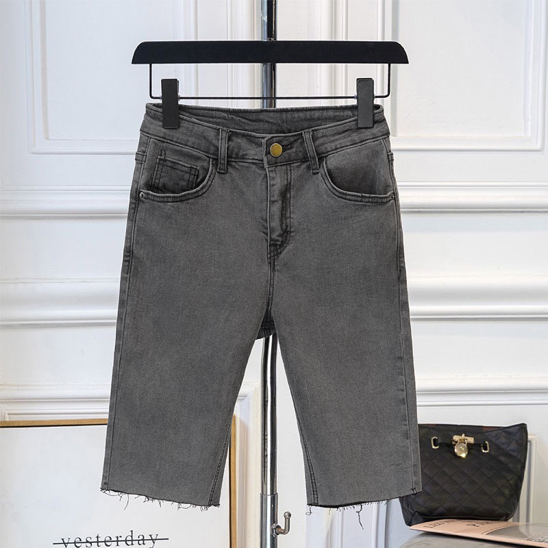 여성용 스모크 그레이 데님 5부 팬츠 2025 여름 신상 하이웨이스트 타이트 슬리밍 아우터웨어 인터넷 연예인 사이클링 팬츠 트렌디스토어 가기