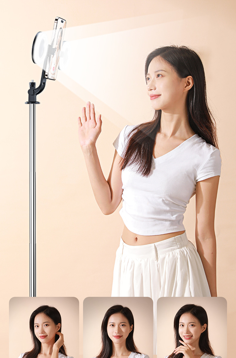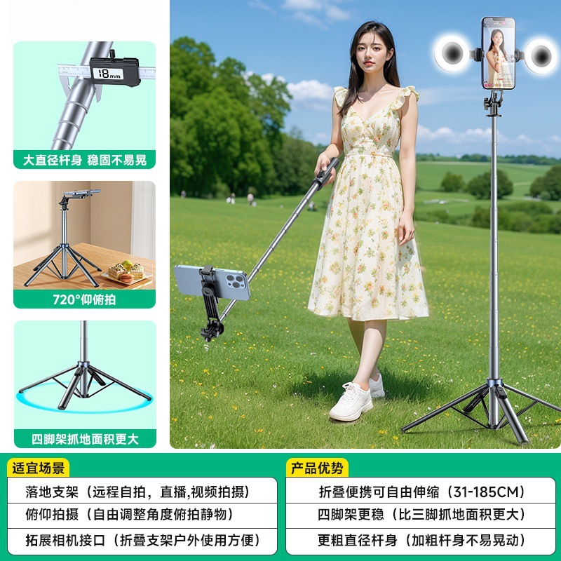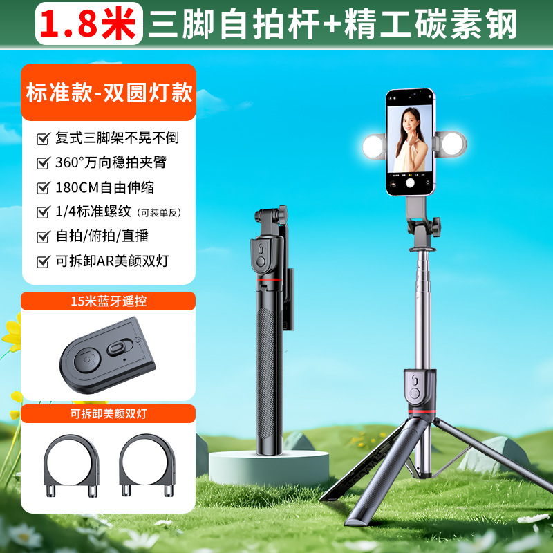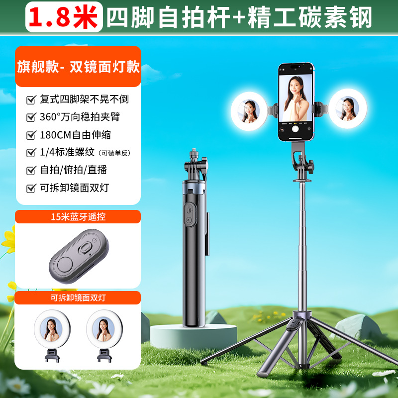 • R9 두꺼운 막대 + 이중 8cm 미용 필 라이트 미러 램프 [720도 이중 축 스테인레스 스틸 모델 원클릭 블루투스가 포함된 2.2m피트 용골]