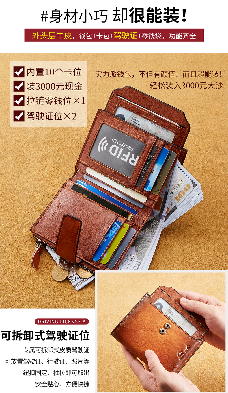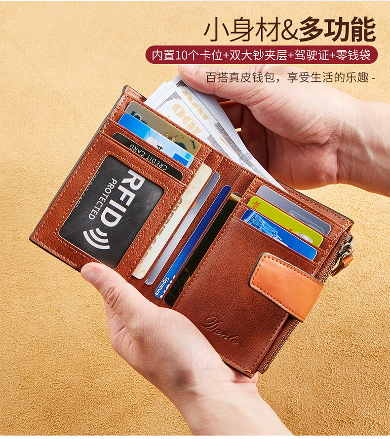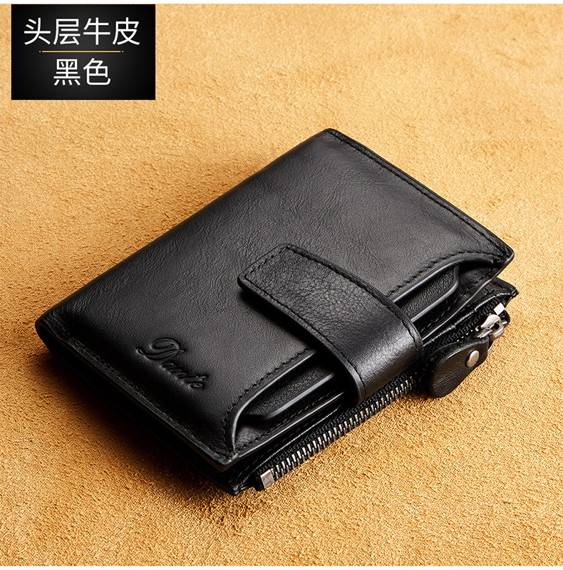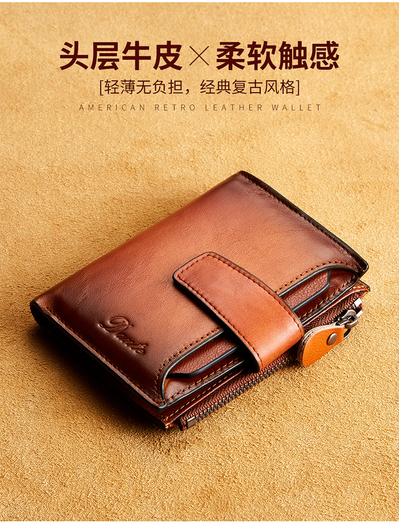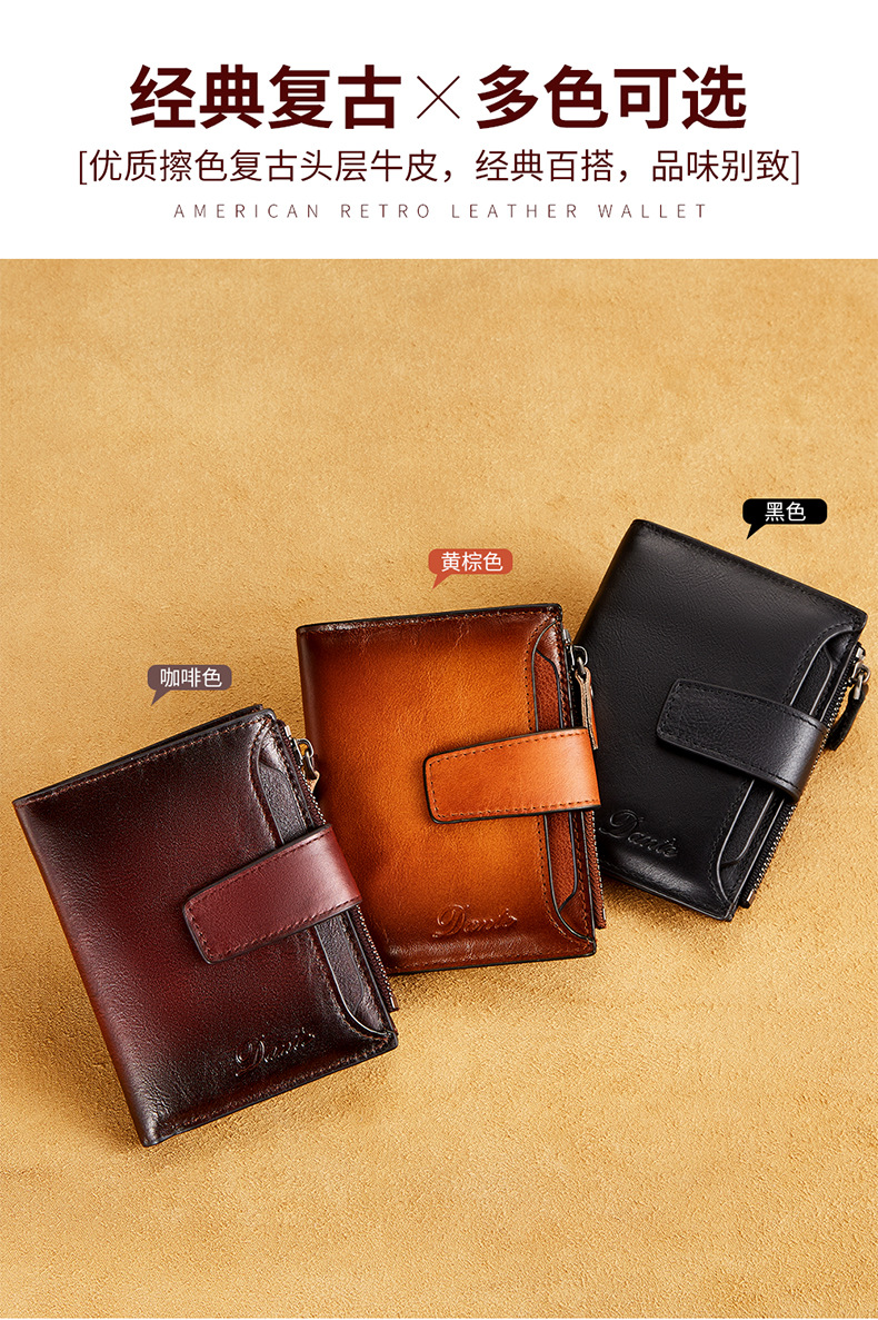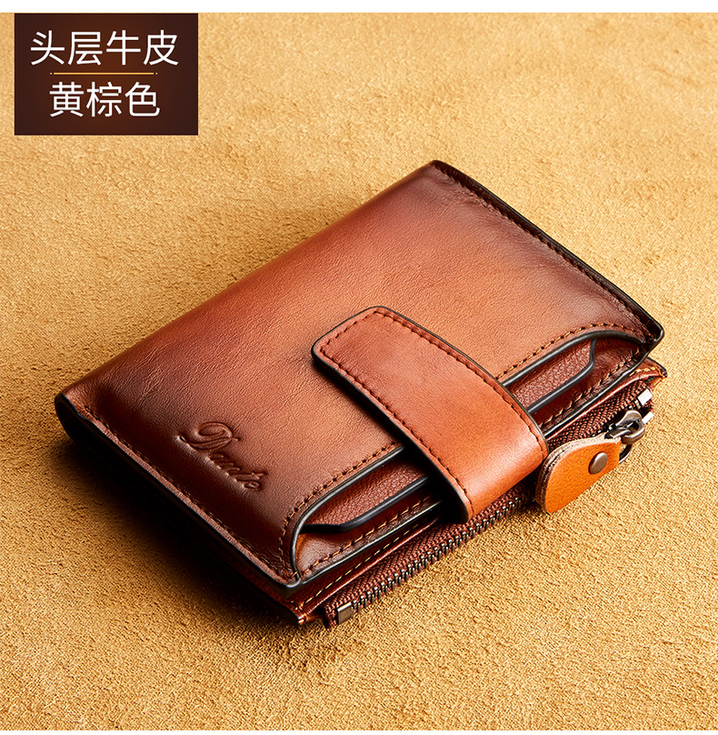 남성용 짧은 정품 가죽 지갑, 1층 소가죽 RFID 도난 방지 브러시, 패셔너블한 캐주얼 지갑, 운전 면허증 대외 무역 지갑스토어 가기