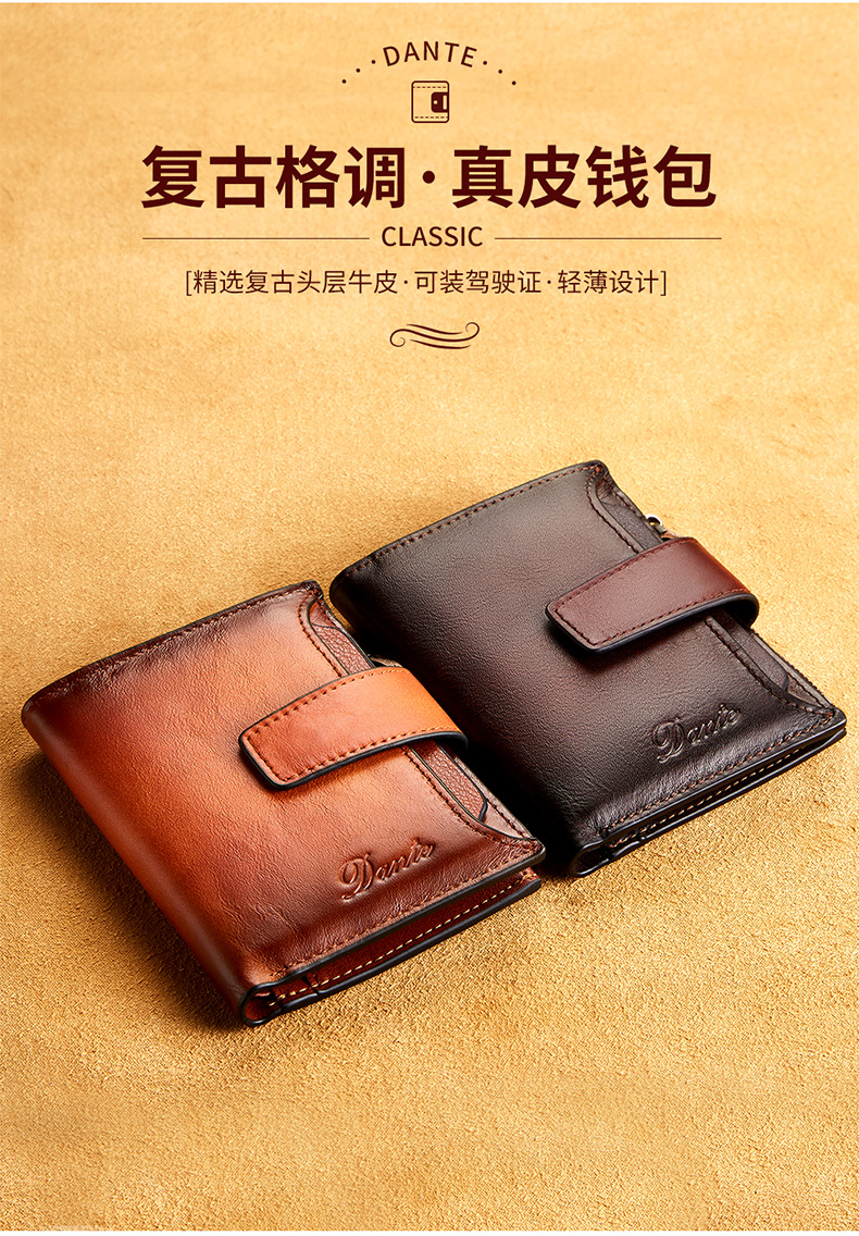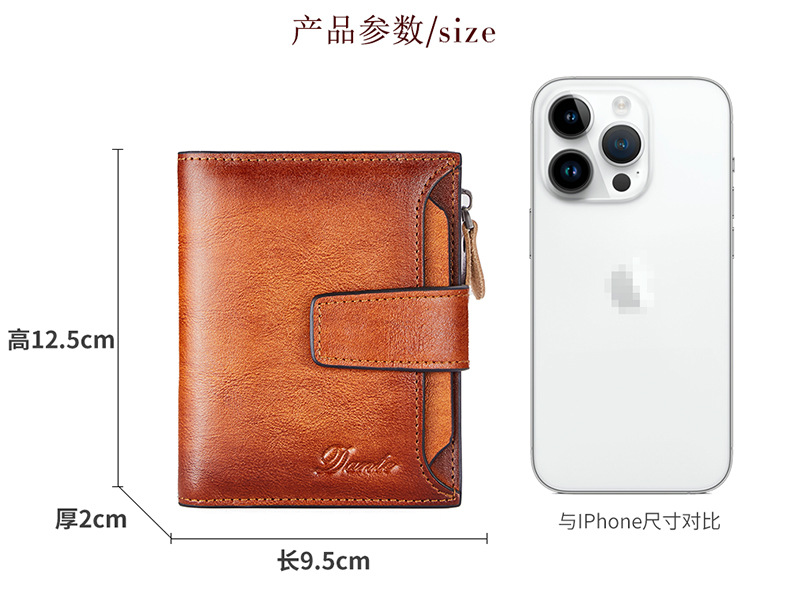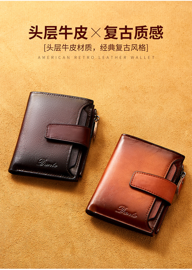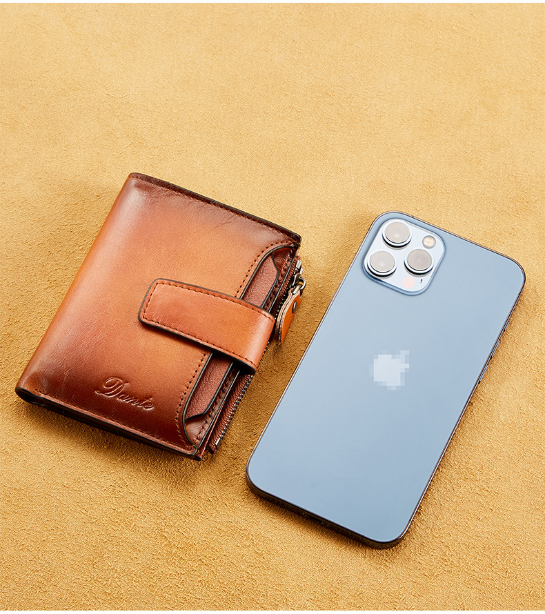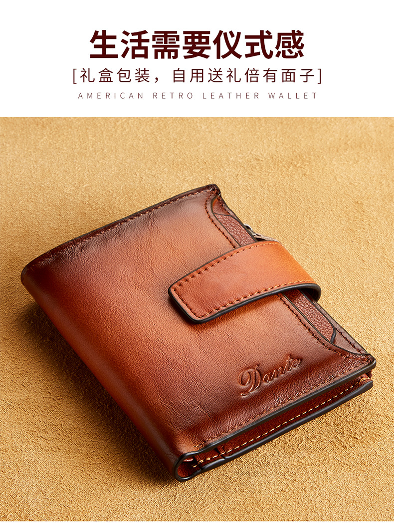 남성용 짧은 정품 가죽 지갑, 1층 소가죽 RFID 도난 방지 브러시, 패셔너블한 캐주얼 지갑, 운전 면허증 대외 무역 지갑스토어 가기