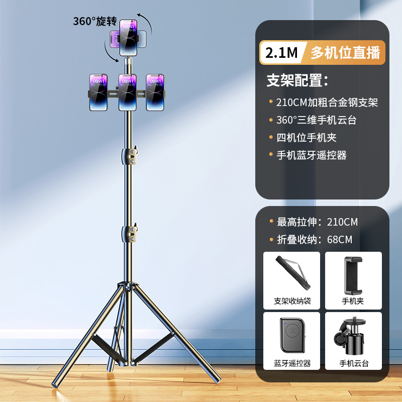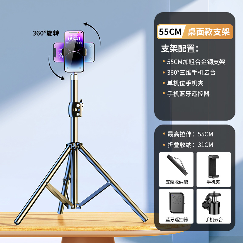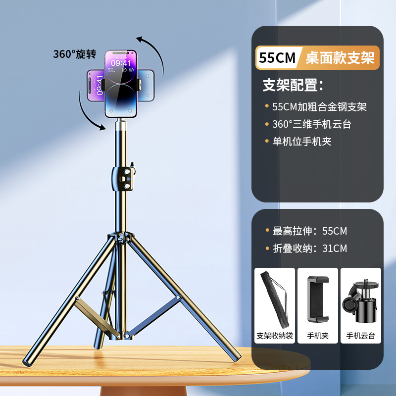2025 새로운 셀카봉 삼각대 휴대폰 라이브 사진 360 회전 스탠드 셀카 아티팩트 다기능 블루스토어 가기