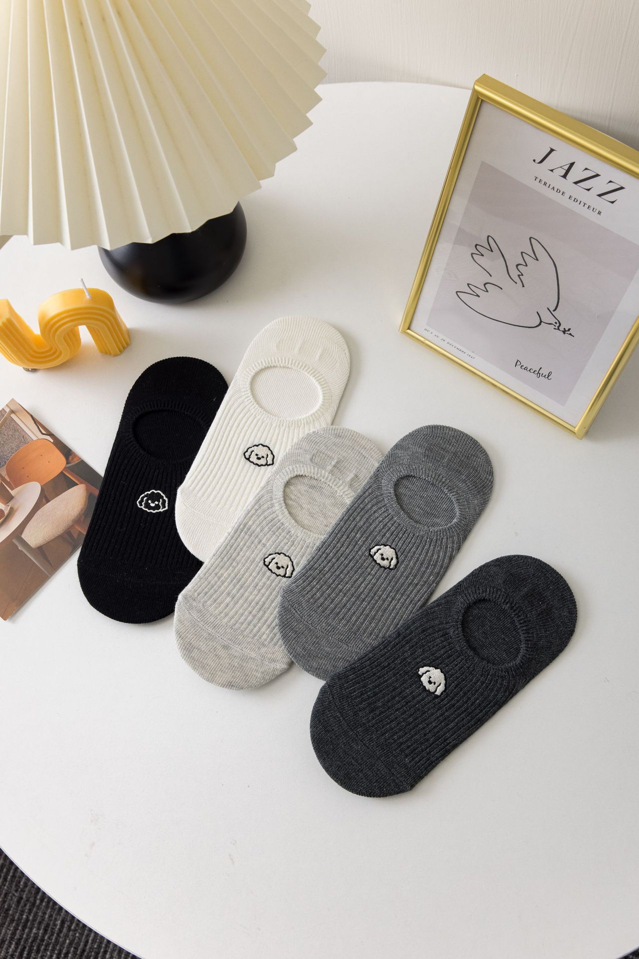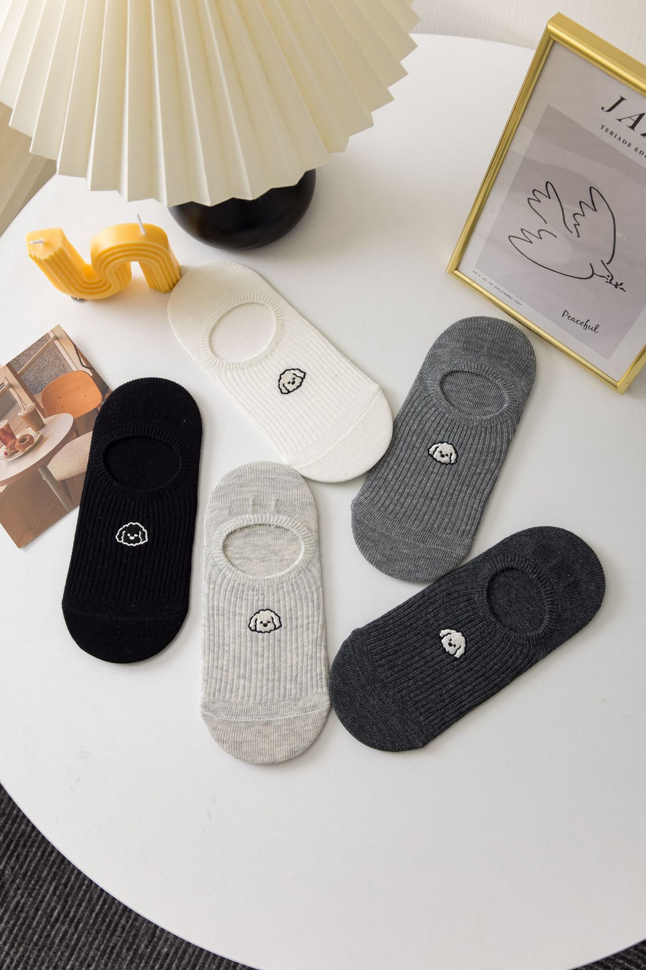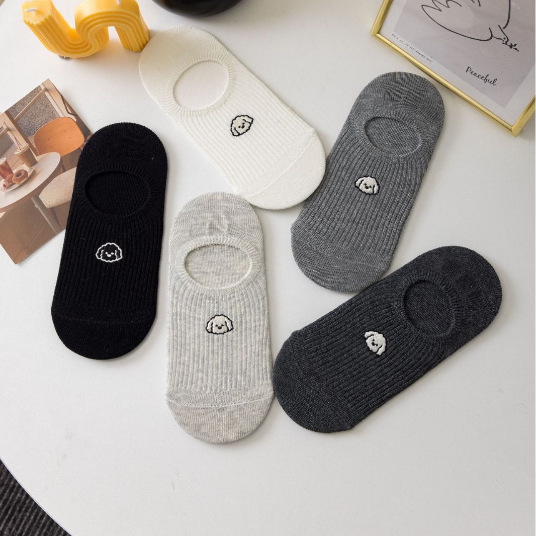 여성용 자수 강아지 메쉬 통기성 땀 흡수 편안한 미끄럼 방지 보이지 않는 양말
