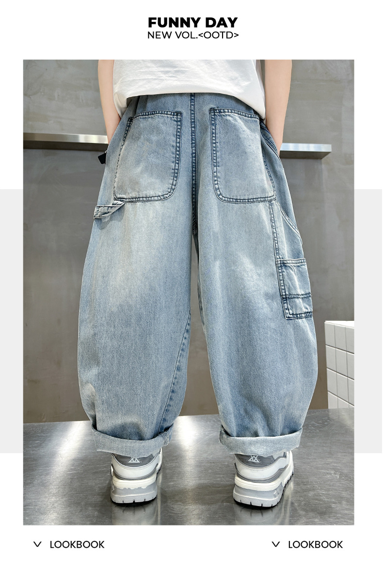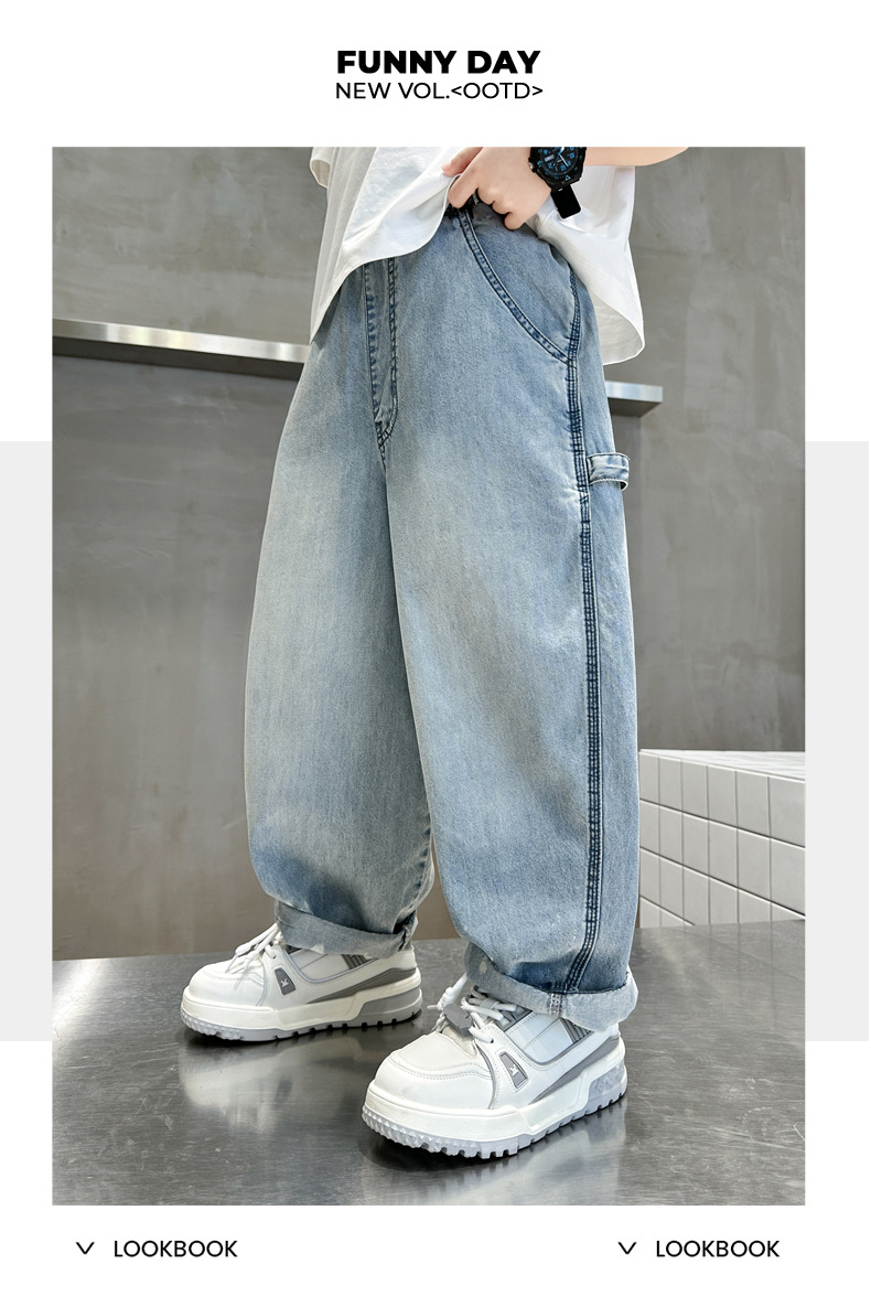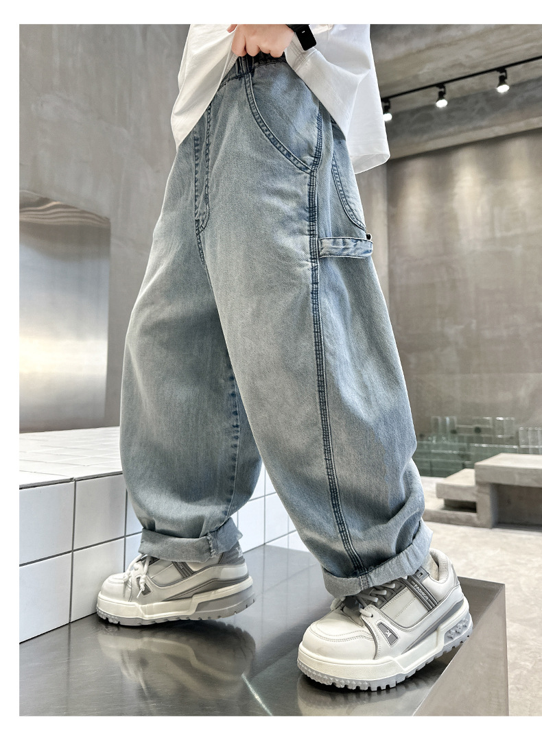 남아 여름 바지 2026 신상 중대형 아동용 여름 청바지 얇은 모델 남아 모기 방지 바지 멋스럽고 트렌디한 스타일