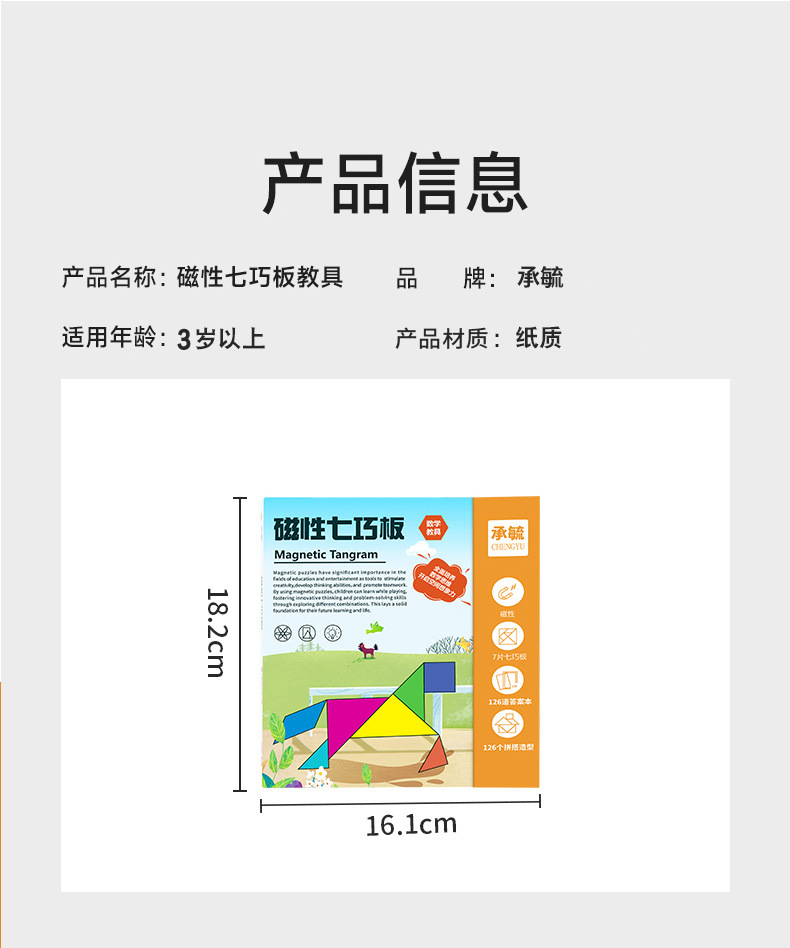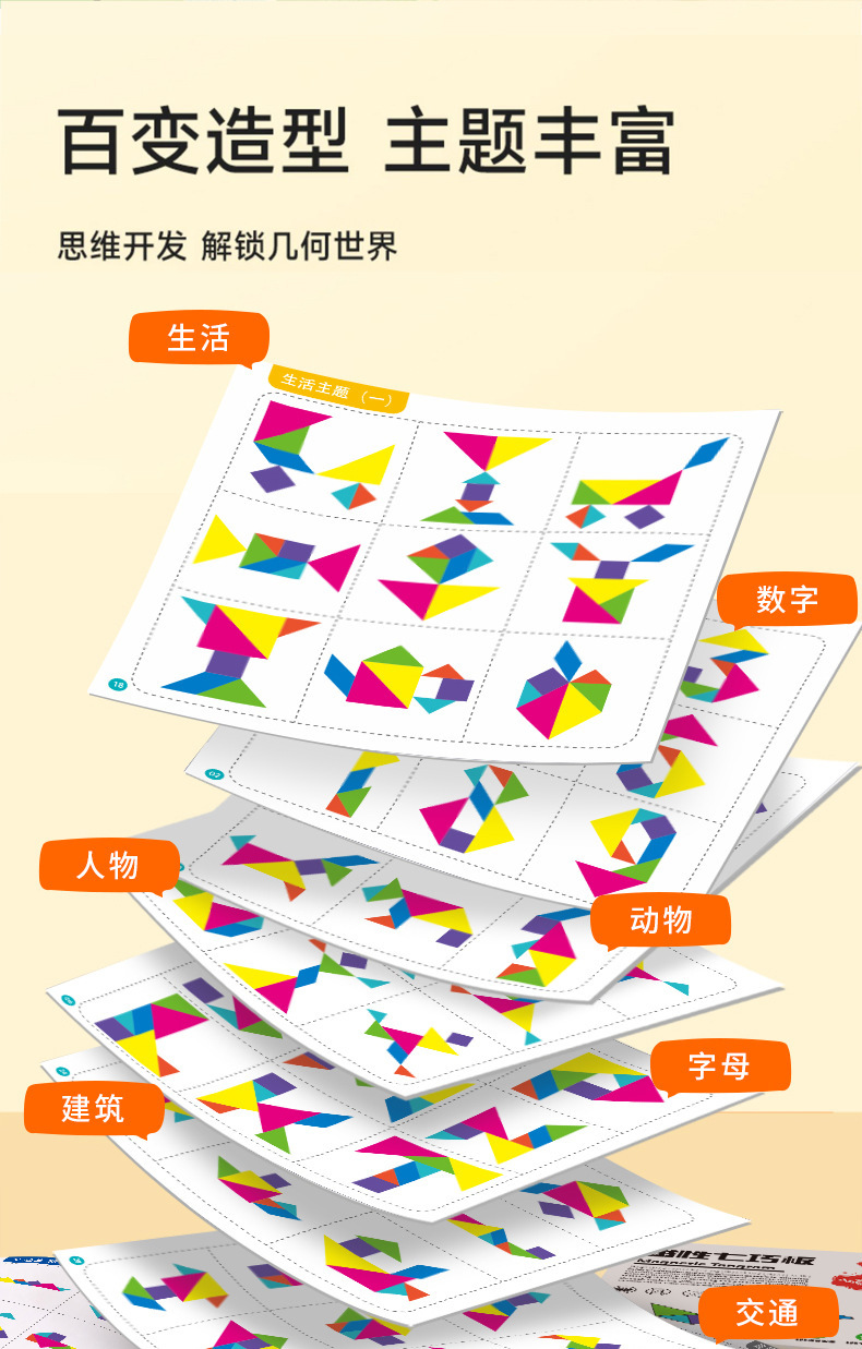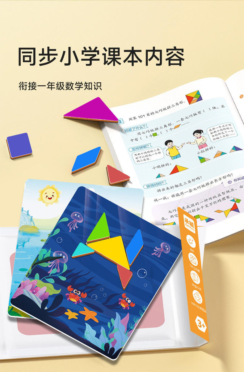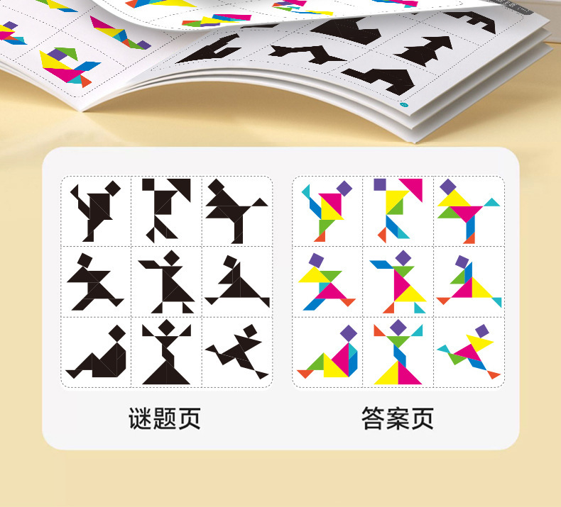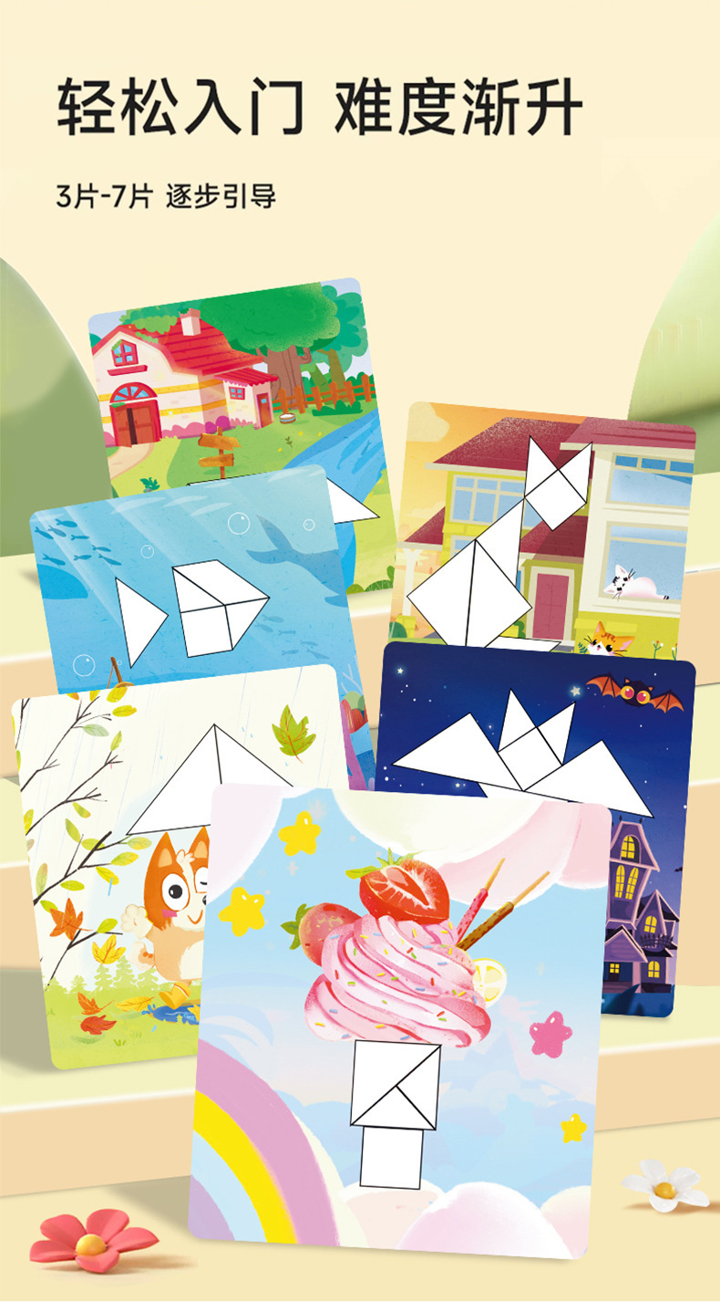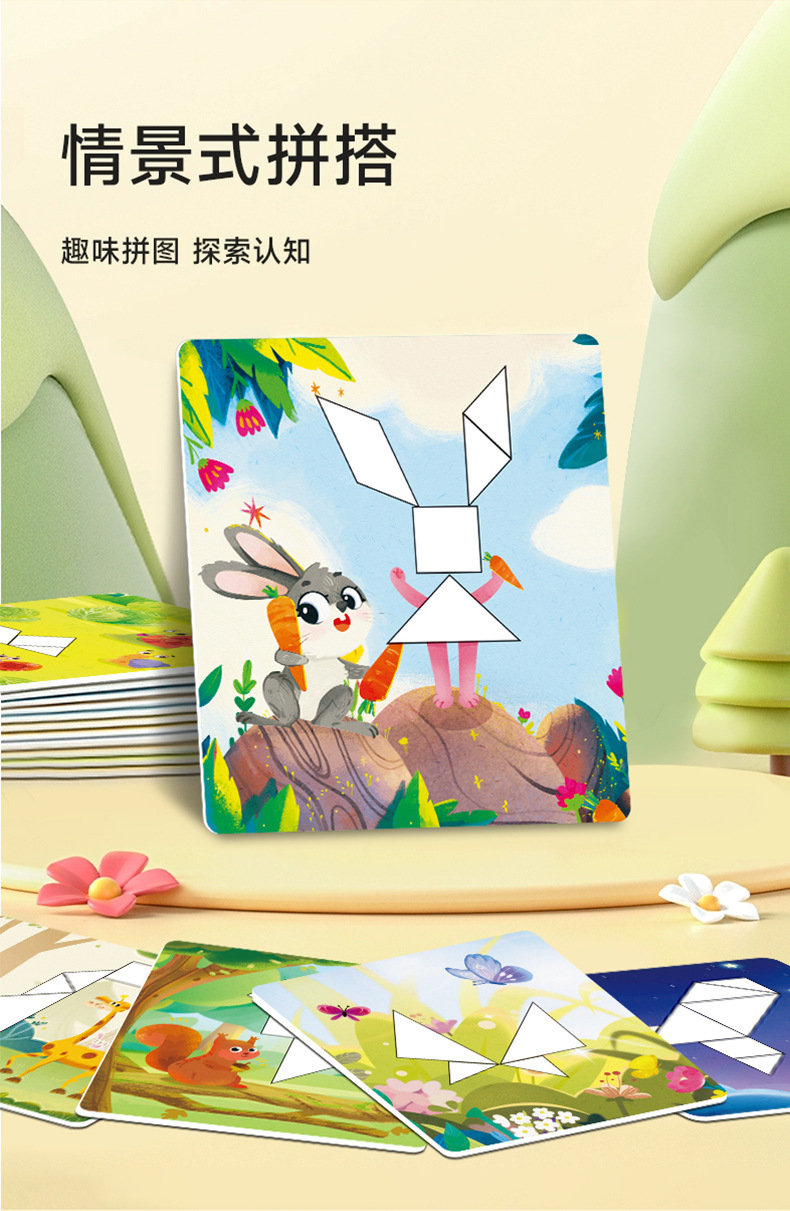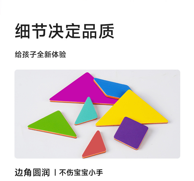 EVA款内含:EVA七巧板七块+一本玩法说明书+15张场景卡(双面30个场景)