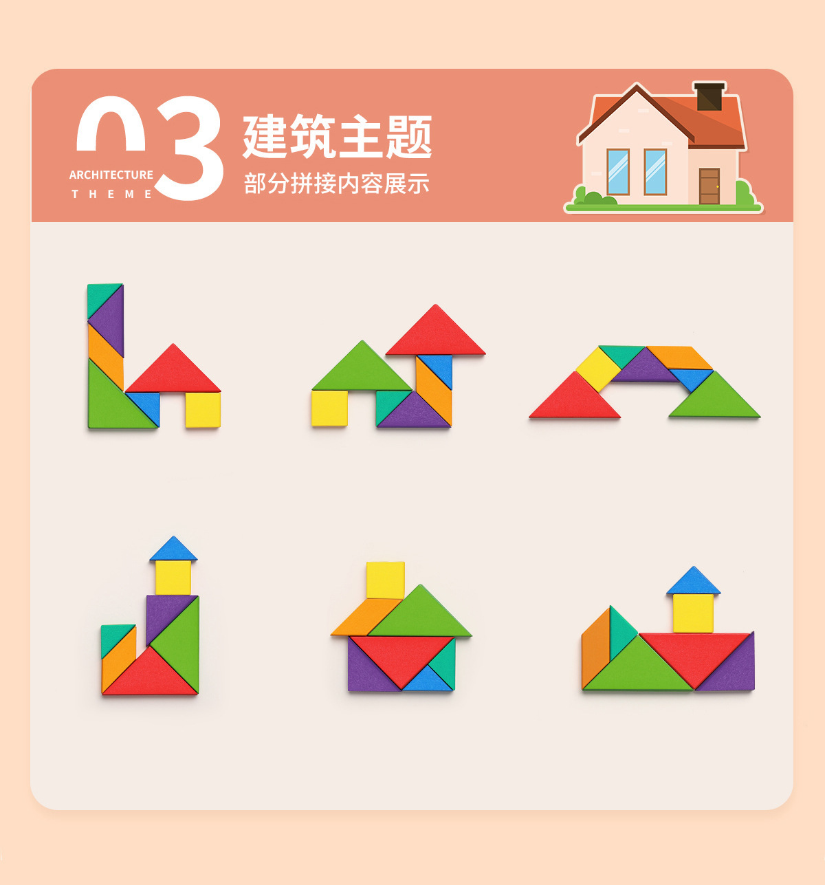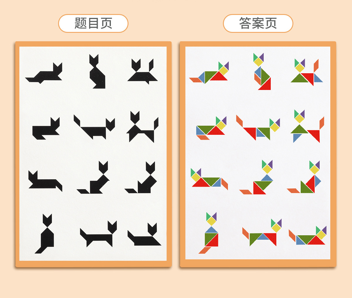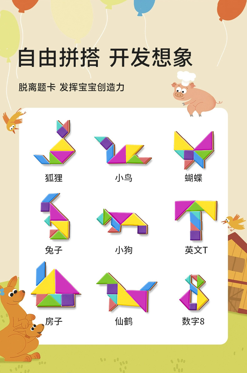 木质款内含:实木七巧板七块+一本玩法说明书