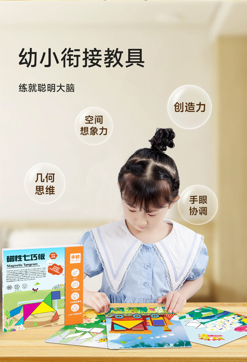 어린이 자석 tangram 초등학교 교육 보조 지능 퍼즐 자석 유치원 교육 퍼즐 장난감 세트스토어 가기