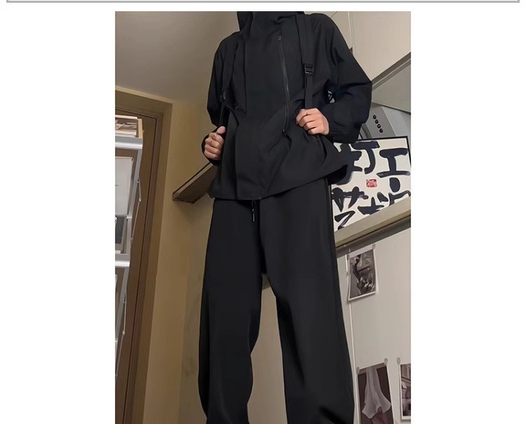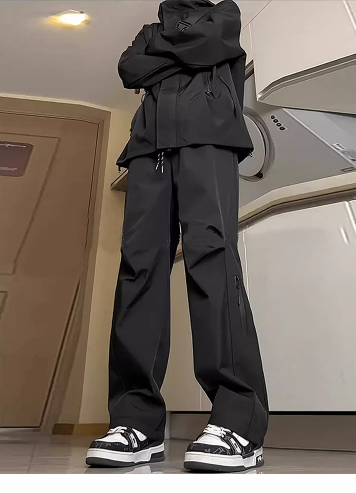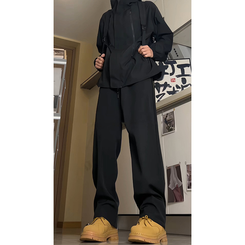 블랙 소프트 쉘 남성용 3방수 팬츠, 봄 아메리칸 팬츠, 핸섬 캐주얼 스트레이트 레그 드레이프 와이드 레그 캐주얼 팬츠