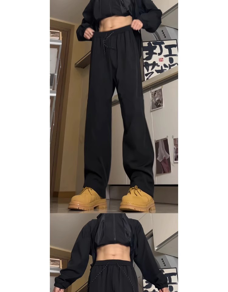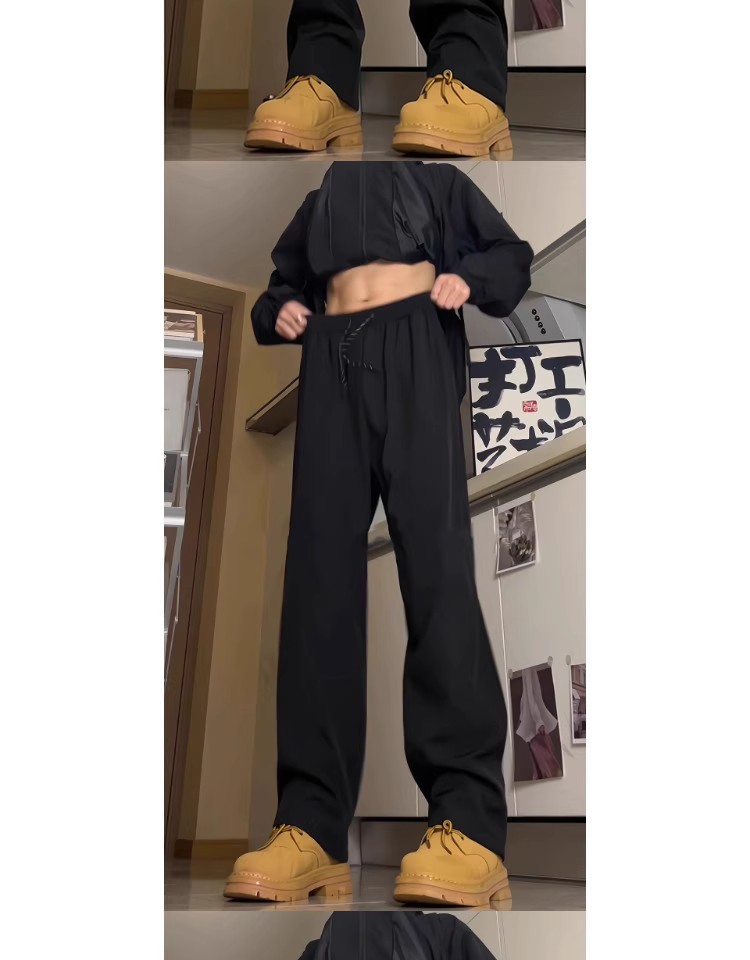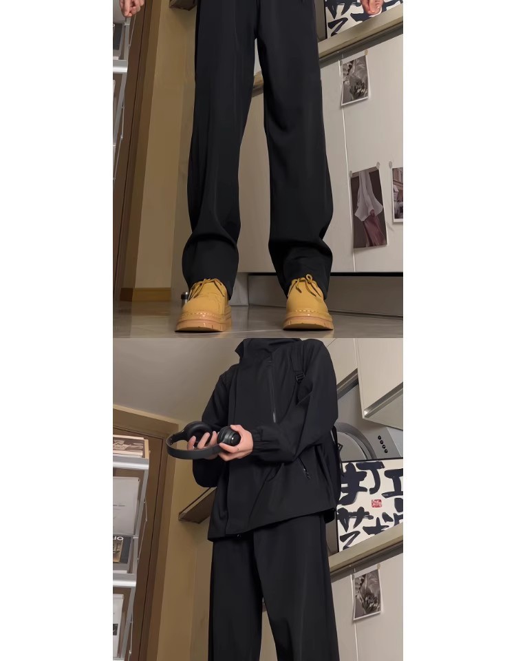 블랙 소프트 쉘 남성용 3방수 팬츠, 봄 아메리칸 팬츠, 핸섬 캐주얼 스트레이트 레그 드레이프 와이드 레그 캐주얼 팬츠스토어 가기
