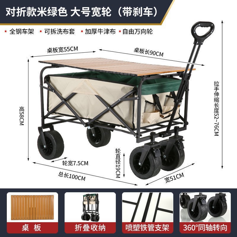 • [상위 구성] 카드 그린/ 10inch 탱크 더블 브레이크 유니버설 휠 - 스톨 접이식 테이블 + 야외 캠핑카 /