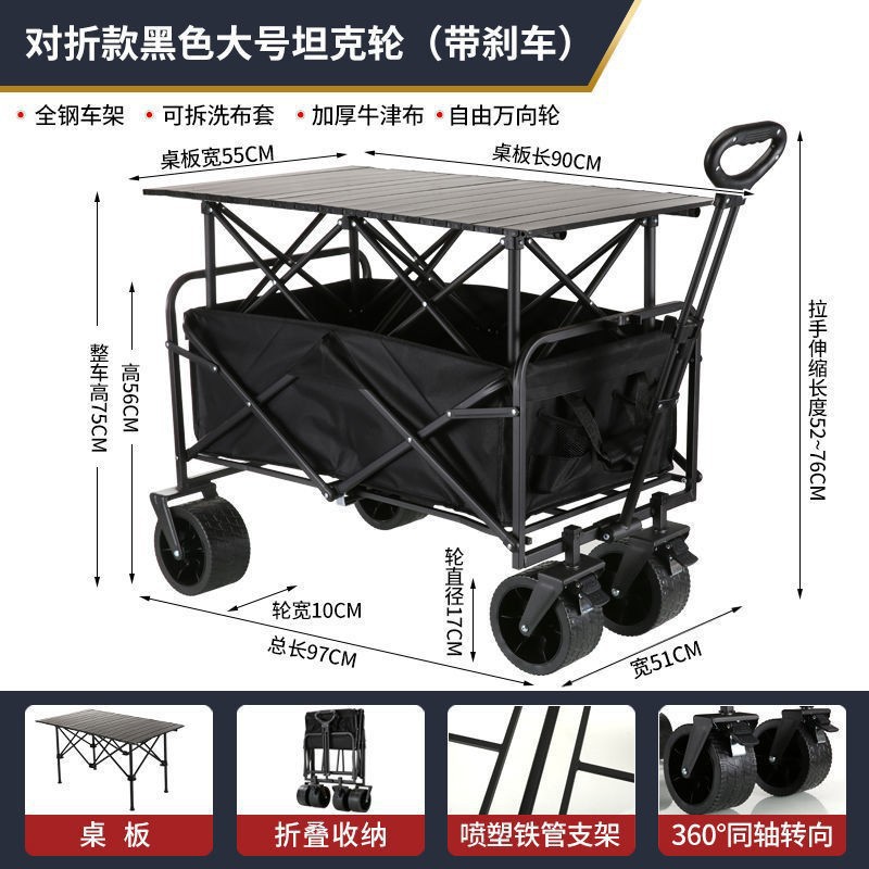 • [상위 구성] 블랙/ 10inch 탱크 휠 더블 브레이크 유니버설 휠 업그레이드 모델/야외 캠핑카 + 접이식 데스크탑
