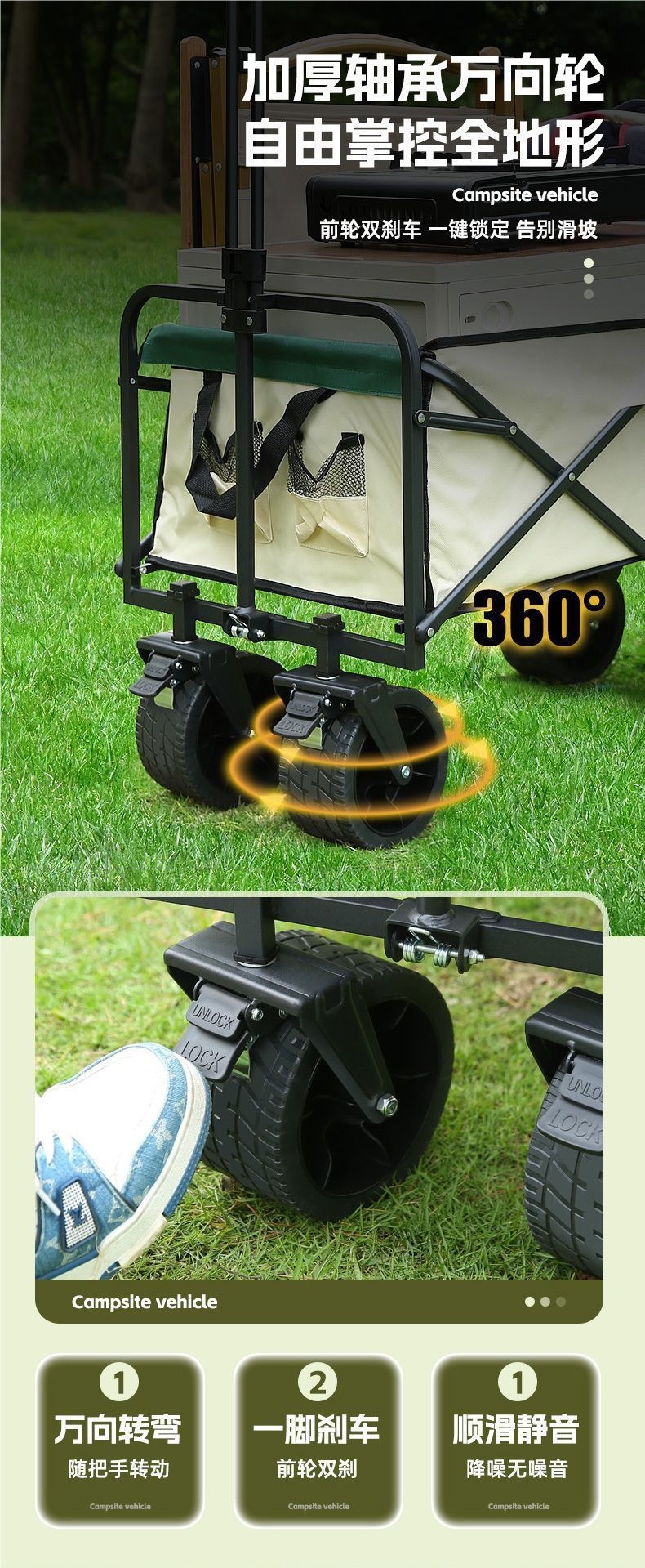 • 카키/오프로드 휠 대형/ 8inch 더블 브레이크 유니버설 휠-스톨 접이식 테이블+야외 캠핑카/