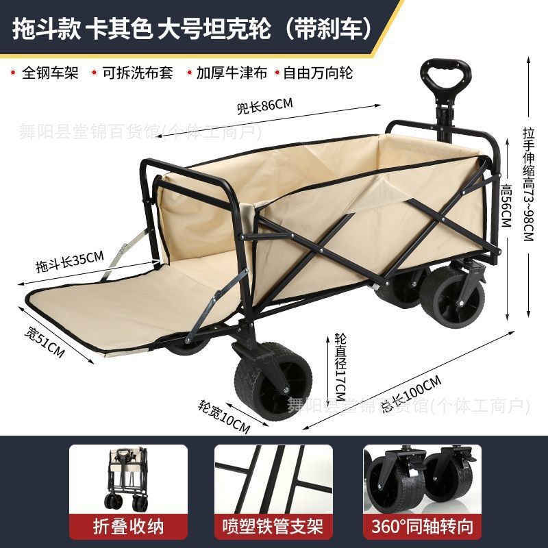• [상위 구성] 카키/ 10inch 탱크 더블 브레이크 유니버설 휠 - 스톨 접이식 테이블 + 야외 캠핑카 /