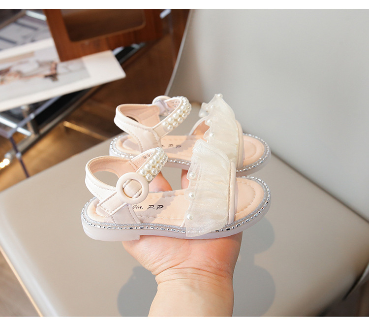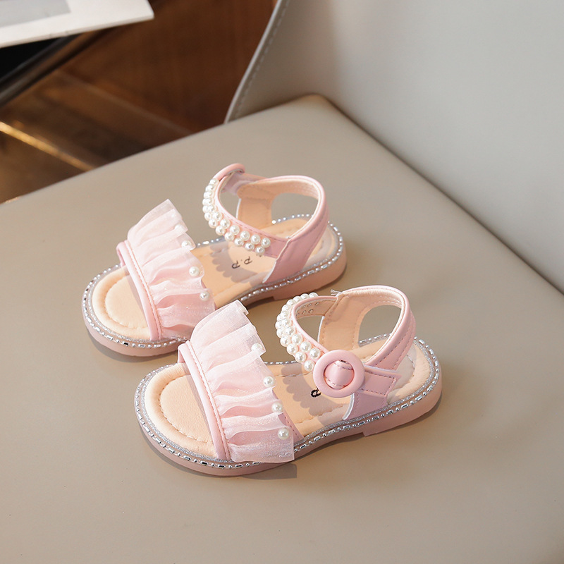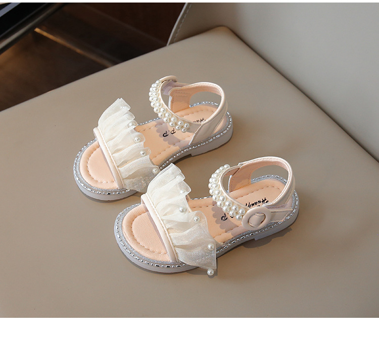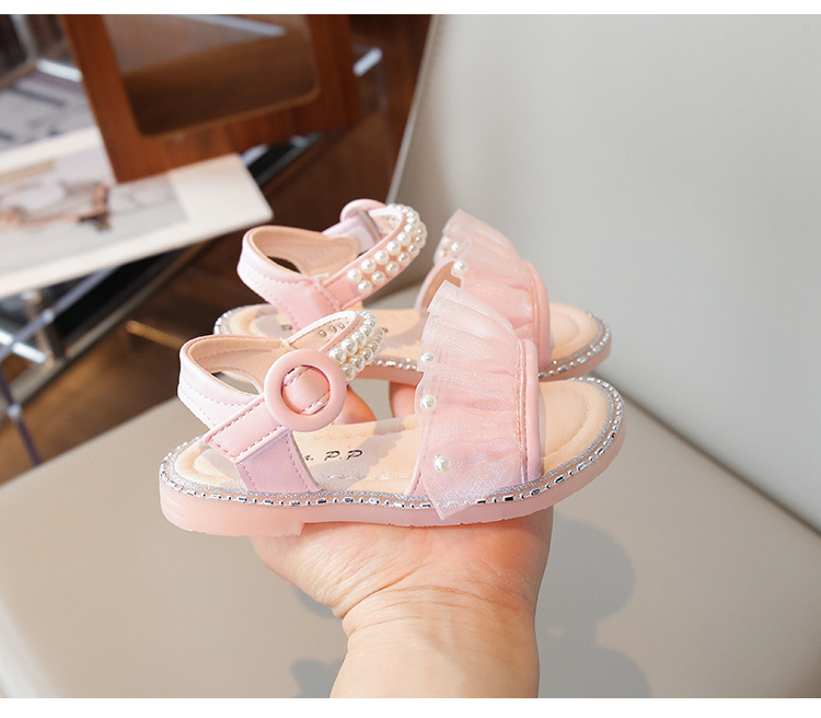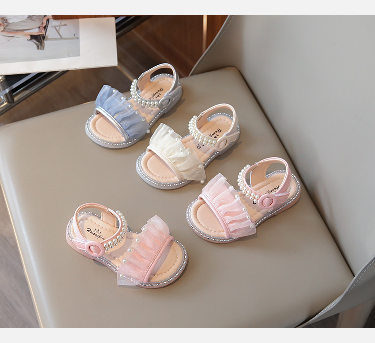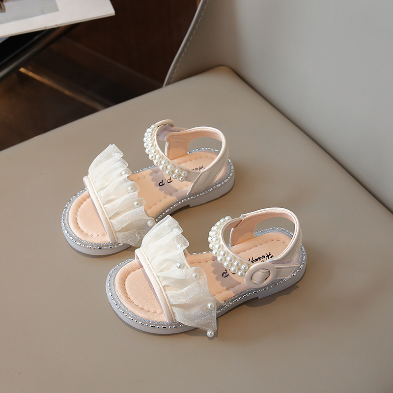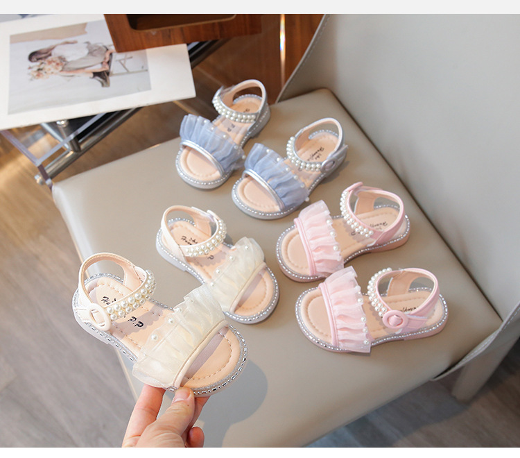 여자 샌들 여름 새로운 요정 스타일 메쉬 진주 공주 신발 한국 스타일 미끄럼 방지 부드러운 바닥 비치 신발 유행