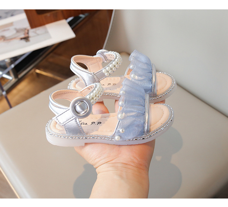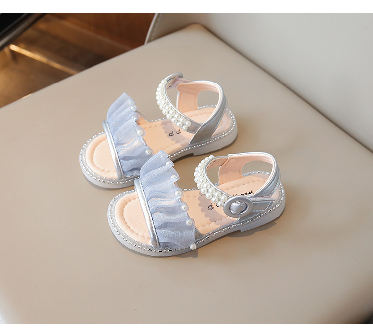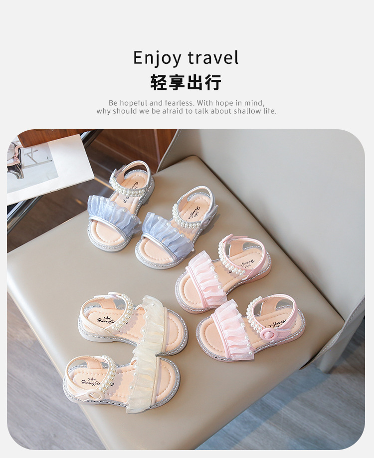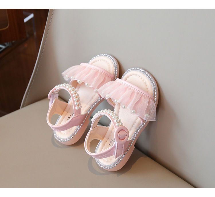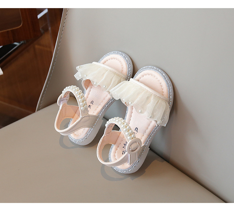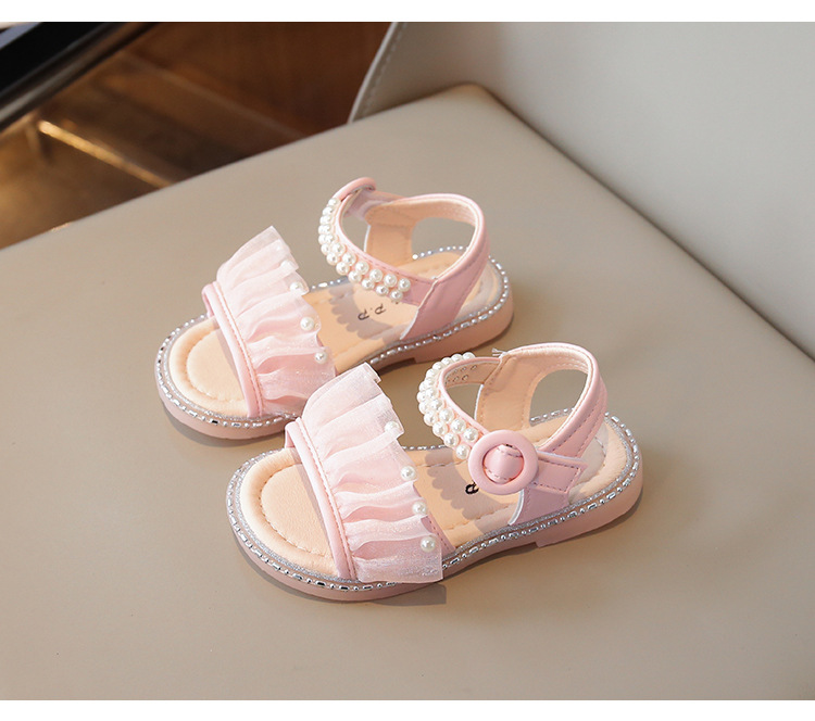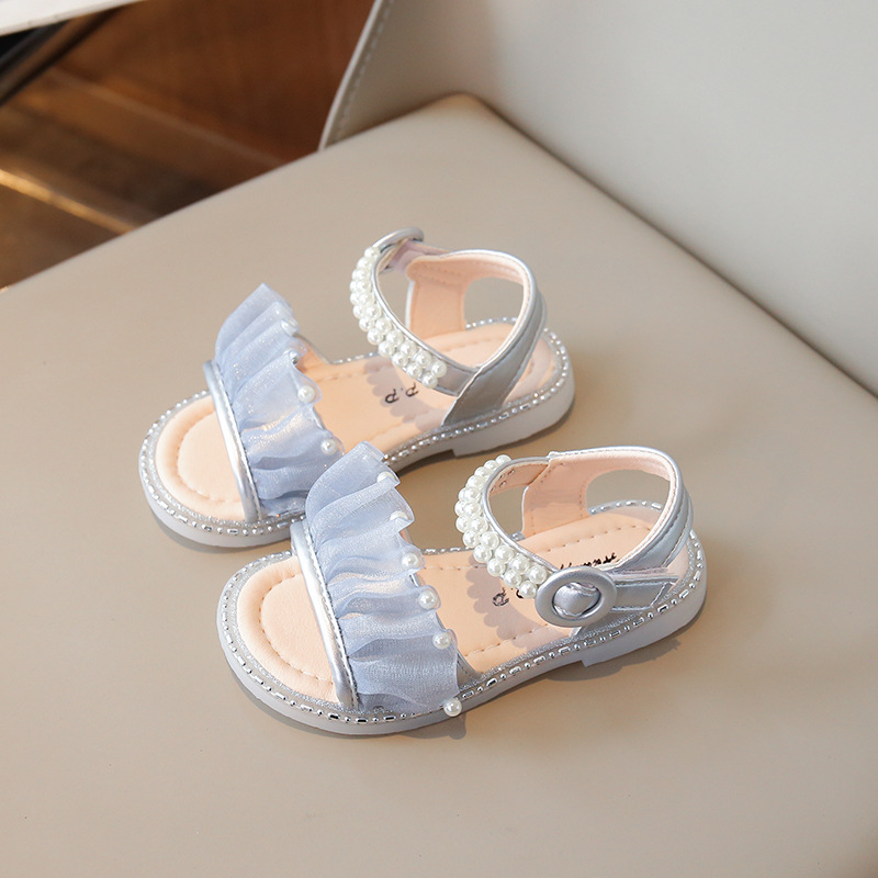 여자 샌들 여름 새로운 요정 스타일 메쉬 진주 공주 신발 한국 스타일 미끄럼 방지 부드러운 바닥 비치 신발 유행