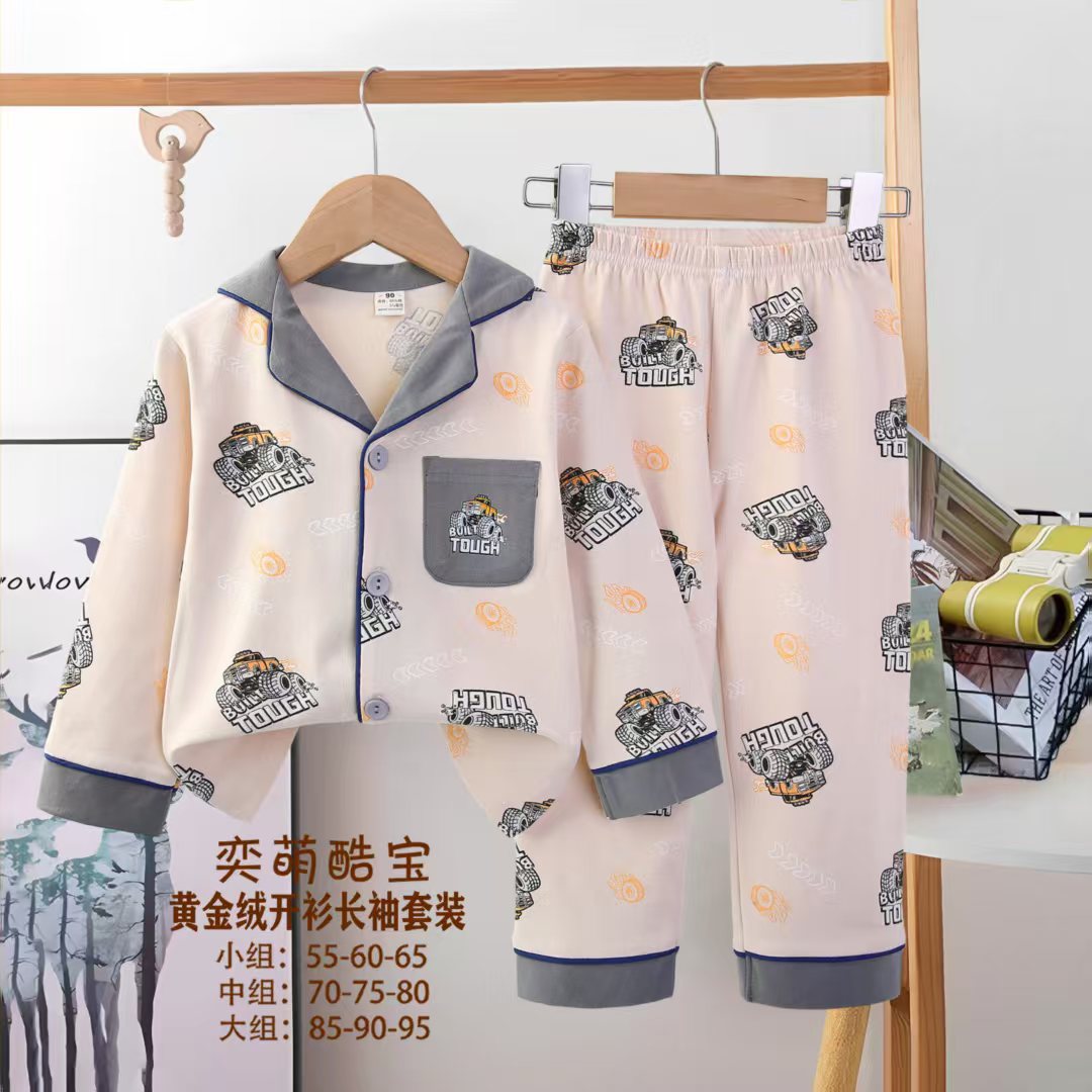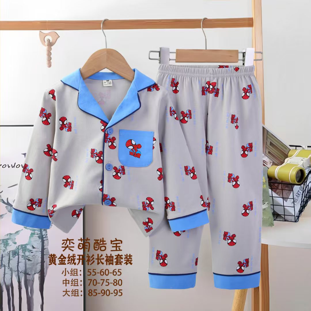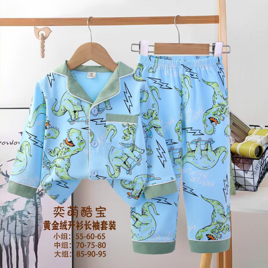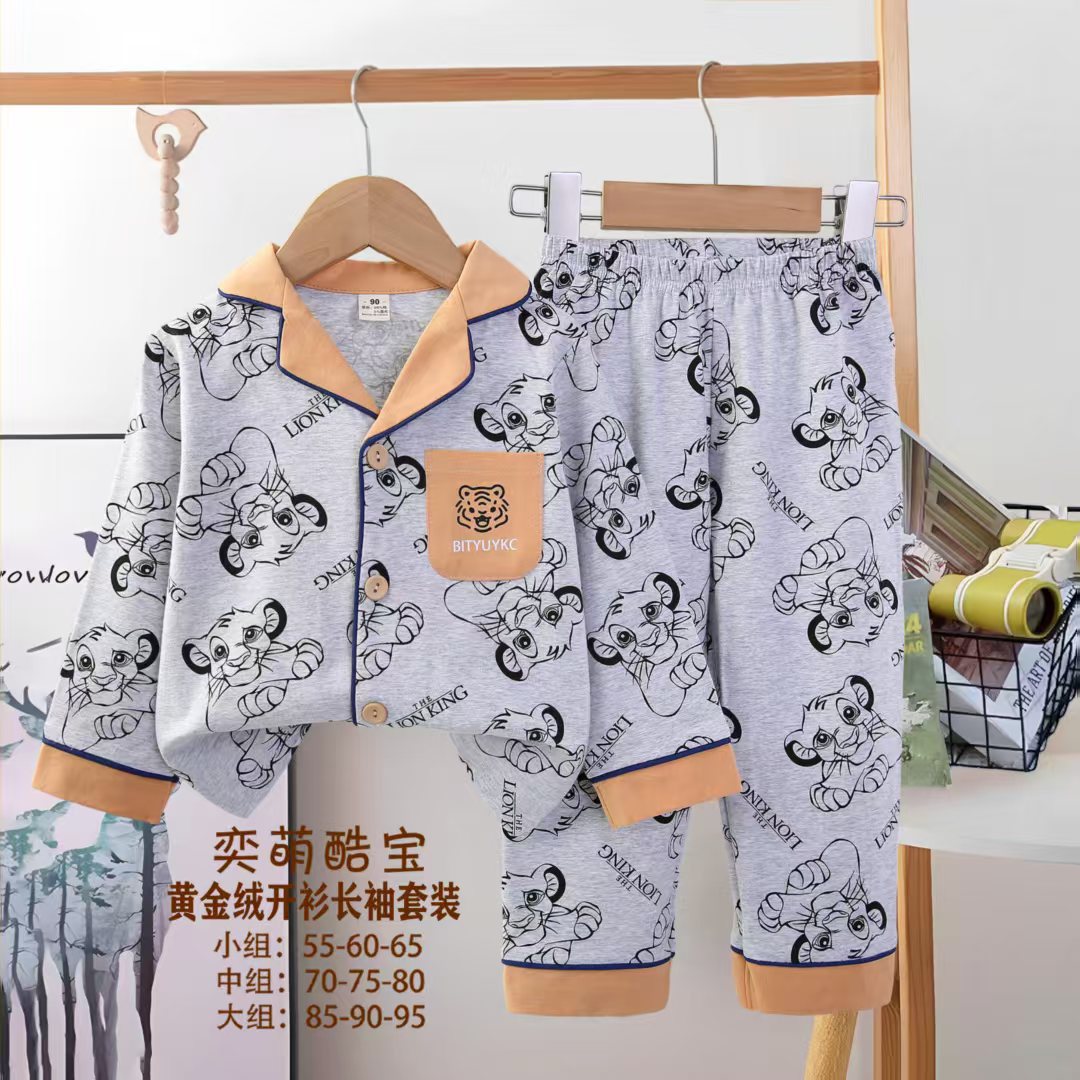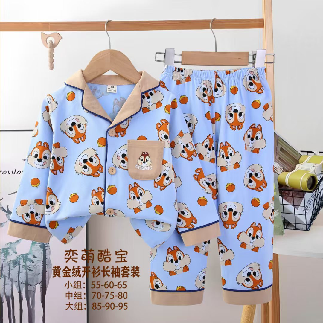 2025 아동 의류 아동 잠옷 가을 오픈 버튼 긴팔 바지 소년과 소녀 가정 의류 세트 공장 직접 공급스토어 가기