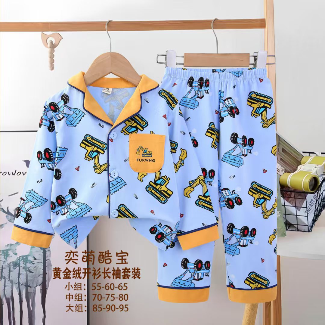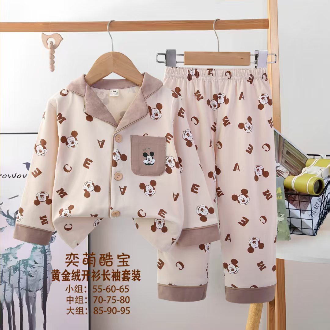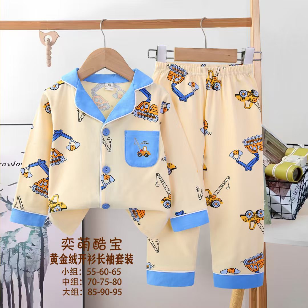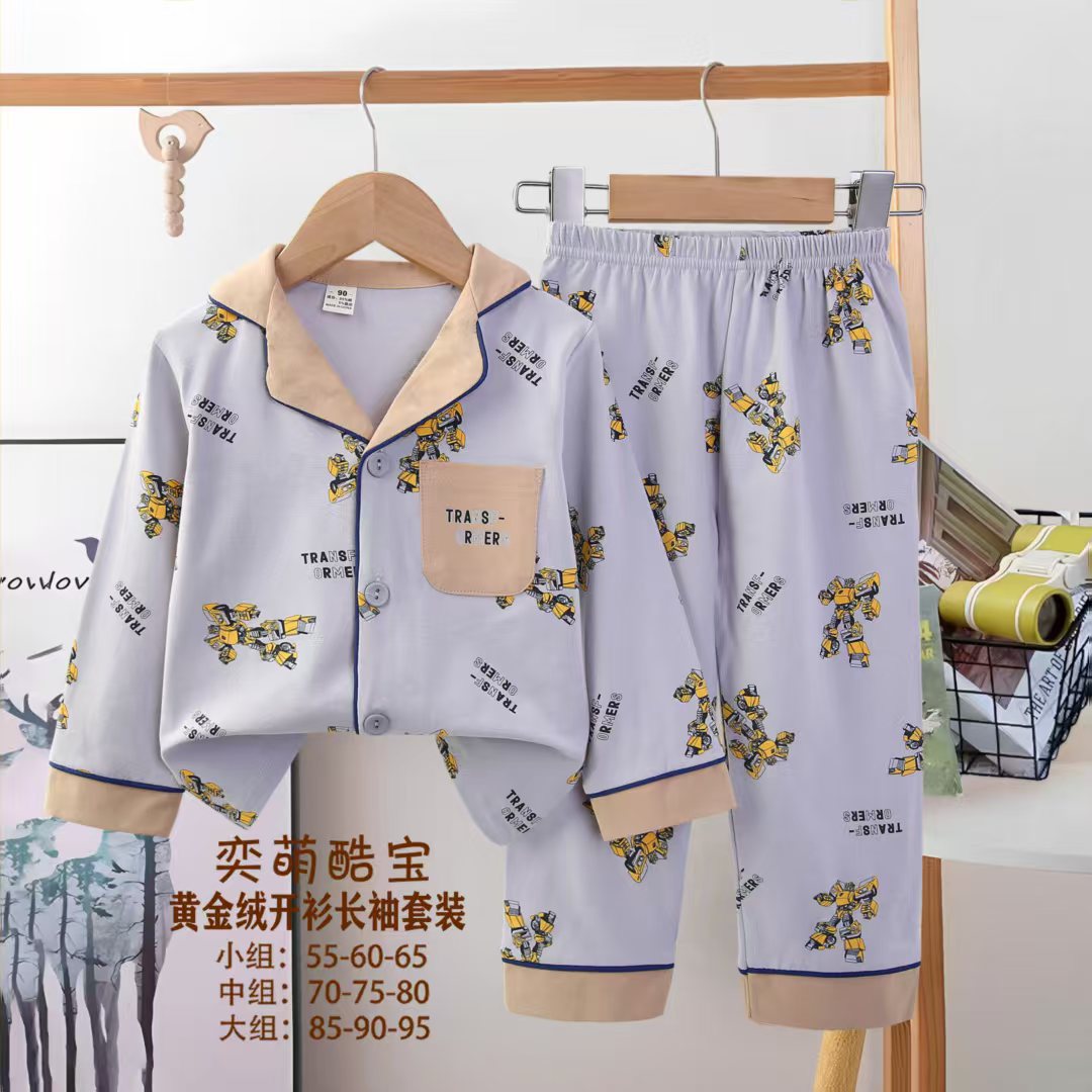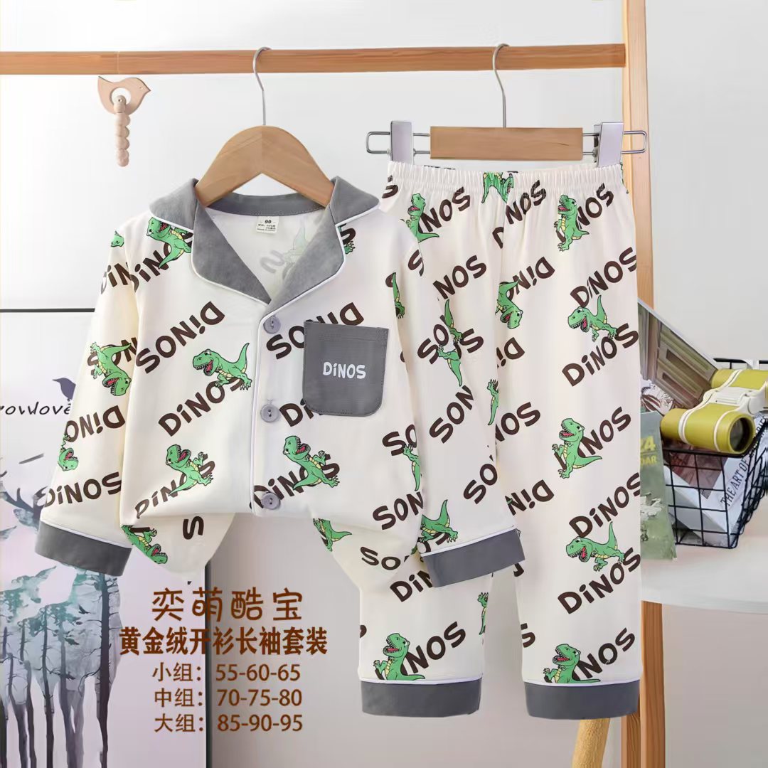 2025 아동 의류 아동 잠옷 가을 오픈 버튼 긴팔 바지 소년과 소녀 가정 의류 세트 공장 직접 공급스토어 가기