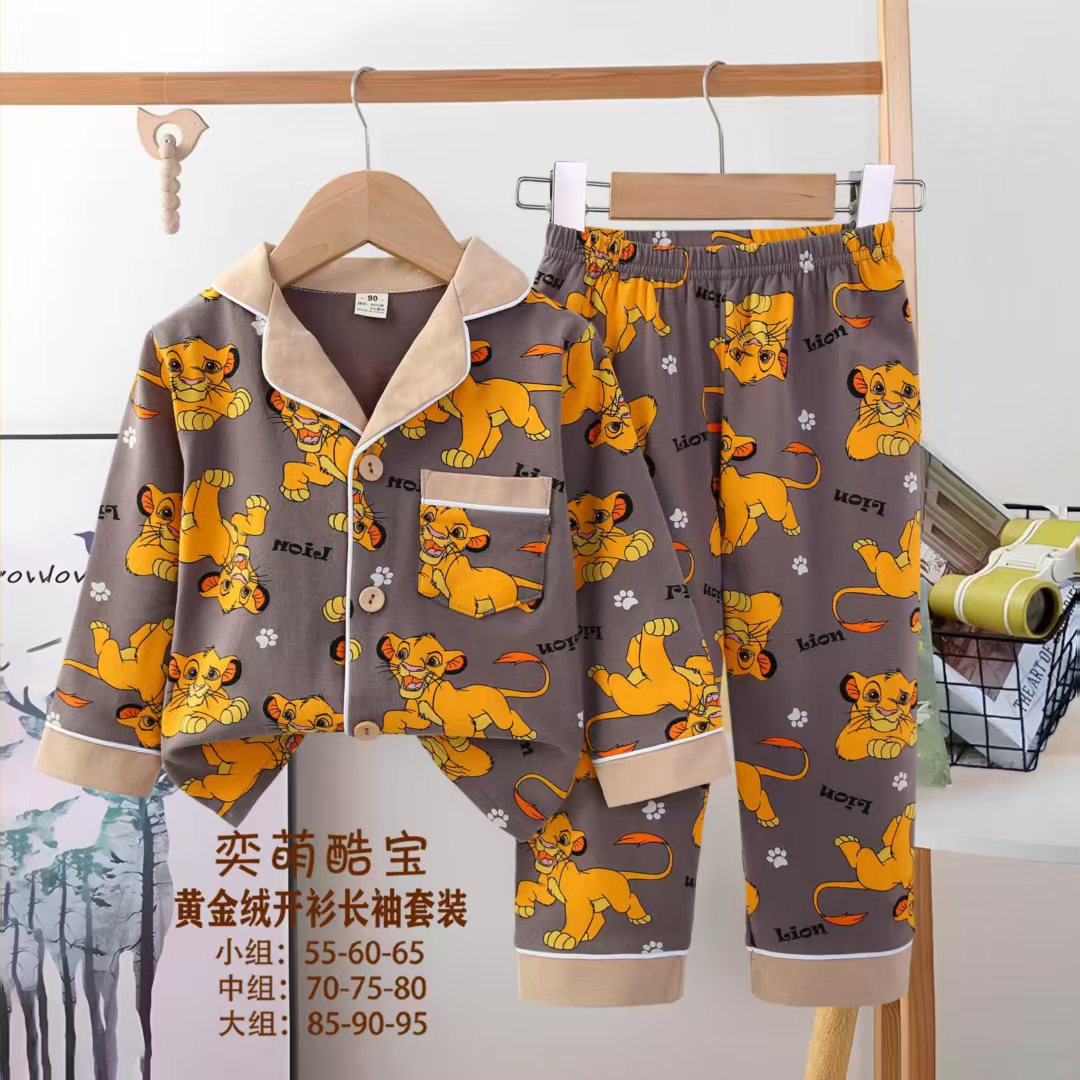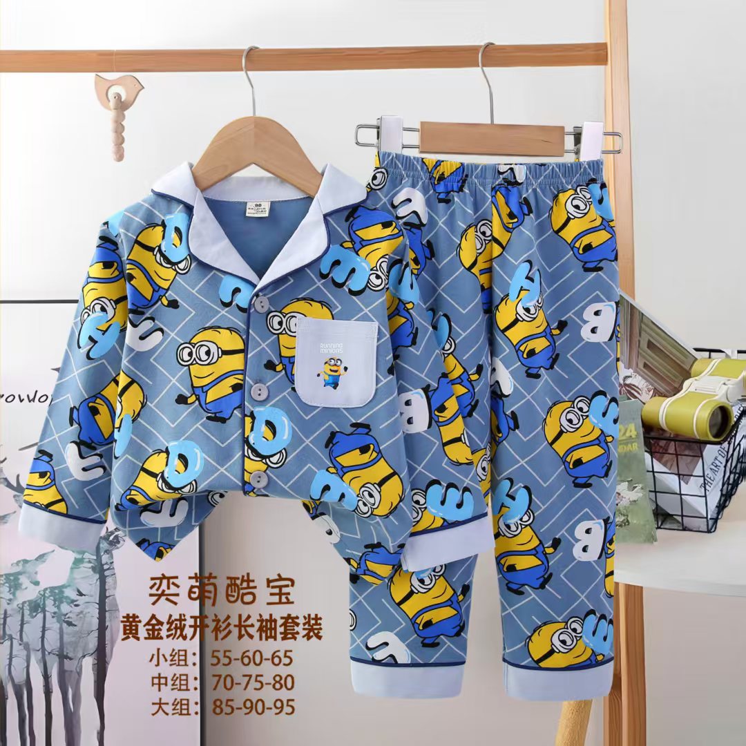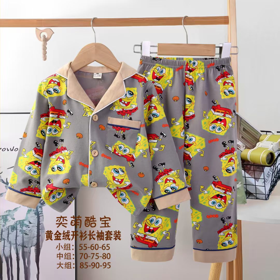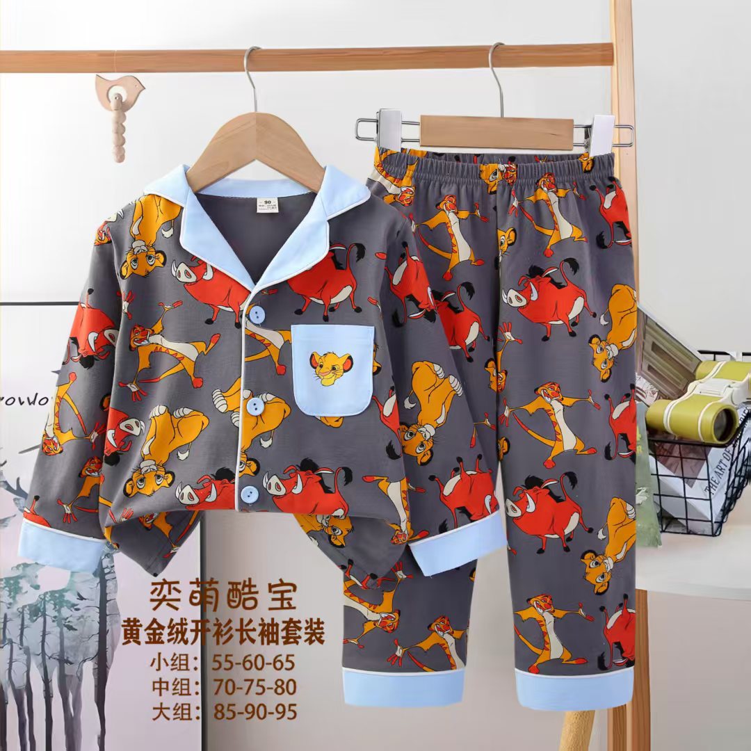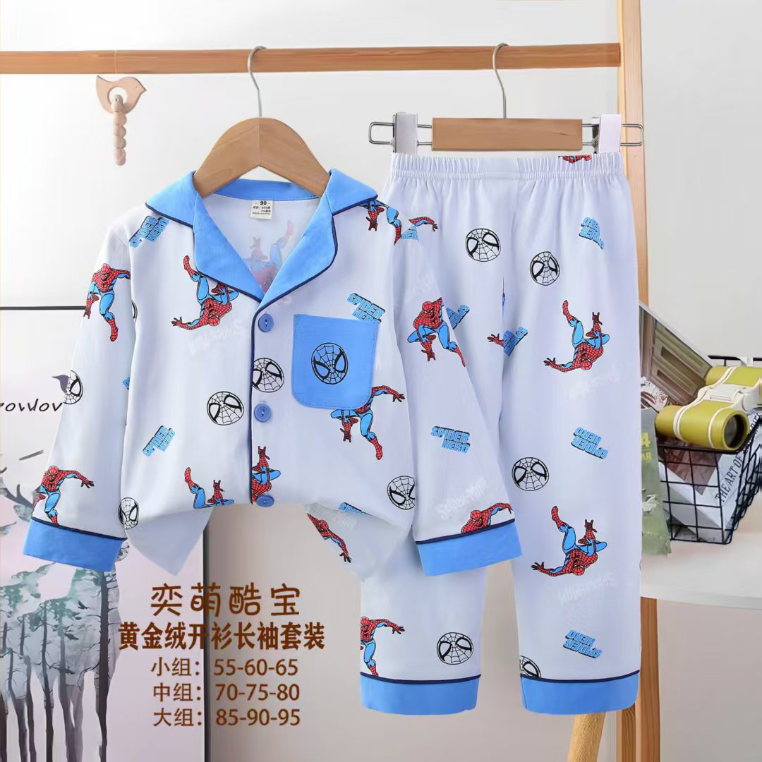 2025 아동 의류 아동 잠옷 가을 오픈 버튼 긴팔 바지 소년과 소녀 가정 의류 세트 공장 직접 공급스토어 가기