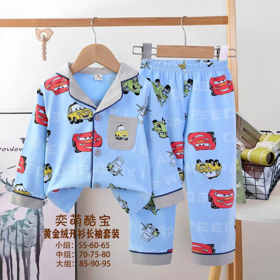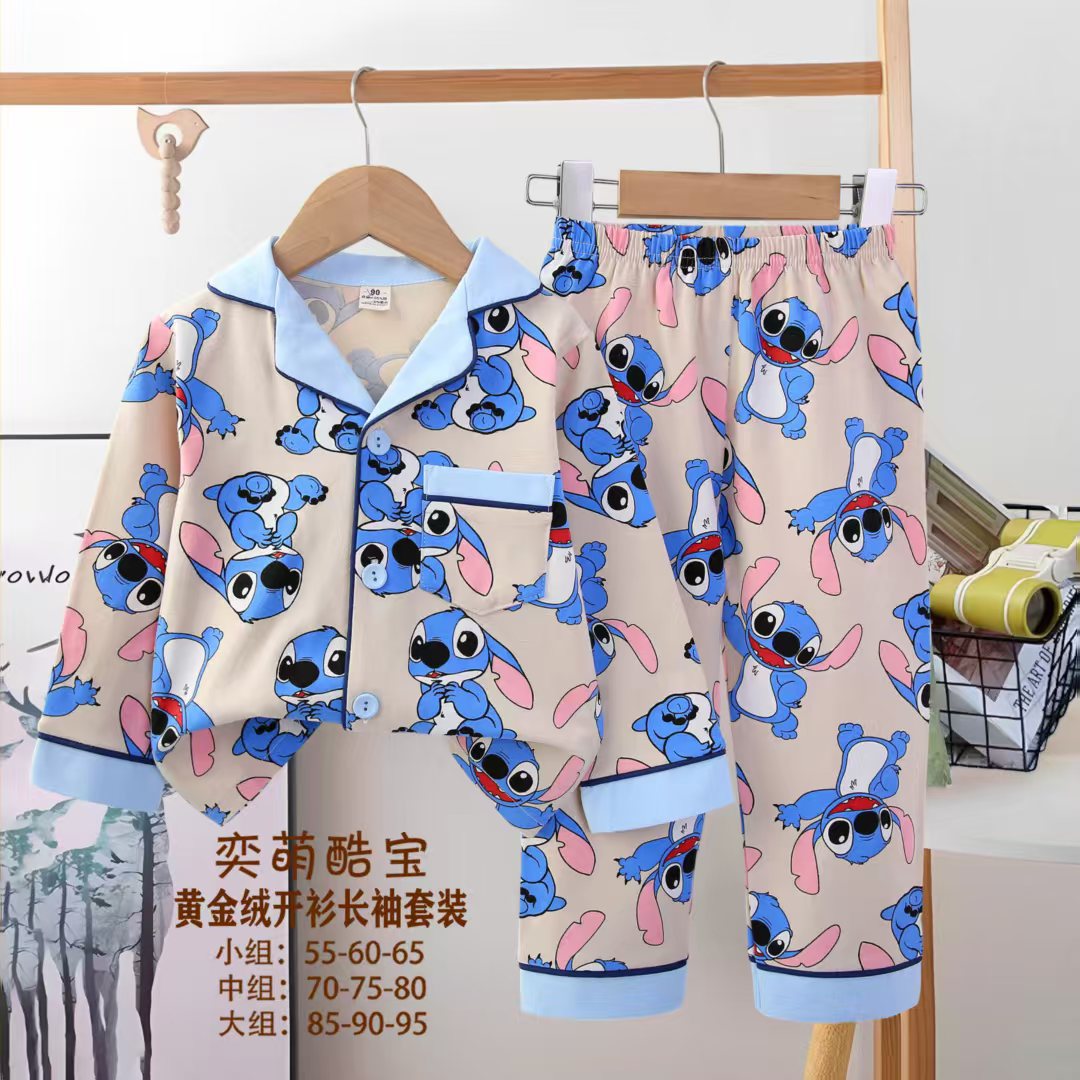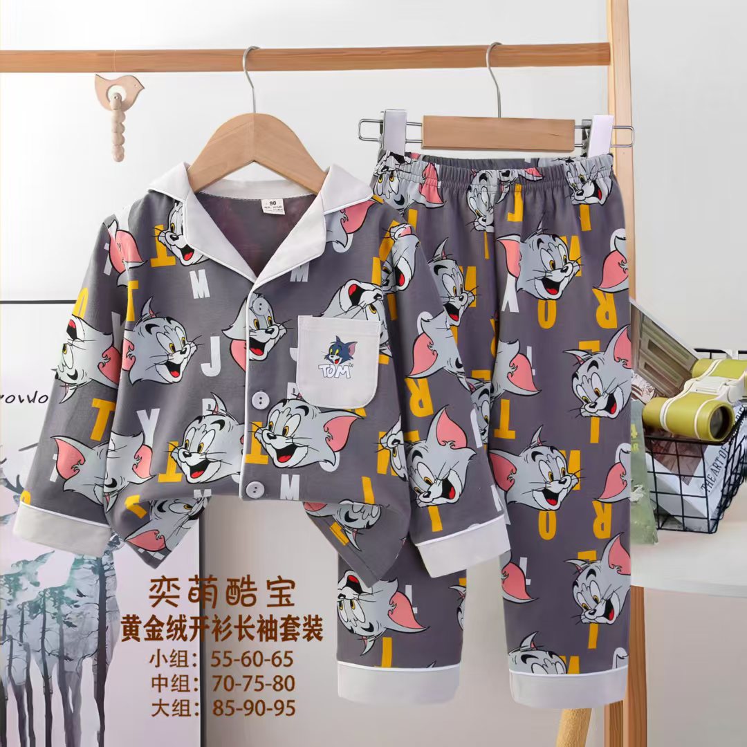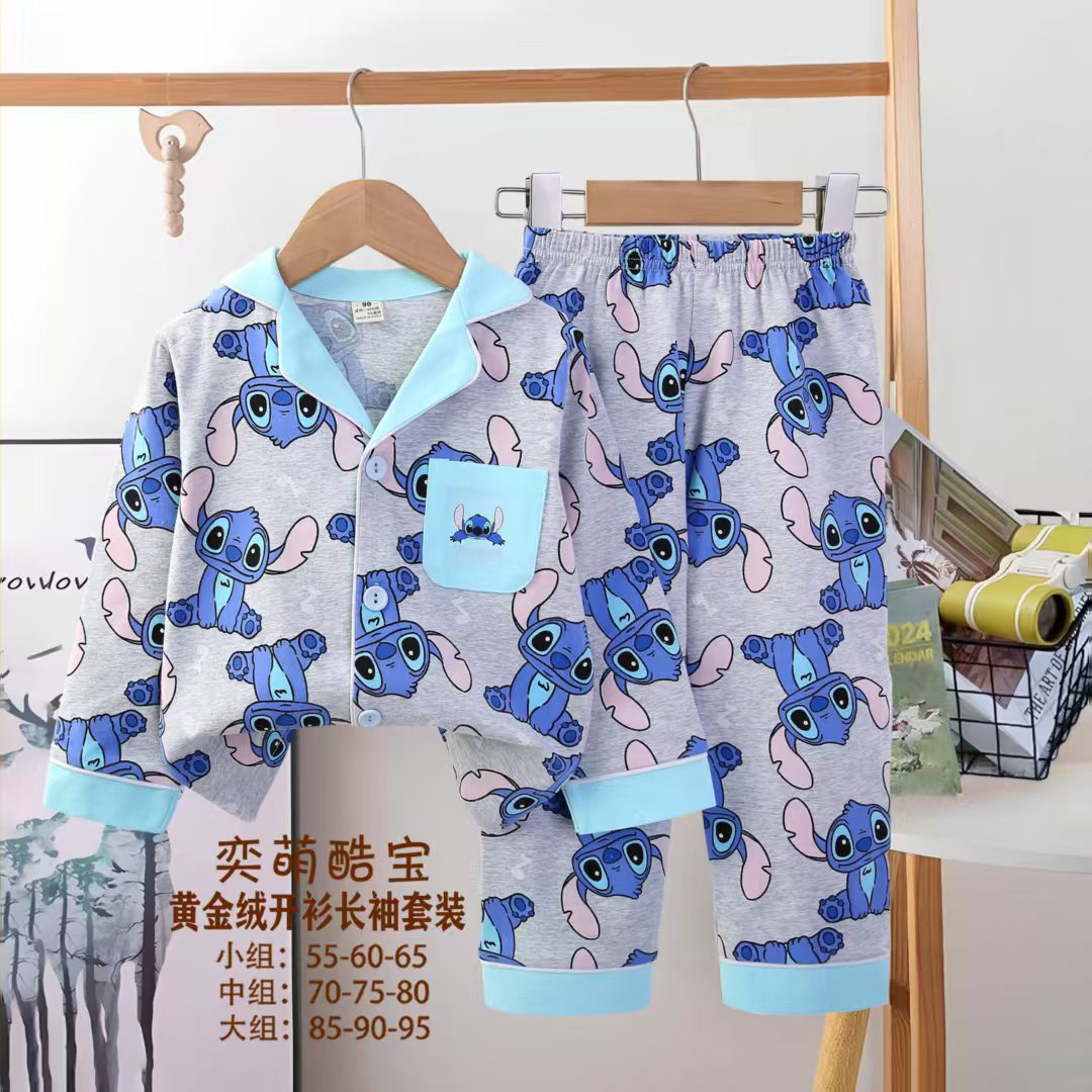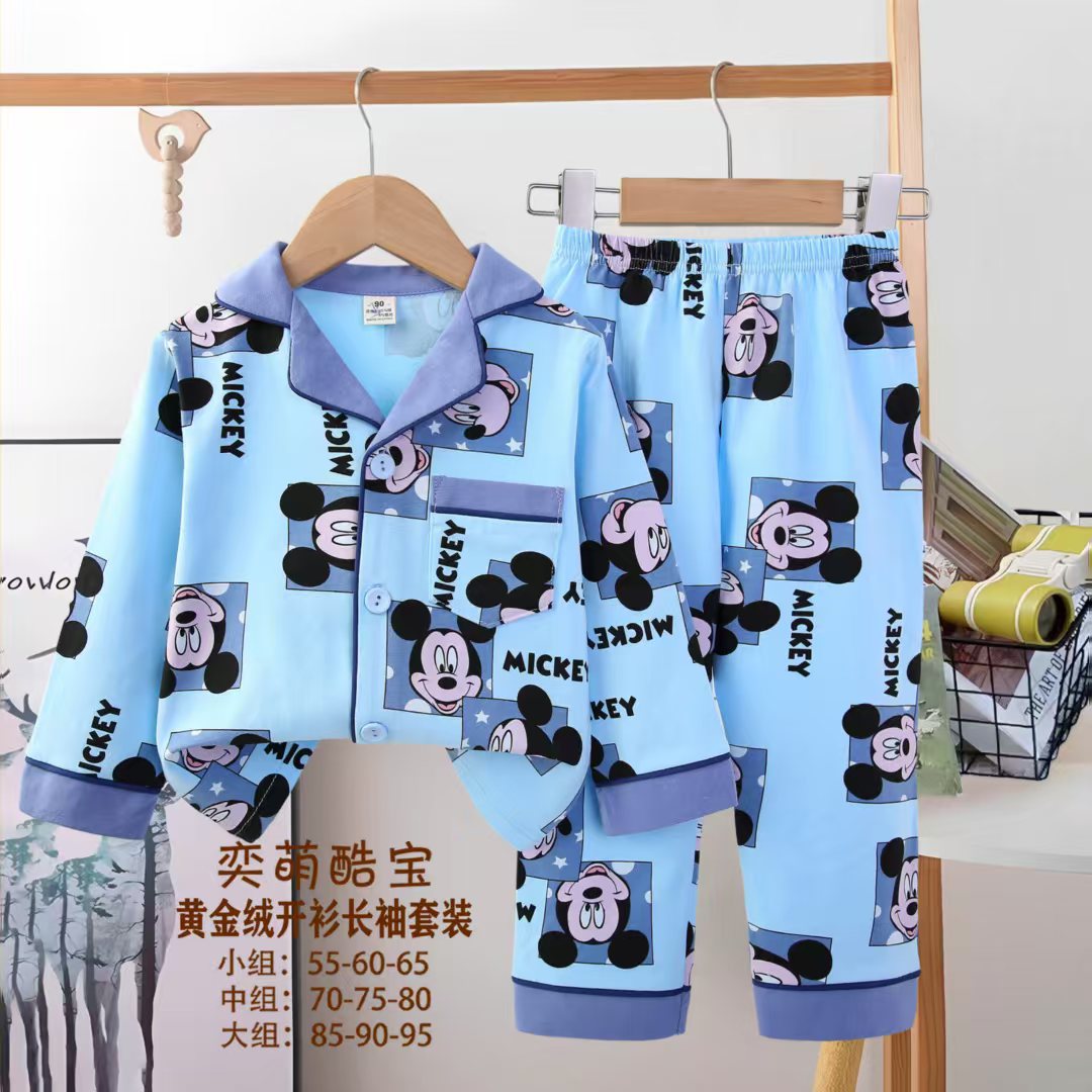 2025 아동 의류 아동 잠옷 가을 오픈 버튼 긴팔 바지 소년과 소녀 가정 의류 세트 공장 직접 공급스토어 가기