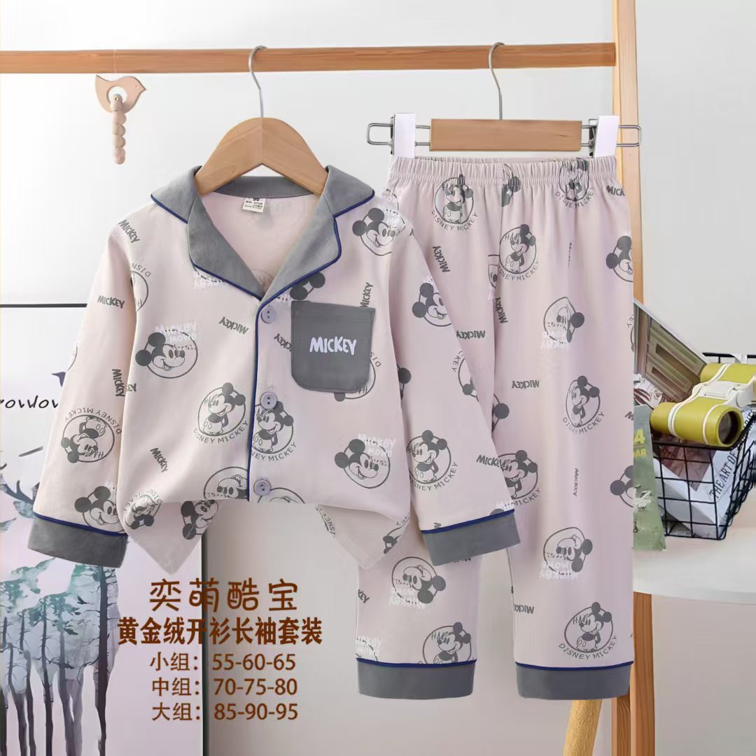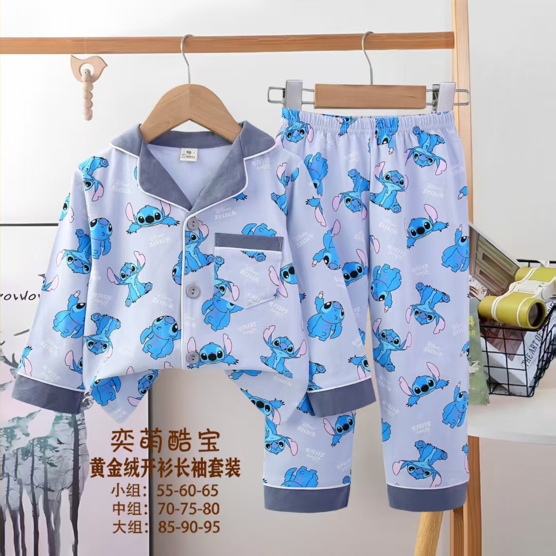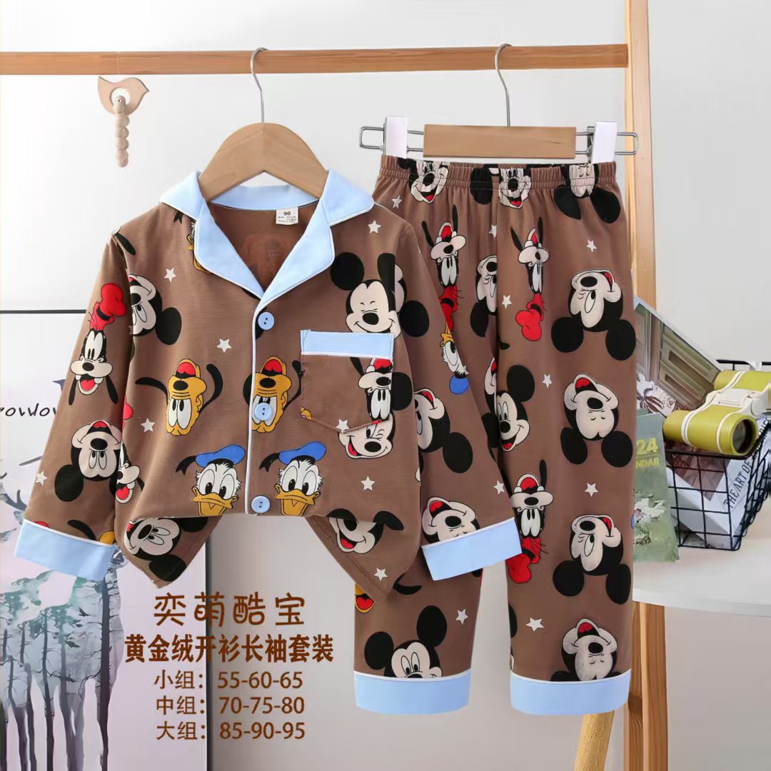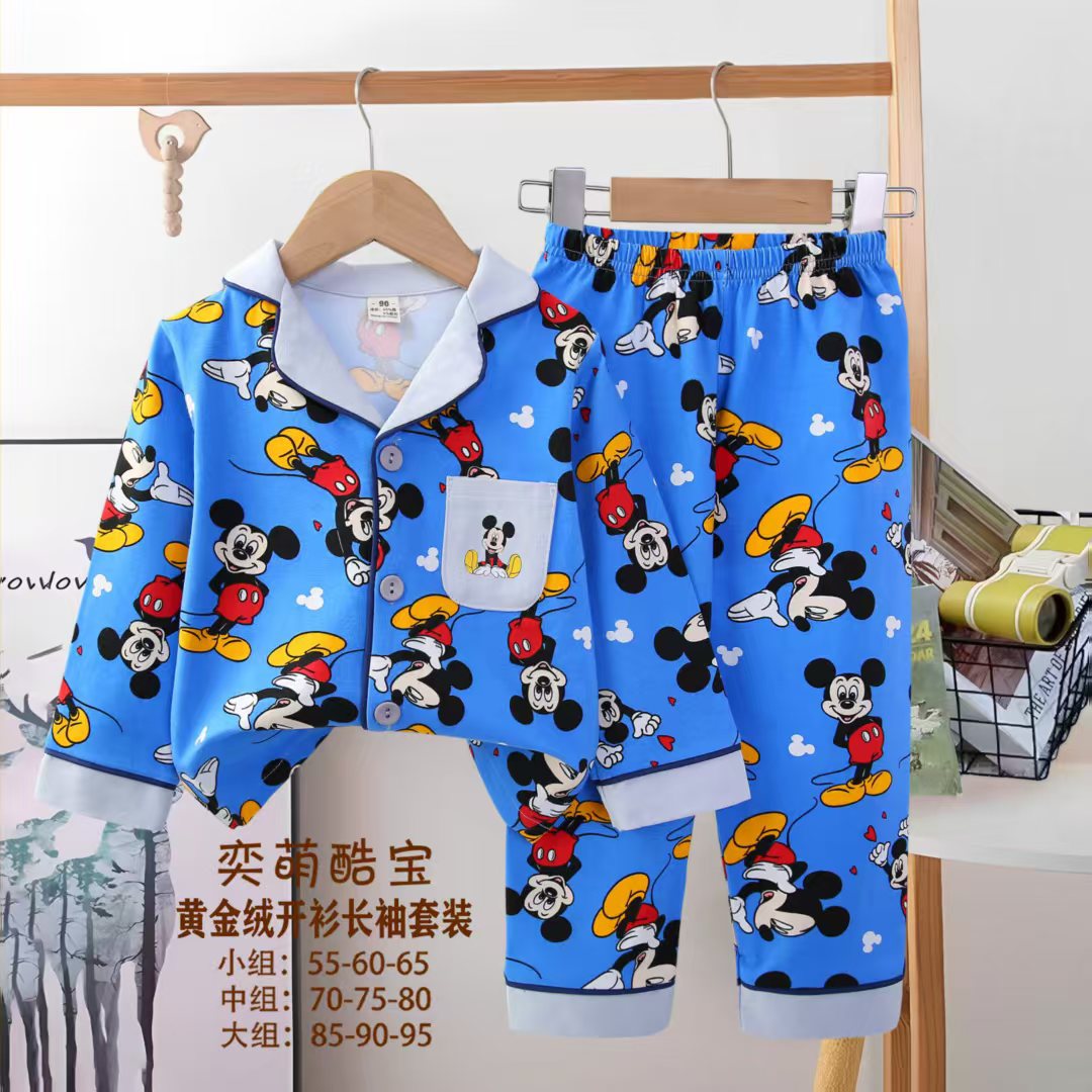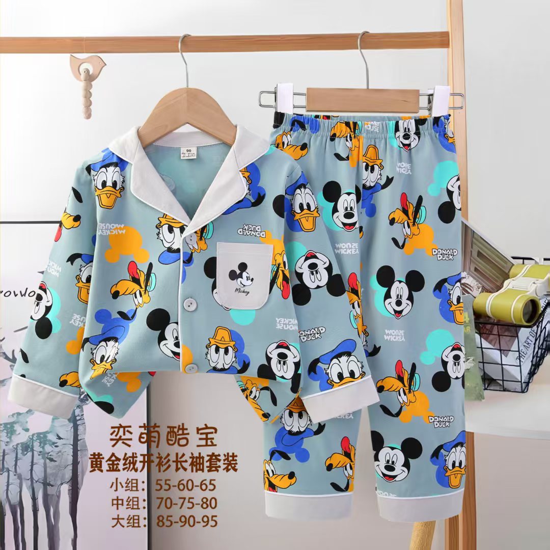 2025 아동 의류 아동 잠옷 가을 오픈 버튼 긴팔 바지 소년과 소녀 가정 의류 세트 공장 직접 공급스토어 가기