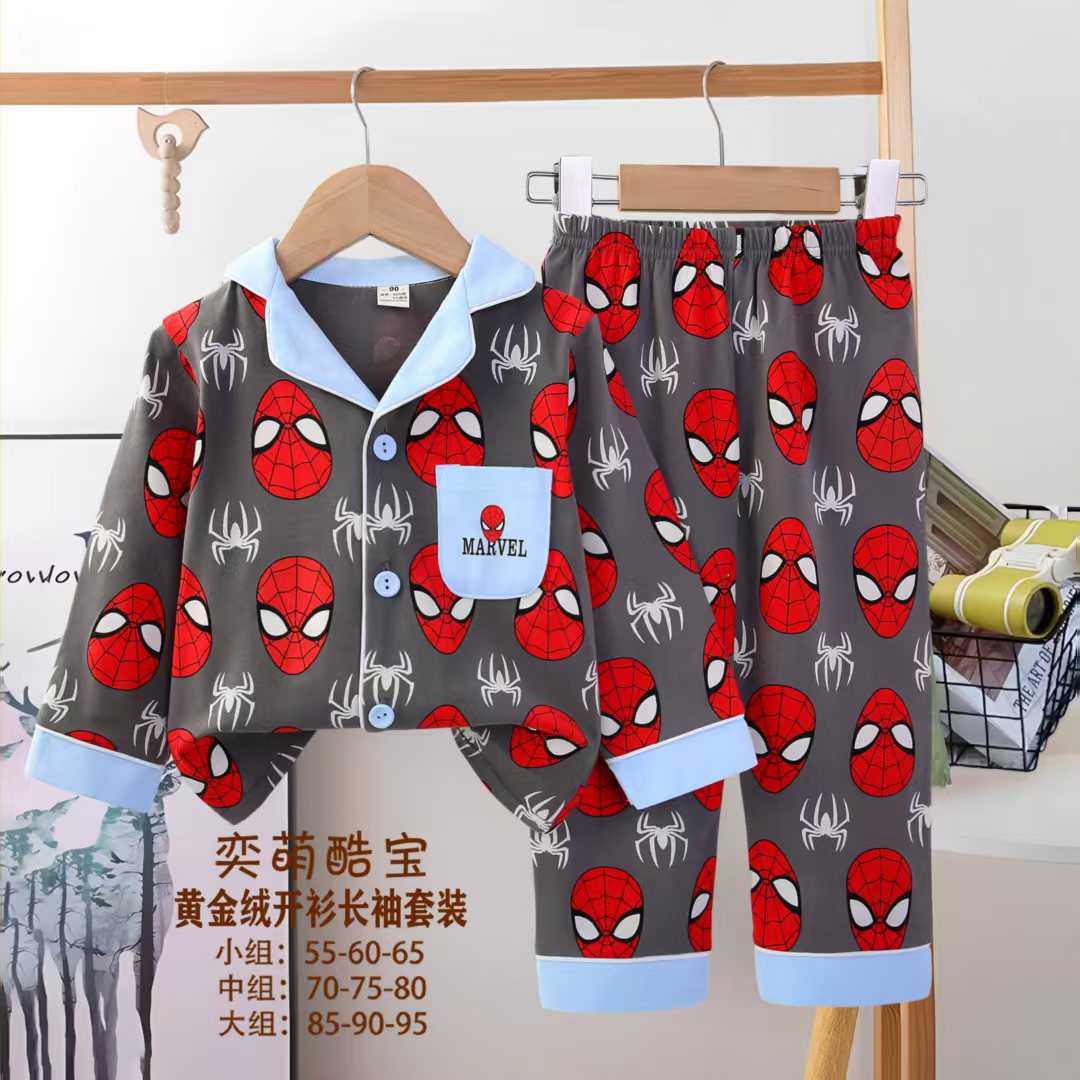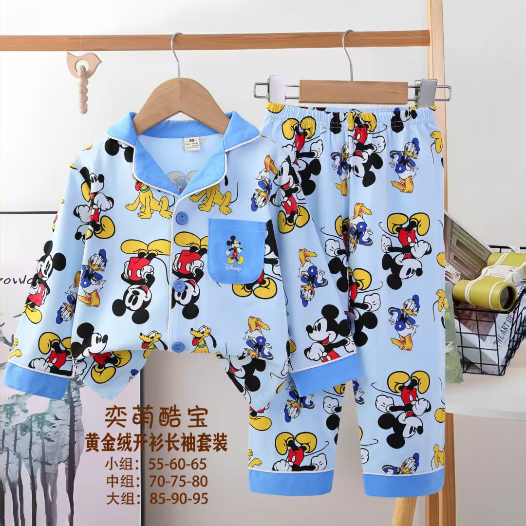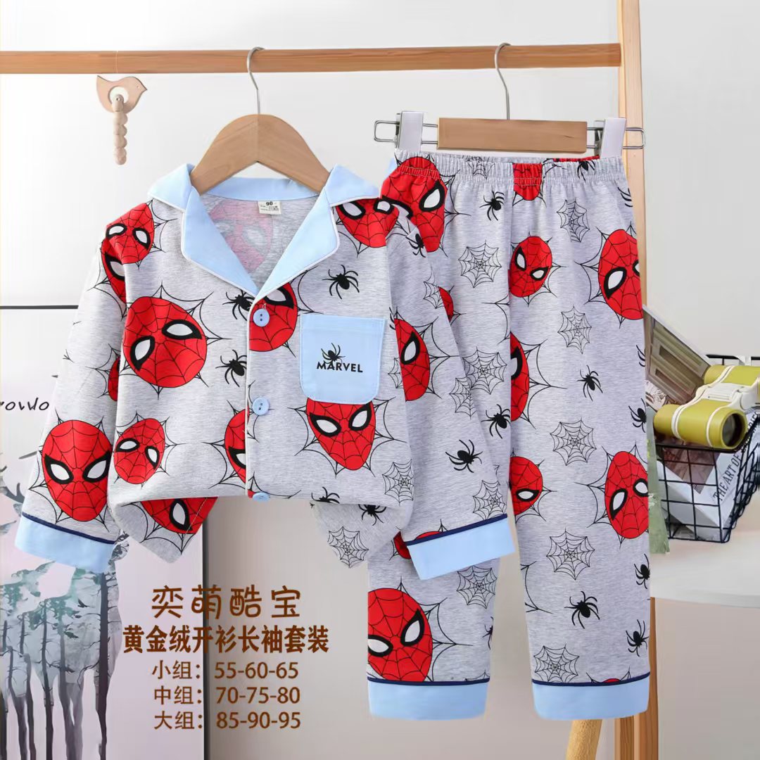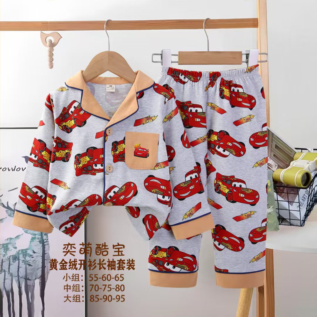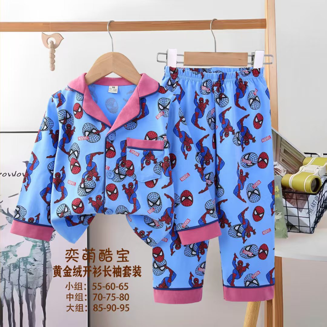 2025 아동 의류 아동 잠옷 가을 오픈 버튼 긴팔 바지 소년과 소녀 가정 의류 세트 공장 직접 공급스토어 가기