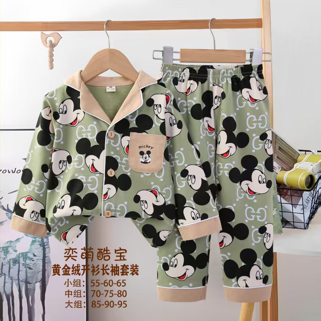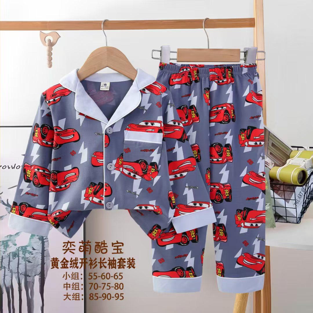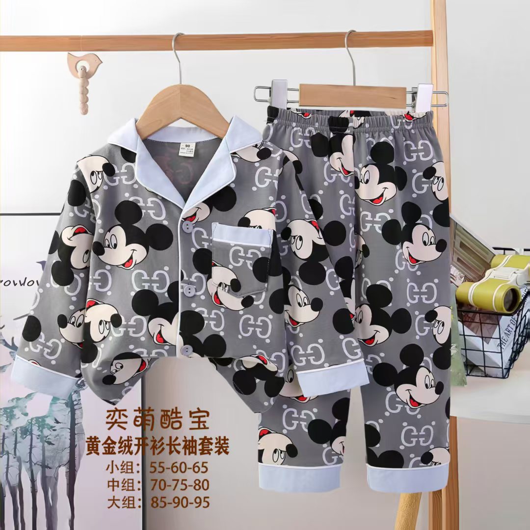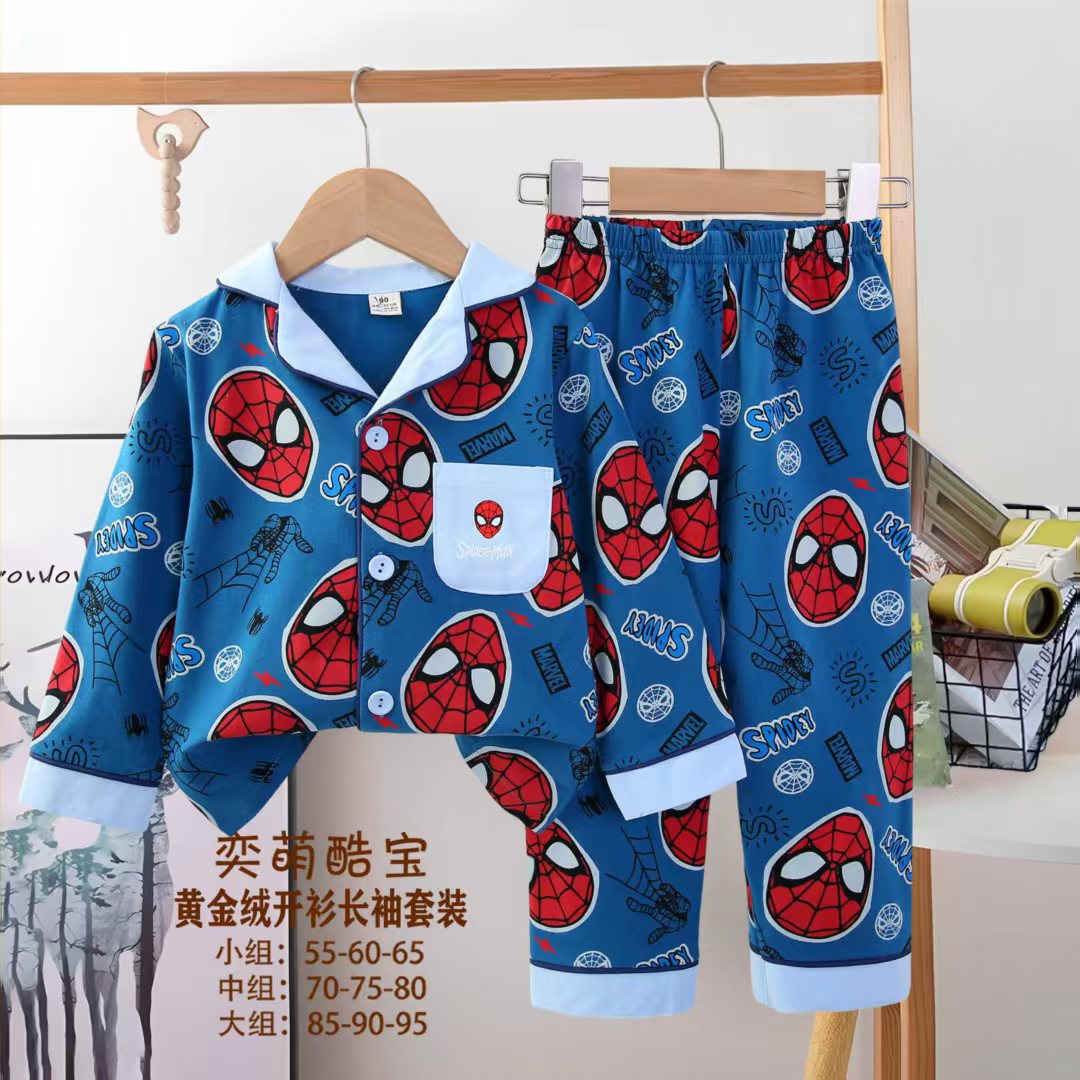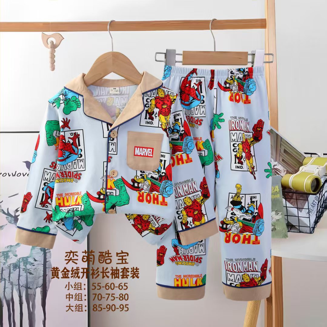 2025 아동 의류 아동 잠옷 가을 오픈 버튼 긴팔 바지 소년과 소녀 가정 의류 세트 공장 직접 공급스토어 가기